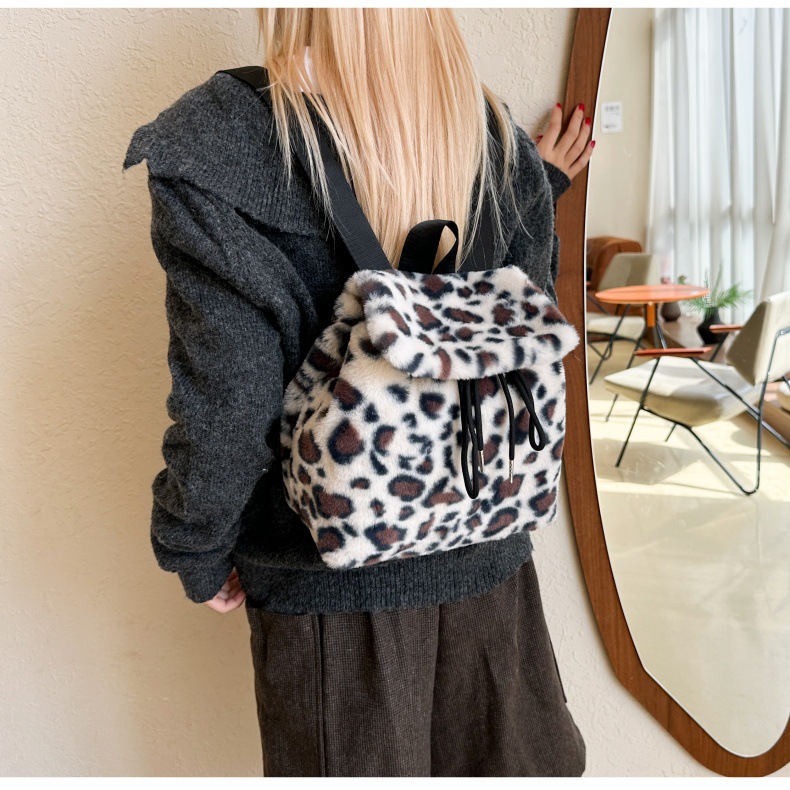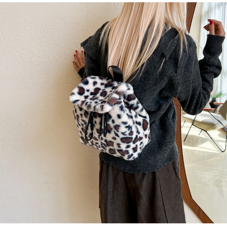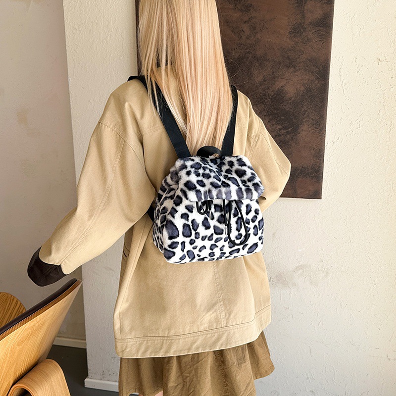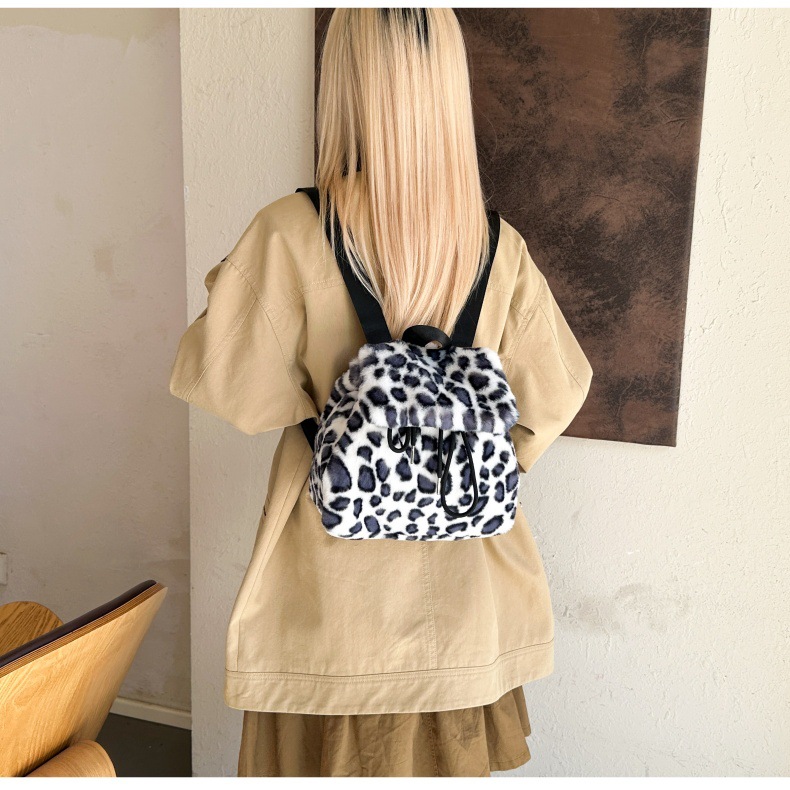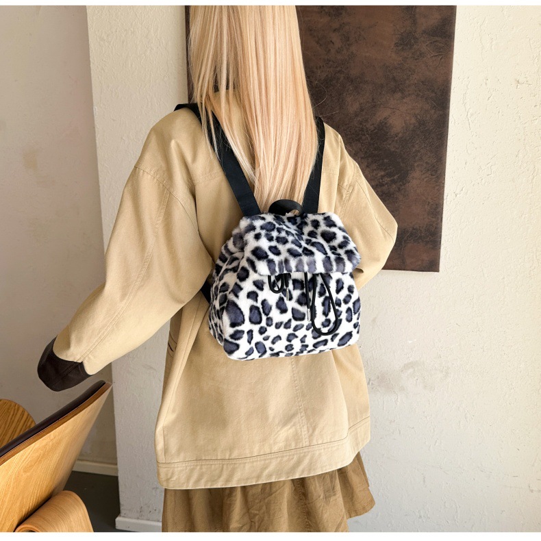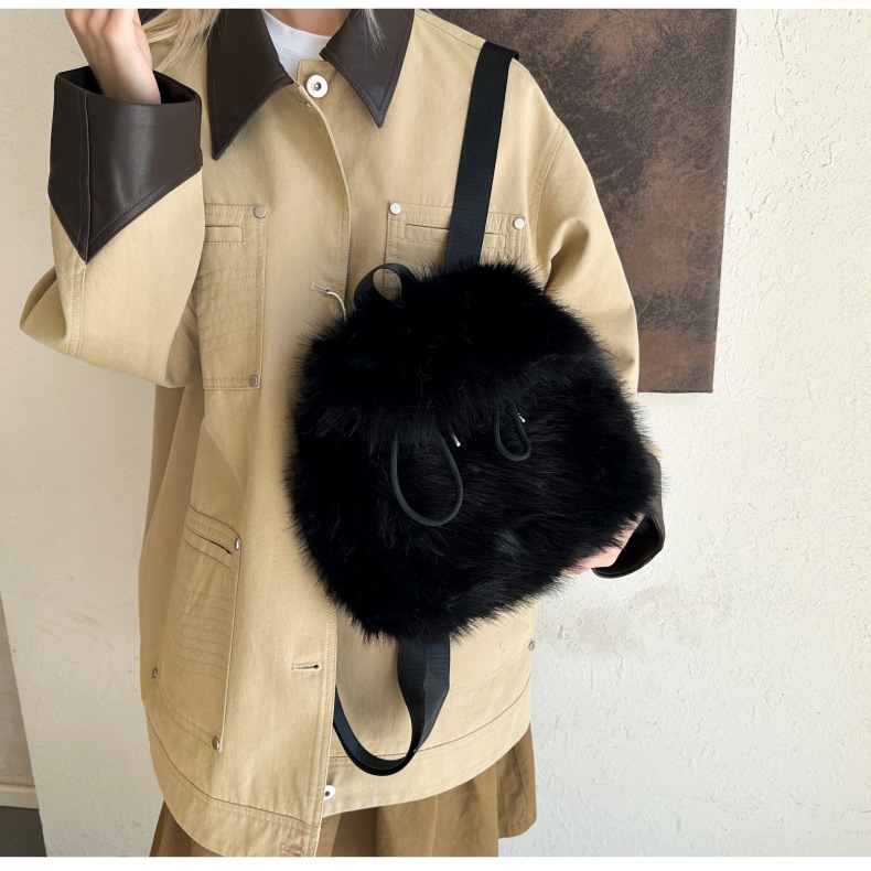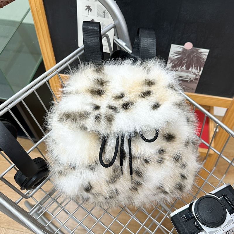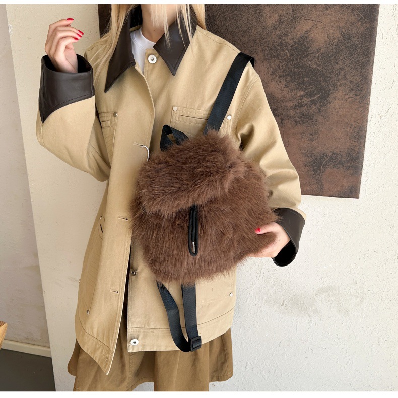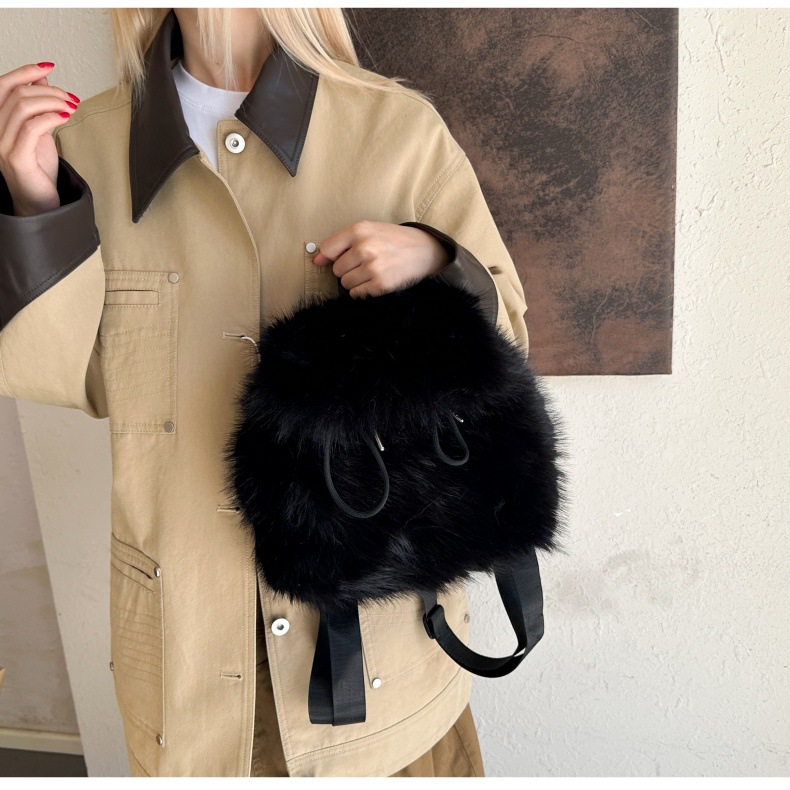 新款仿狐狸毛双肩包女大学生休闲抽绳翻盖磁扣大容量包包女