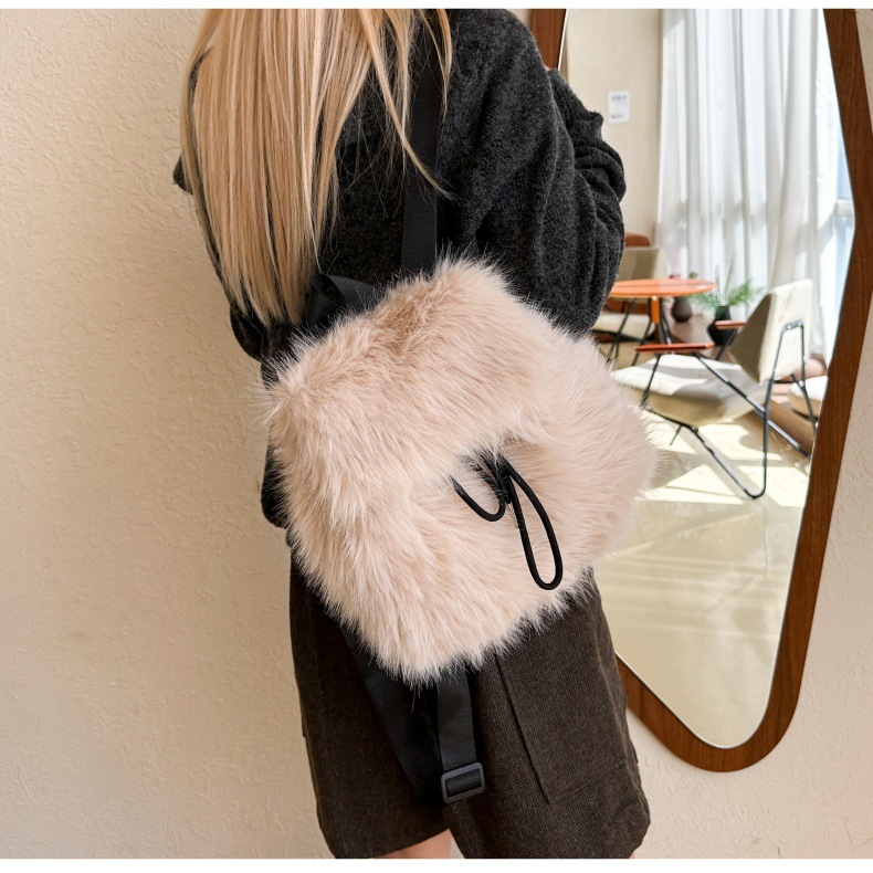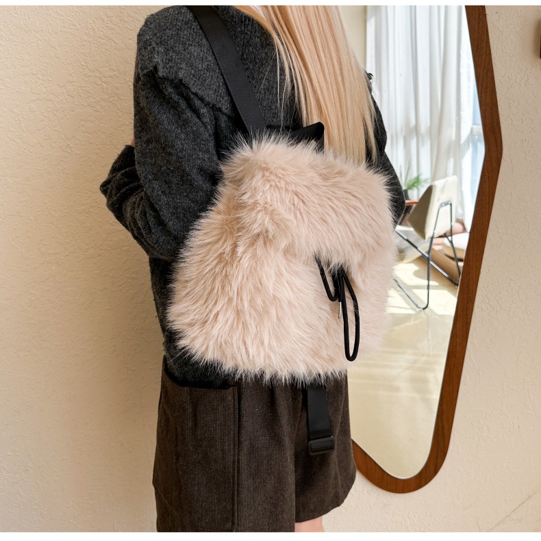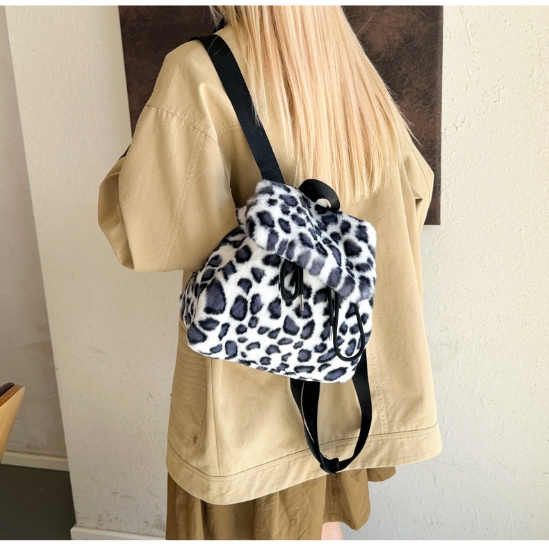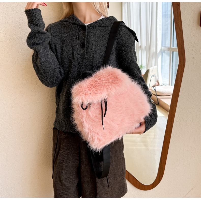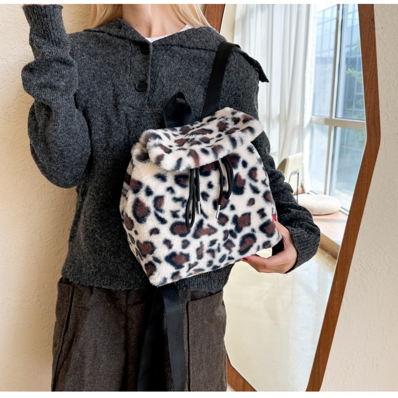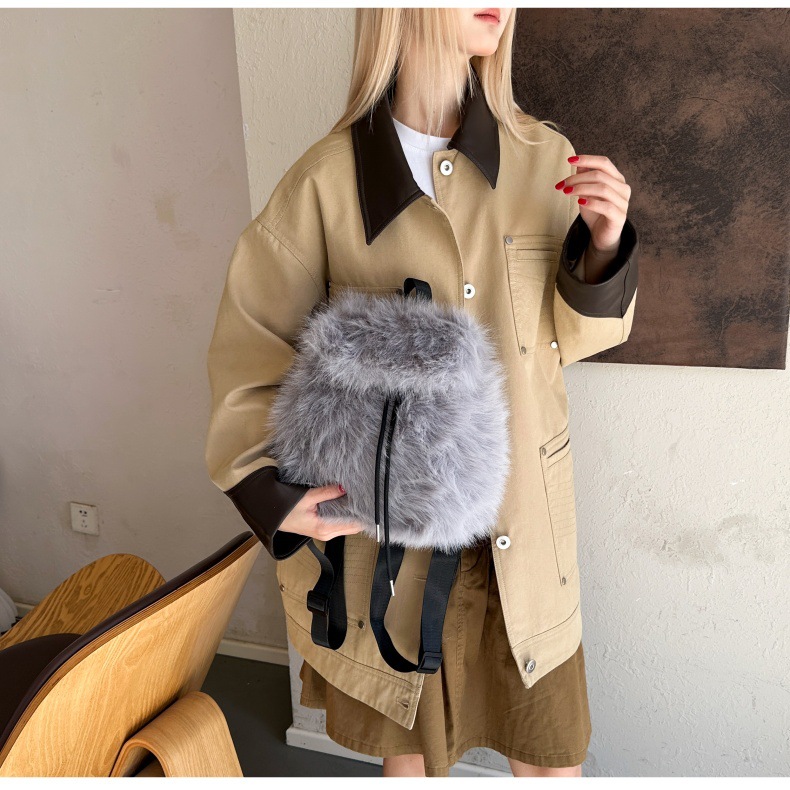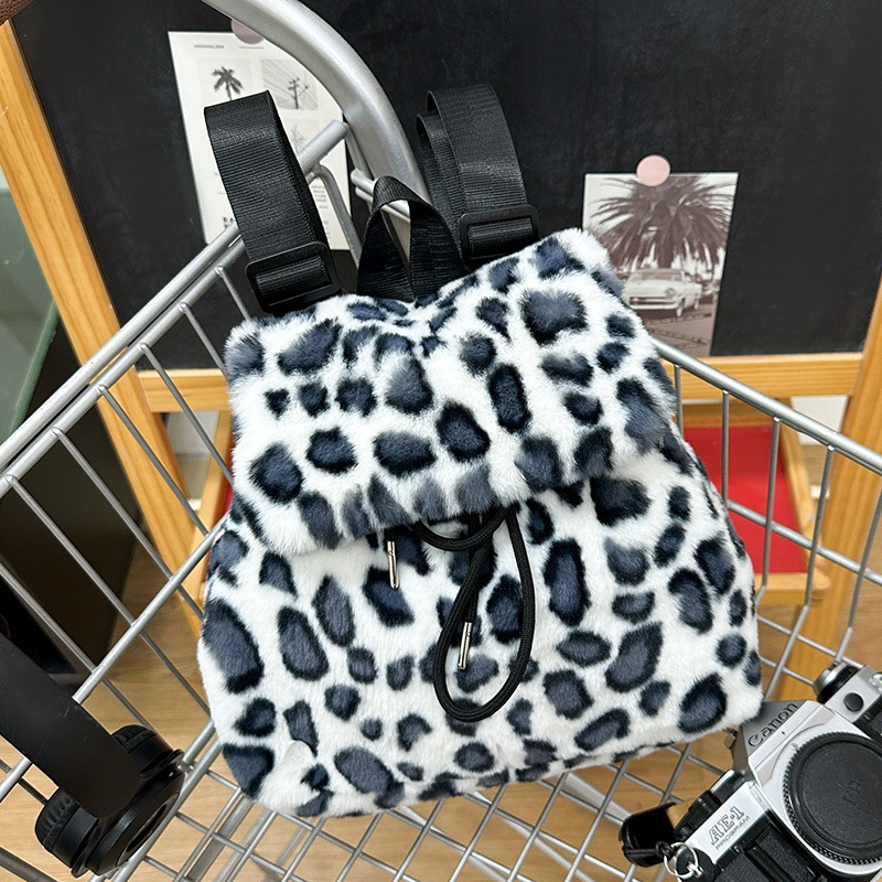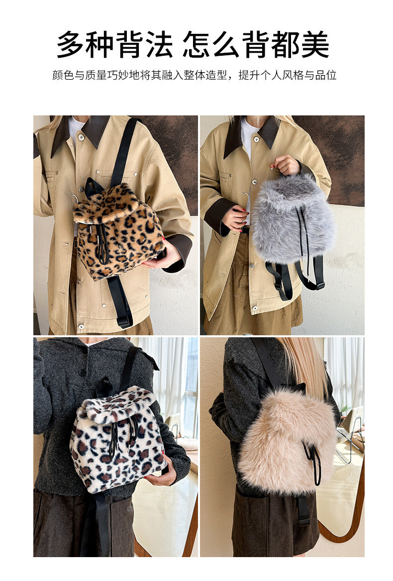 新款仿狐狸毛双肩包女大学生休闲抽绳翻盖磁扣大容量包包女