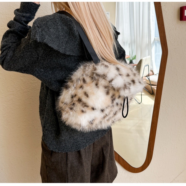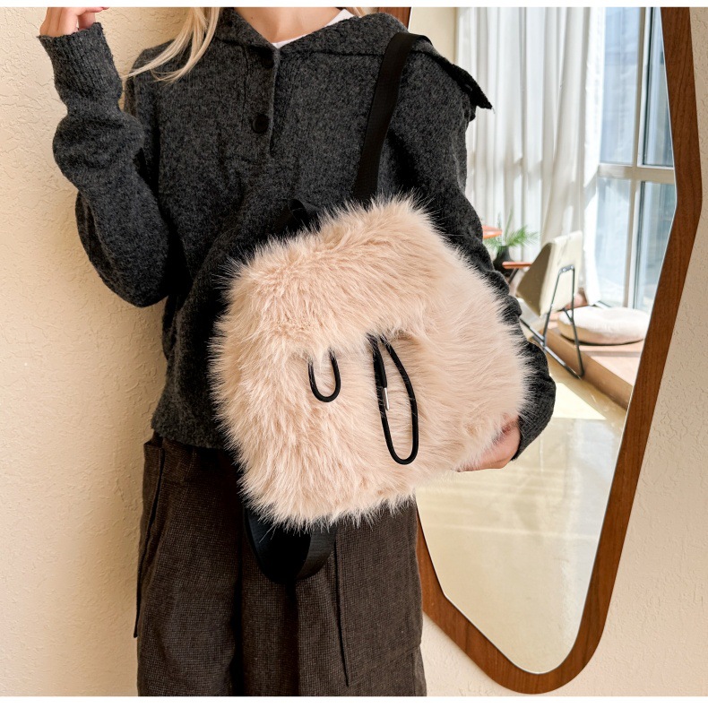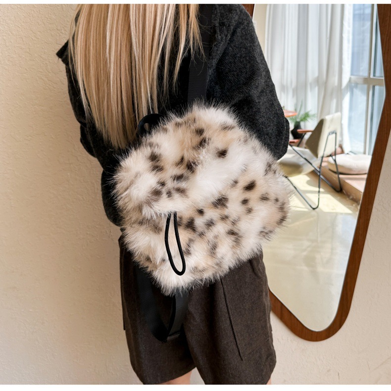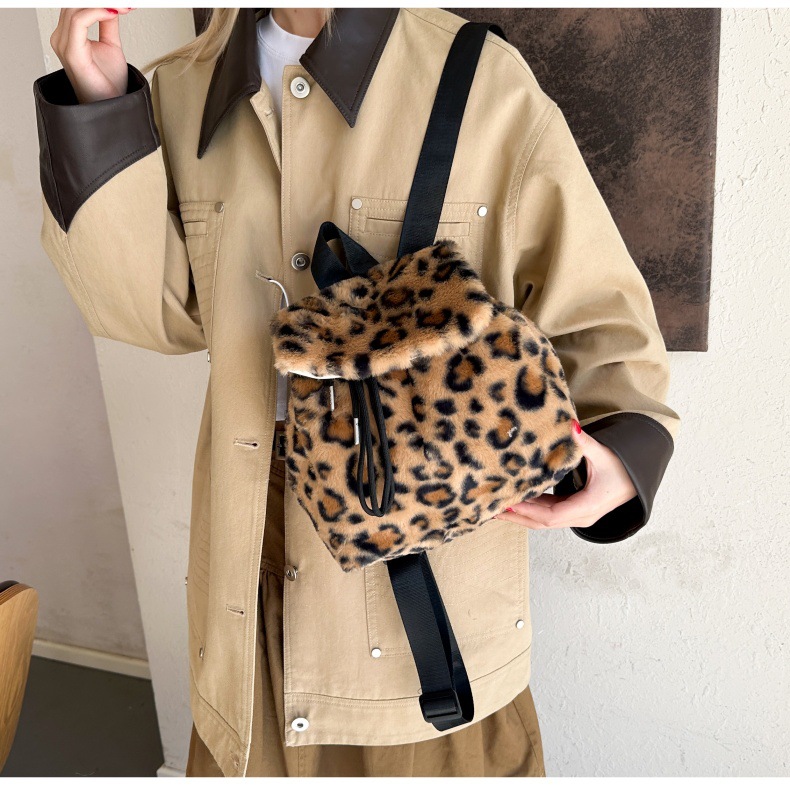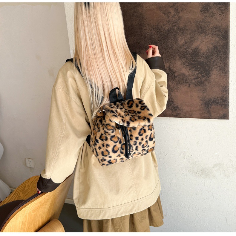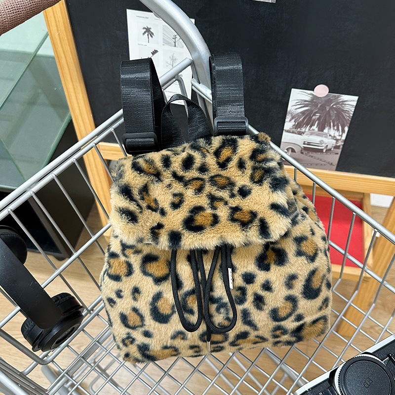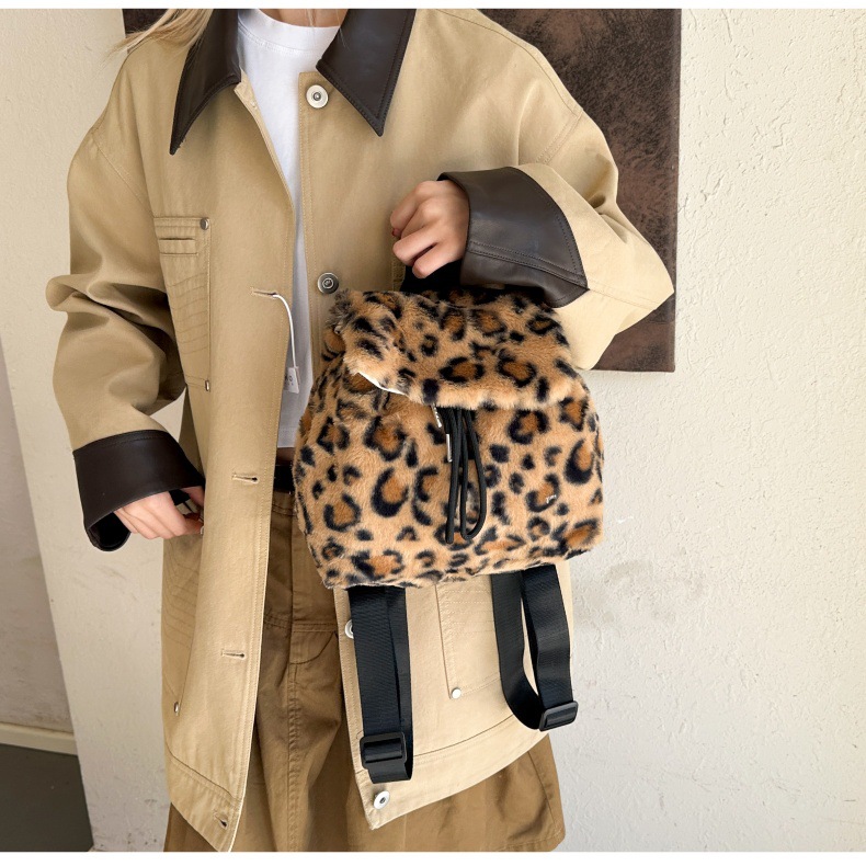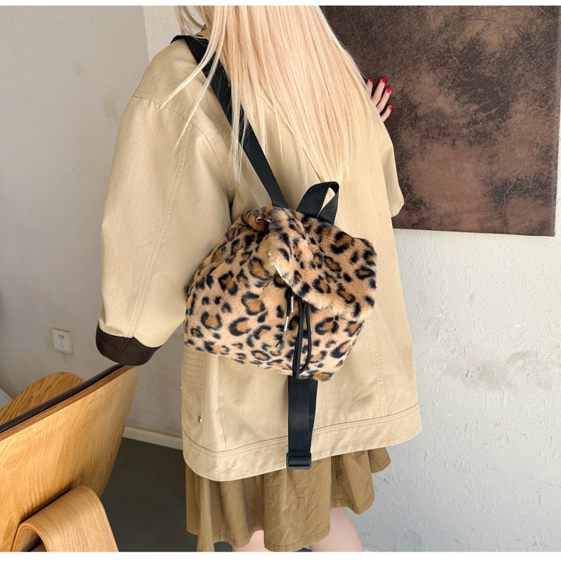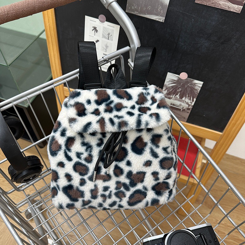 新款仿狐狸毛双肩包女大学生休闲抽绳翻盖磁扣大容量包包女