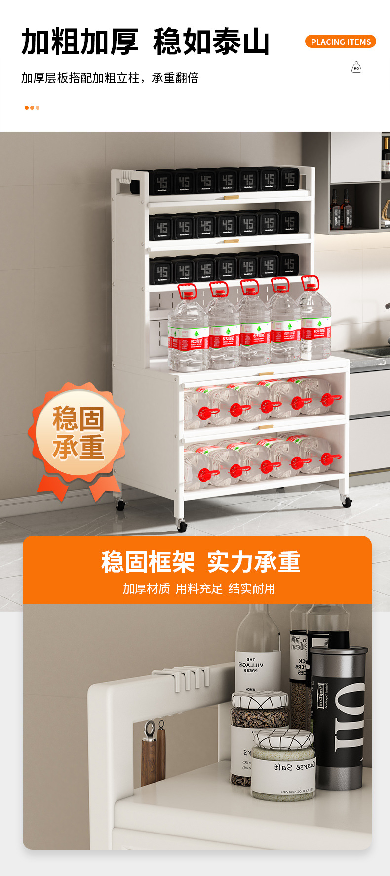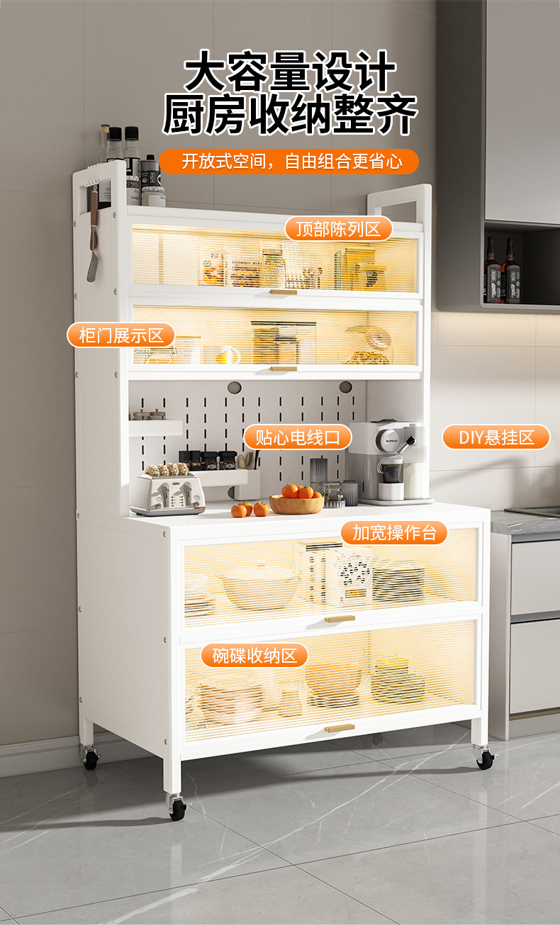 厨房置物架餐边收纳柜落地多层微波炉烤箱收纳架多功能储物橱柜