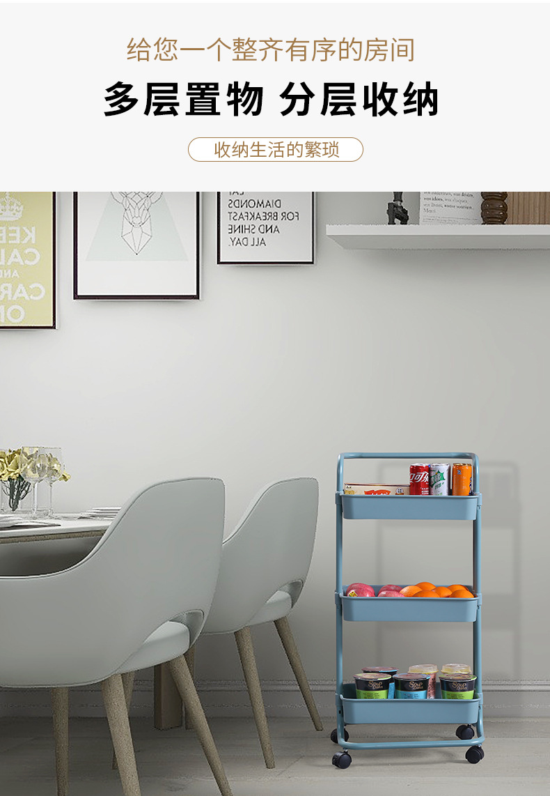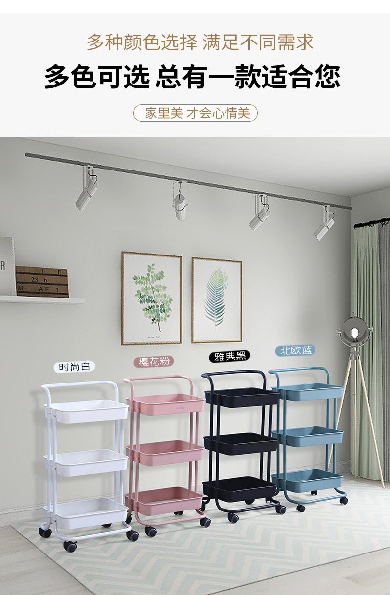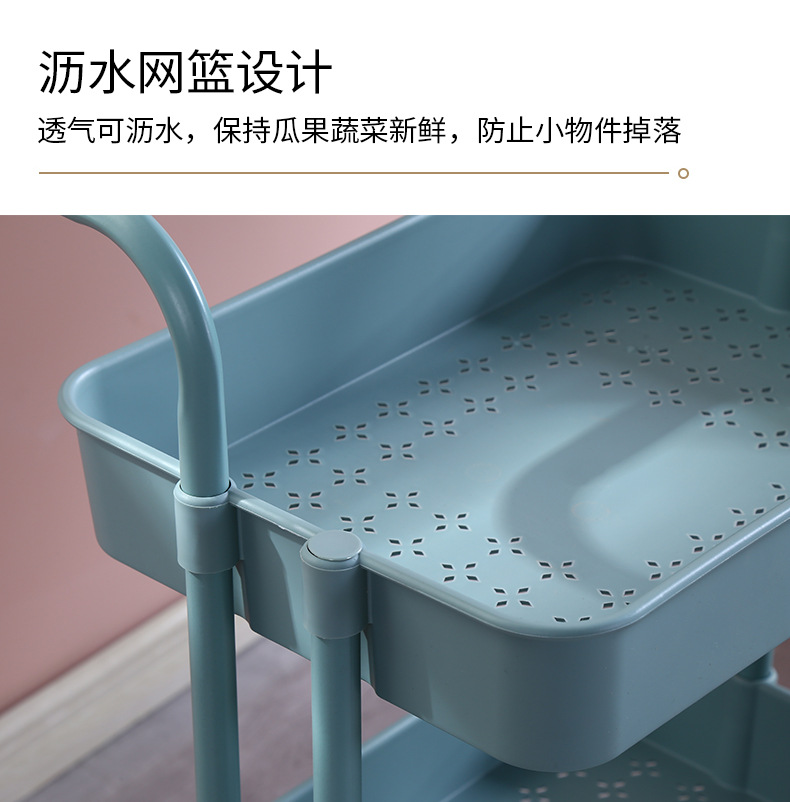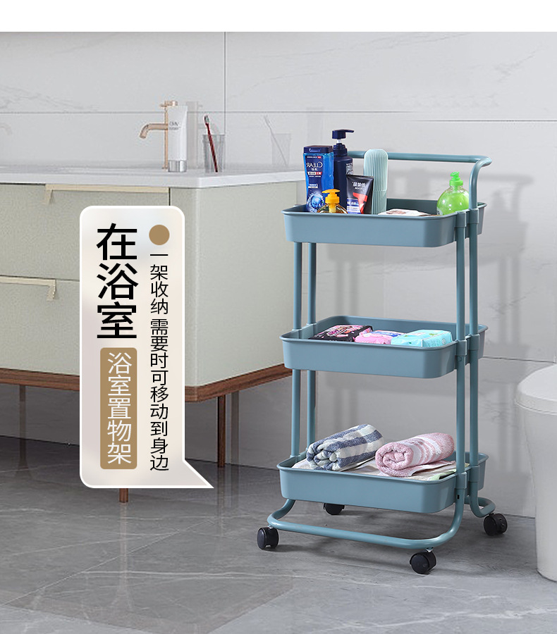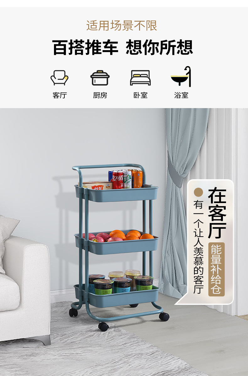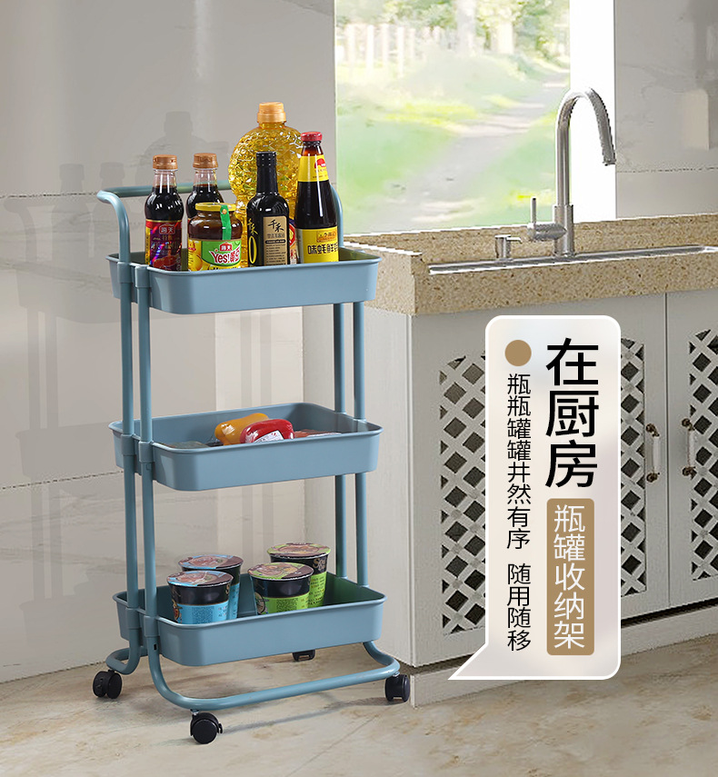 塑钢置物架小推车厨房收纳架子可移动带轮整理储物架美容院手推车