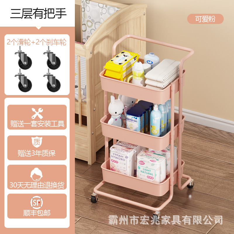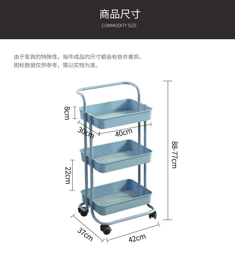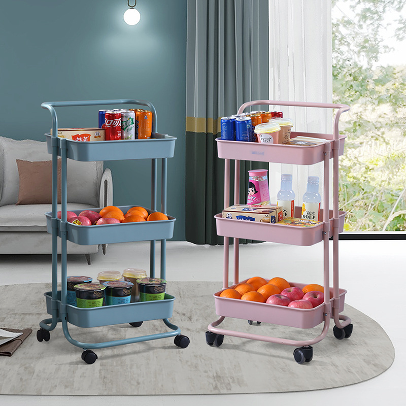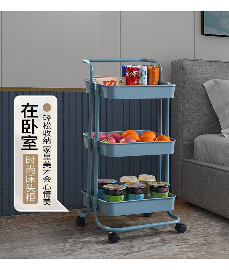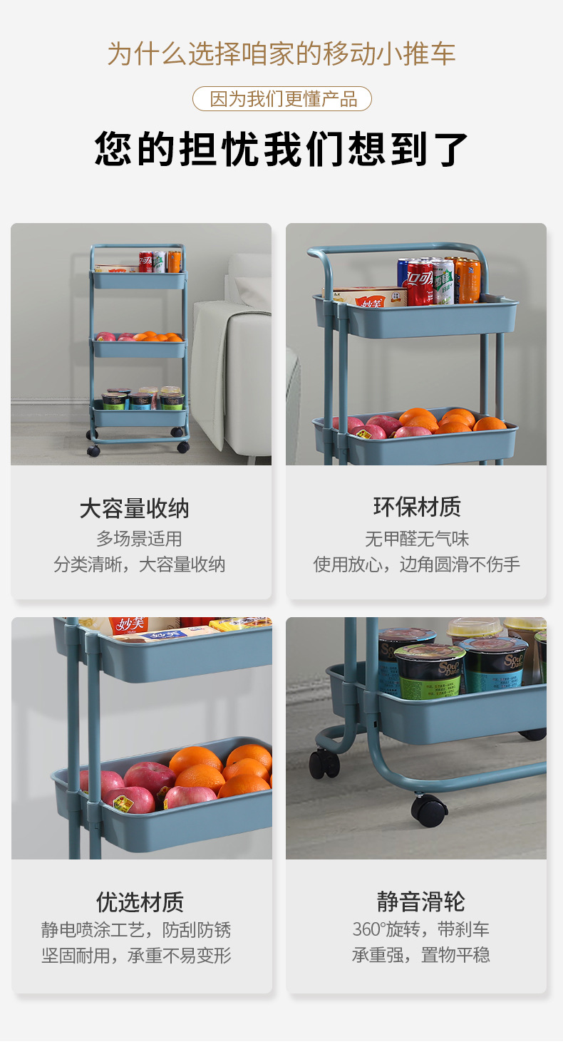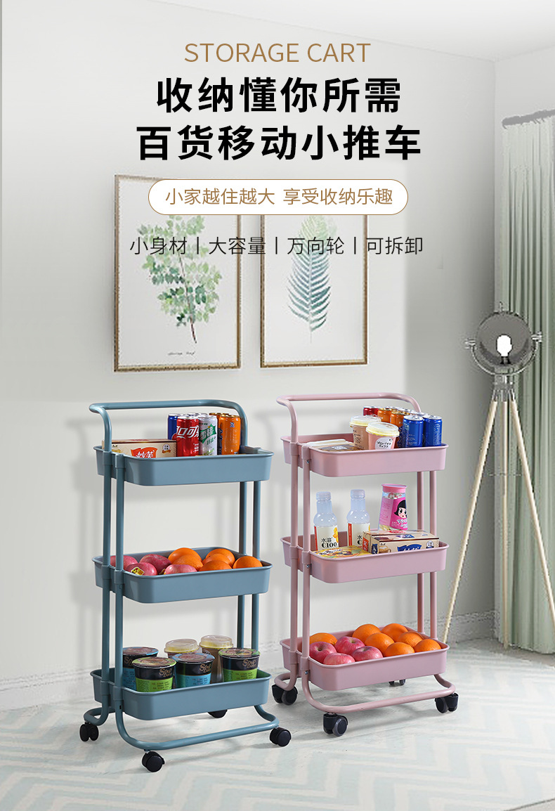 塑钢置物架小推车厨房收纳架子可移动带轮整理储物架美容院手推车