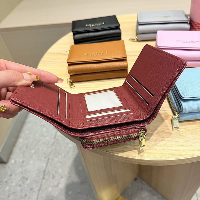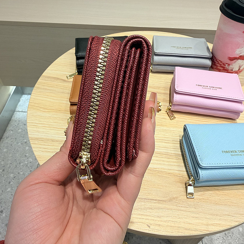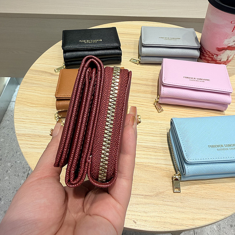 韩版新款简约字母十字纹三折叠wallet学生小钱包零钱包钱包批发