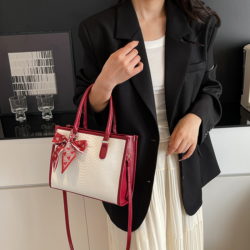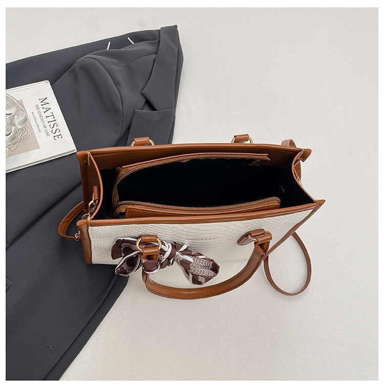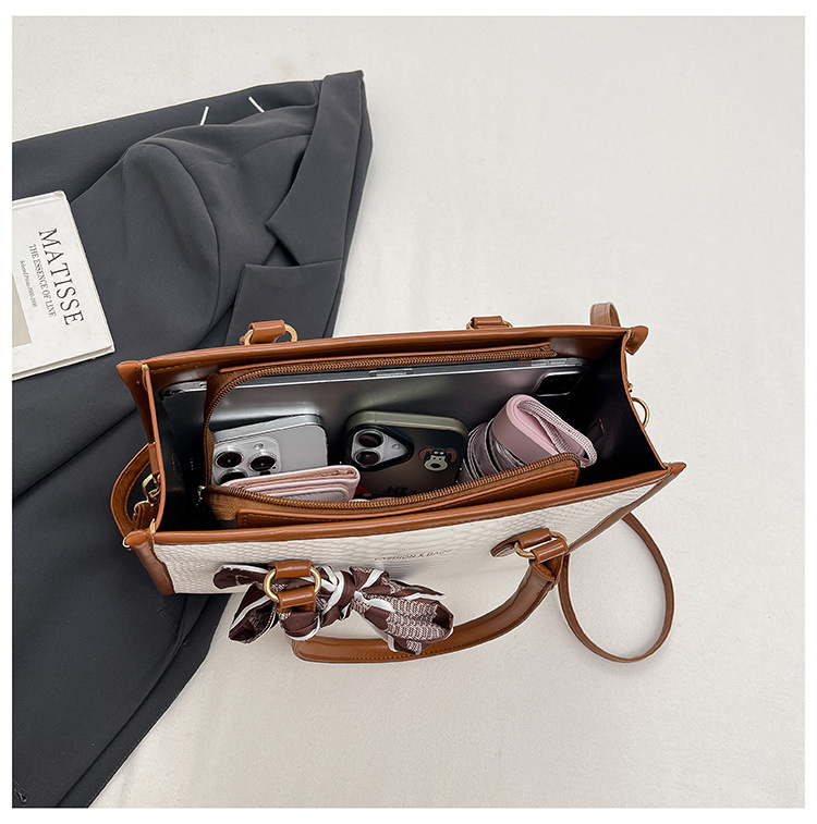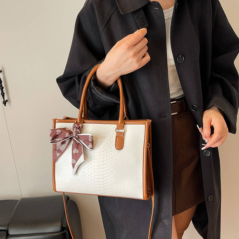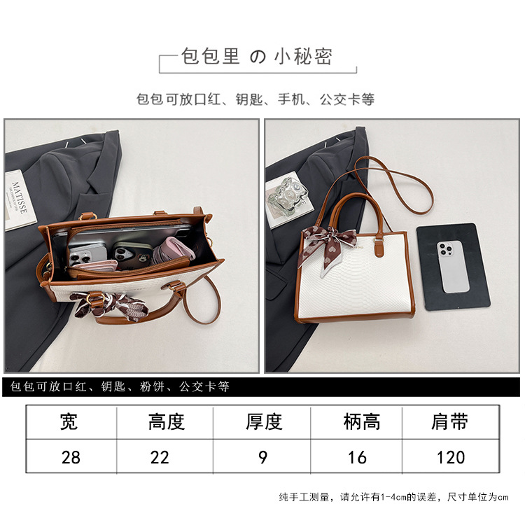 优雅丝巾气质女士包包2026新款潮简约拼色洋气单肩斜挎手提小方包