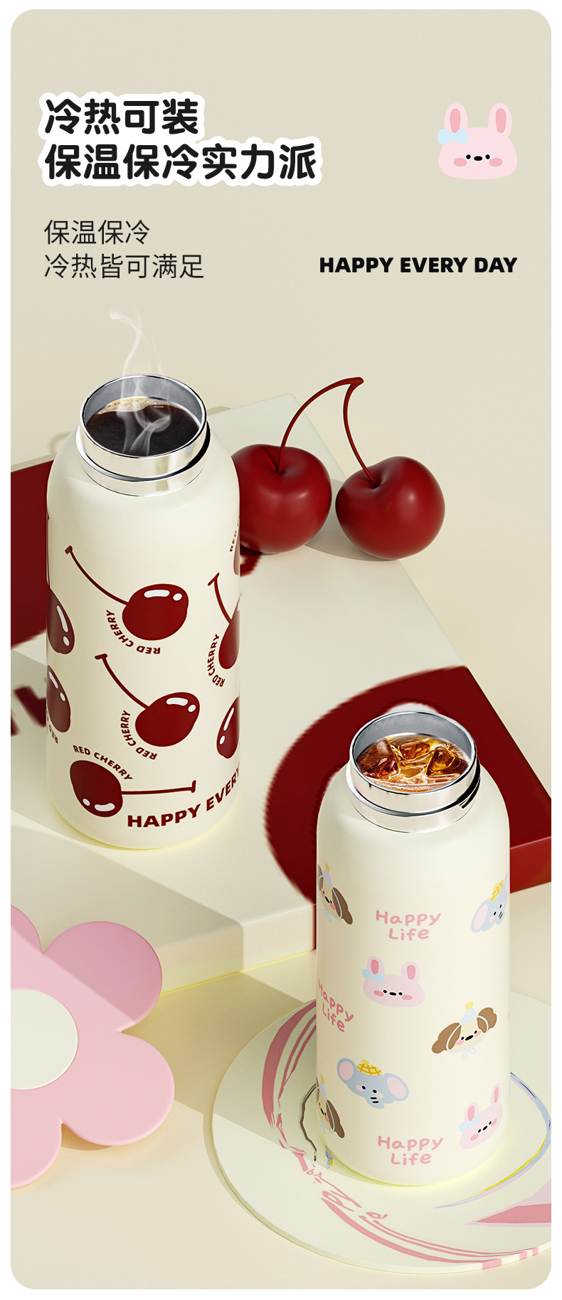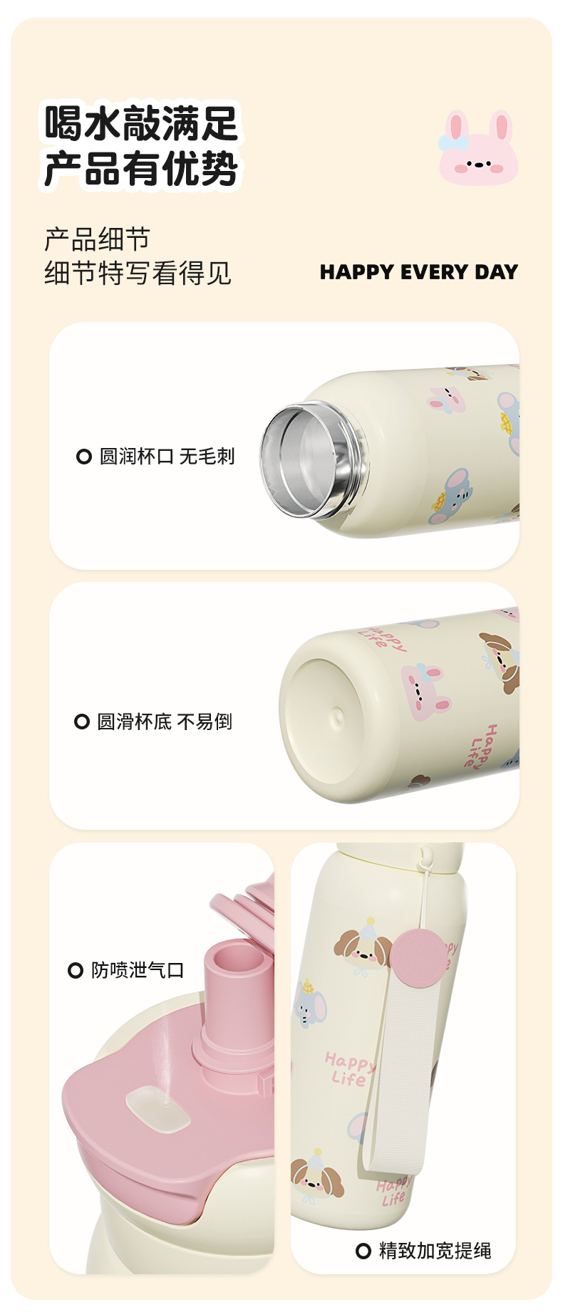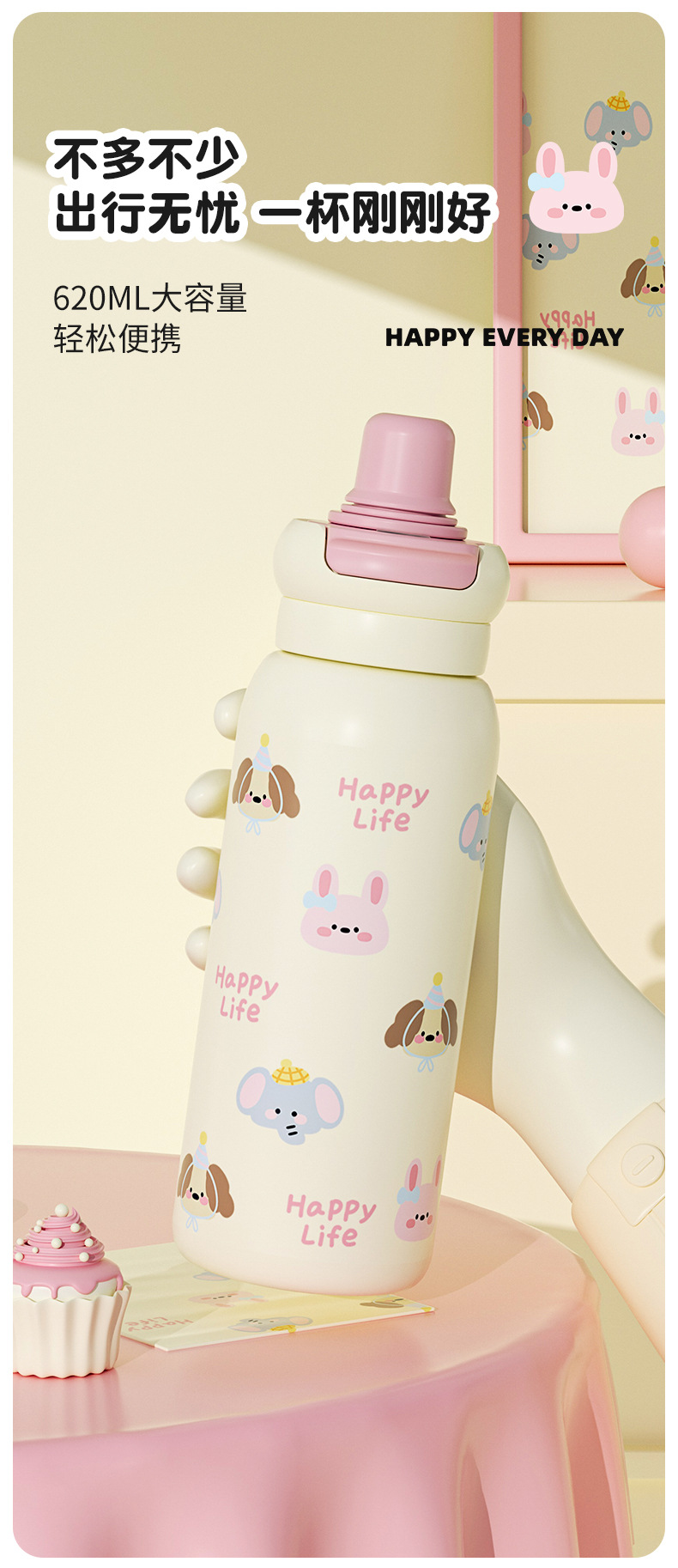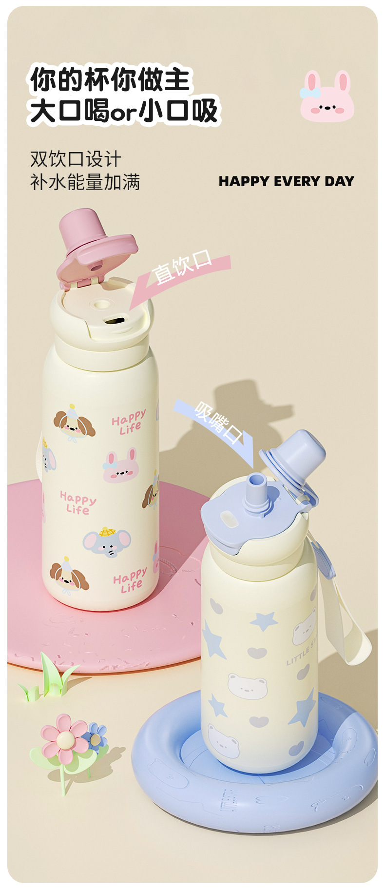新款高颜值保温杯大容量女水杯不锈钢保温杯可爱卡通儿童水杯子