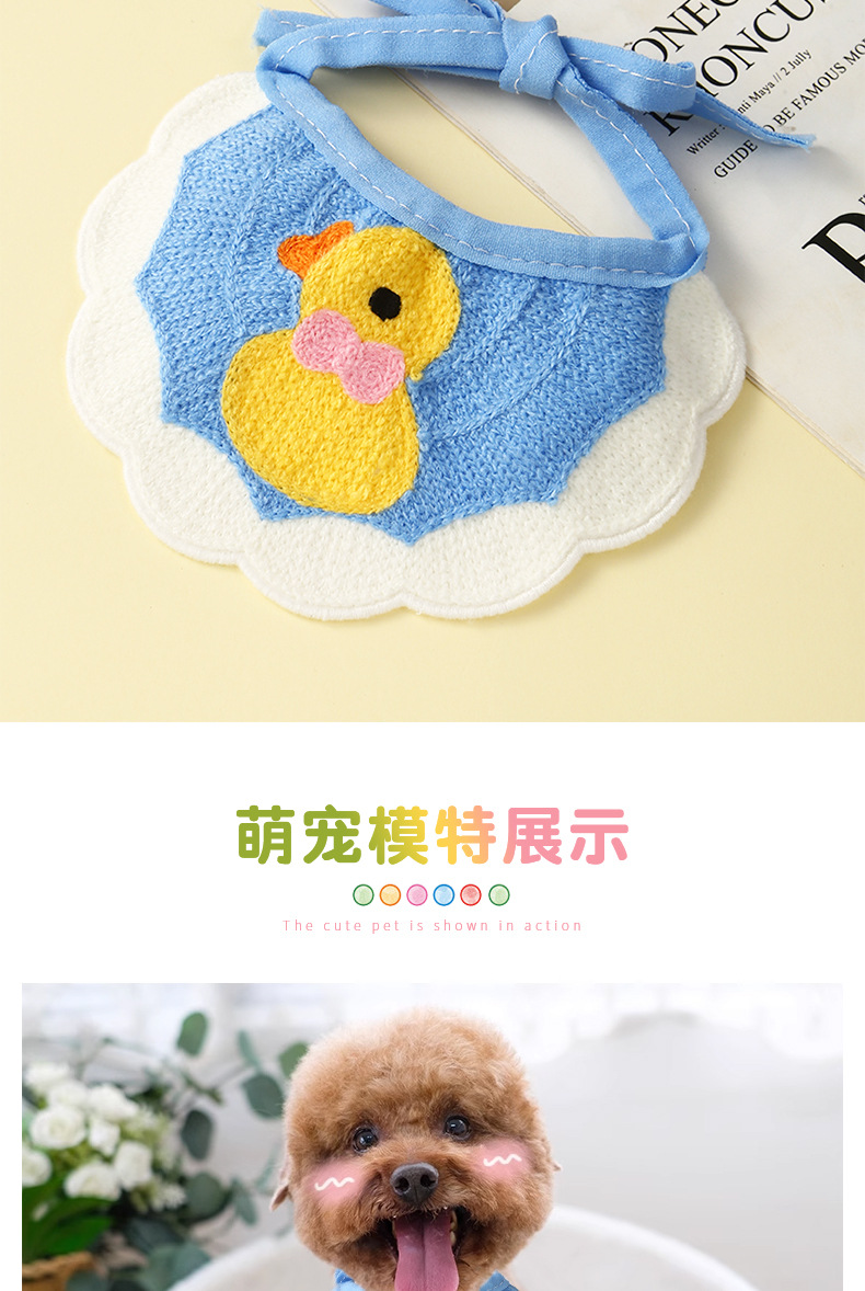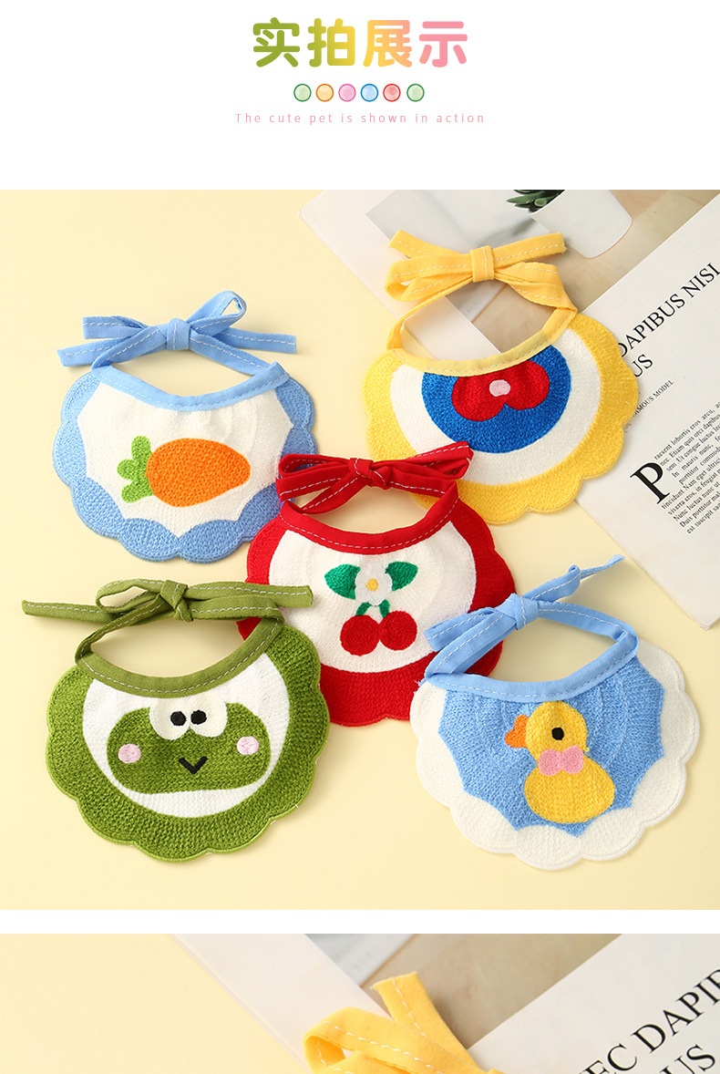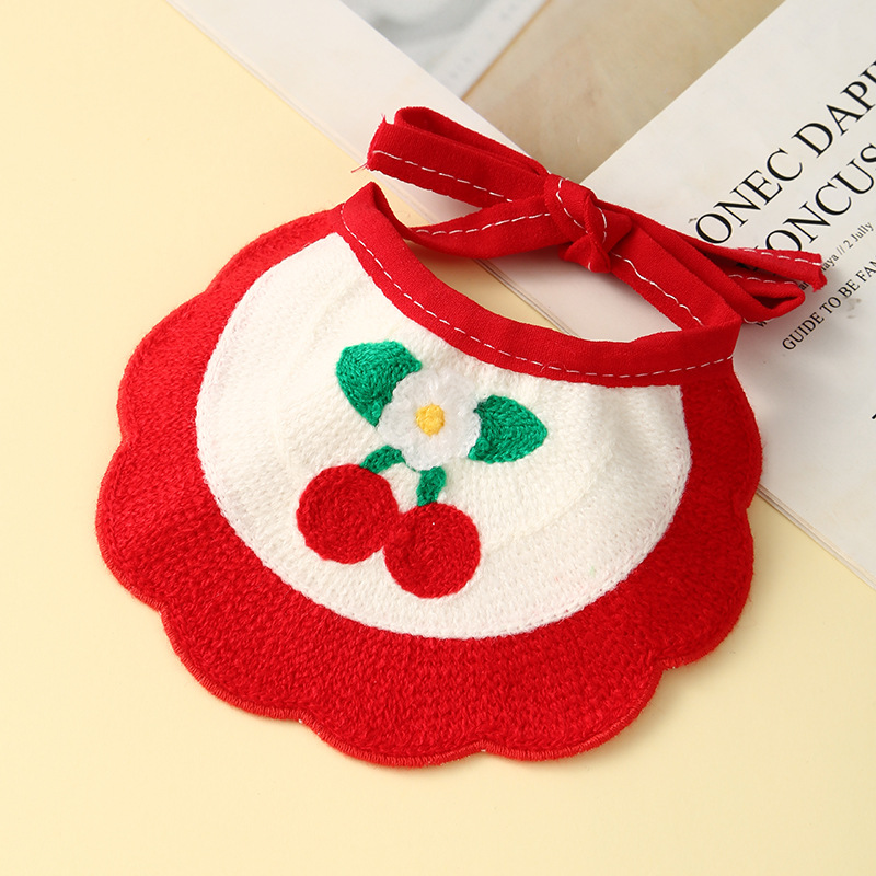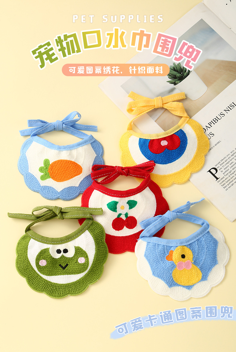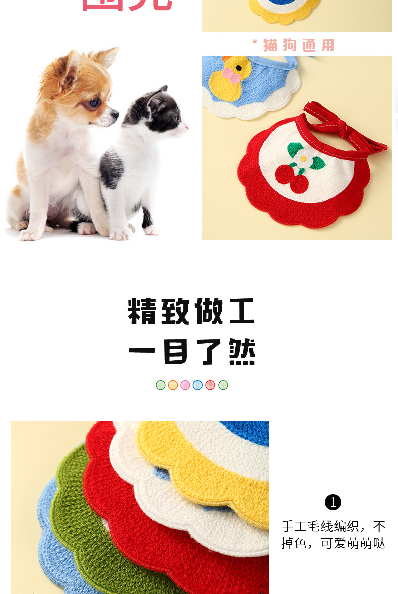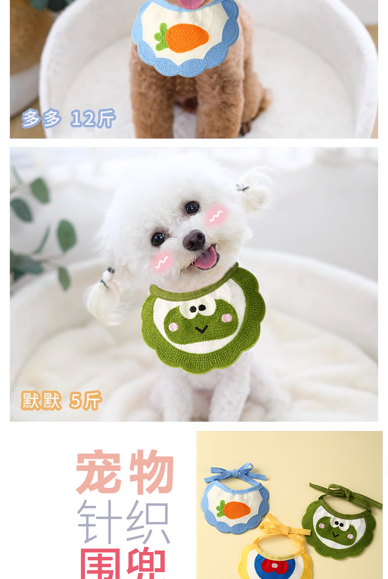 宠物口水巾韩国编织可爱围兜猫咪狗狗三角巾卡通针织围嘴可调节