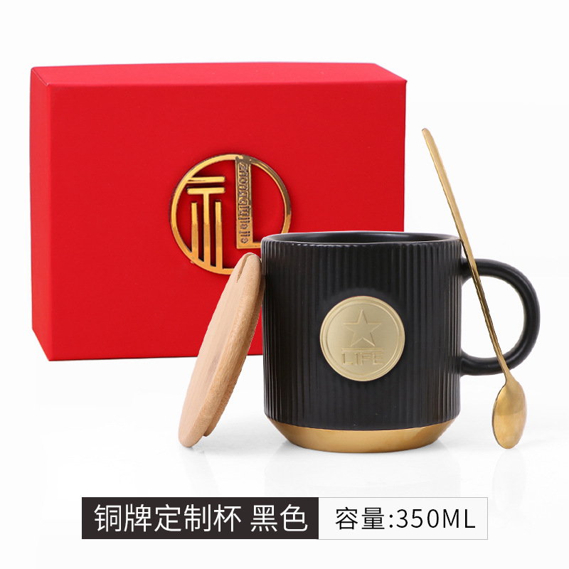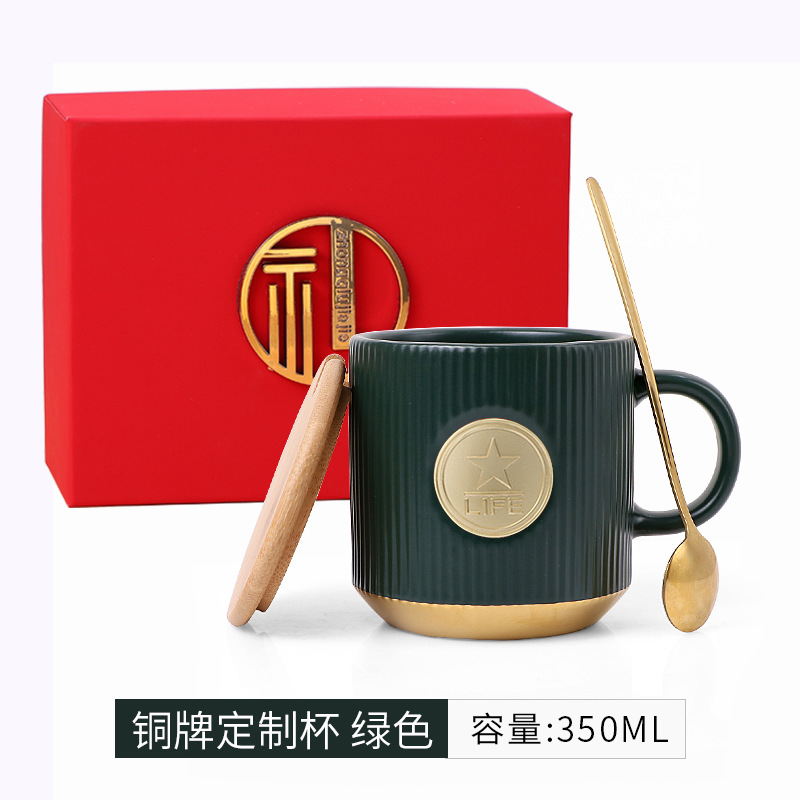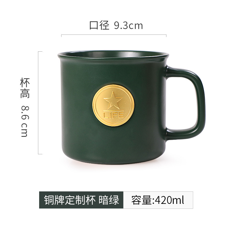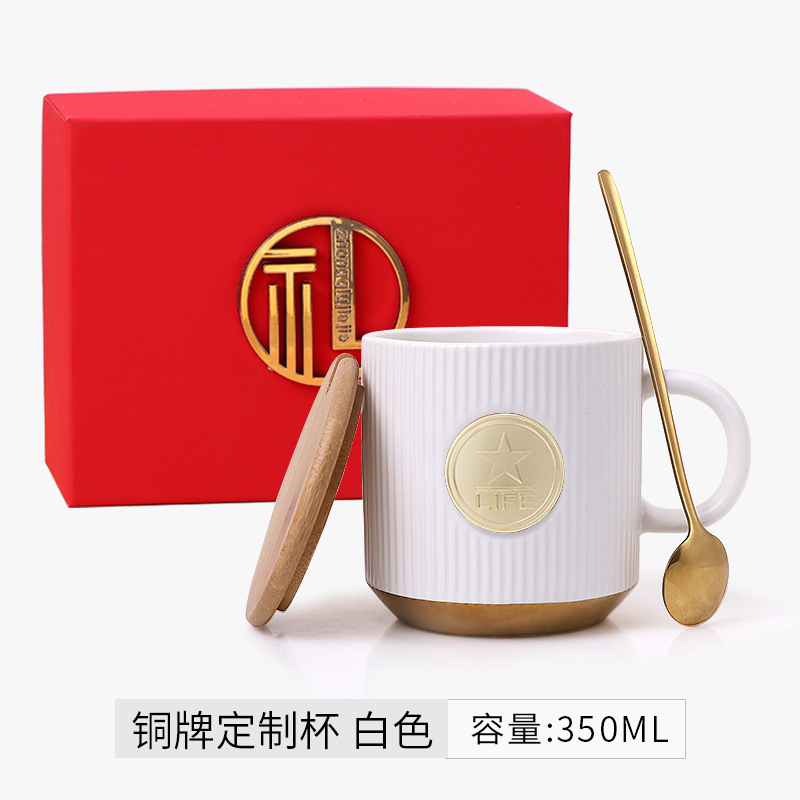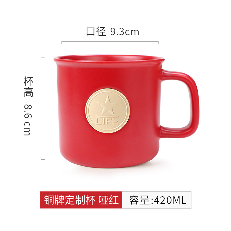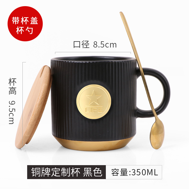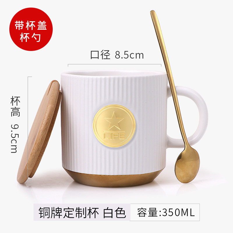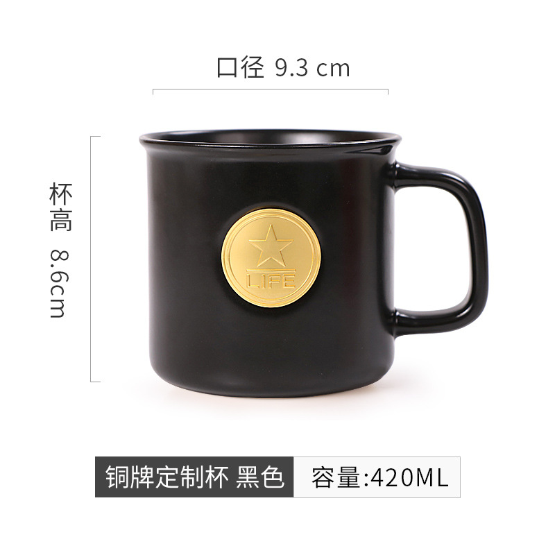 铜牌杯定制LOGO酒店杯子礼品定做广告陶瓷杯厂家刻字马克杯订制