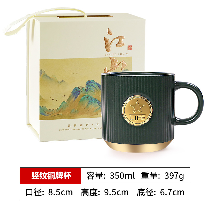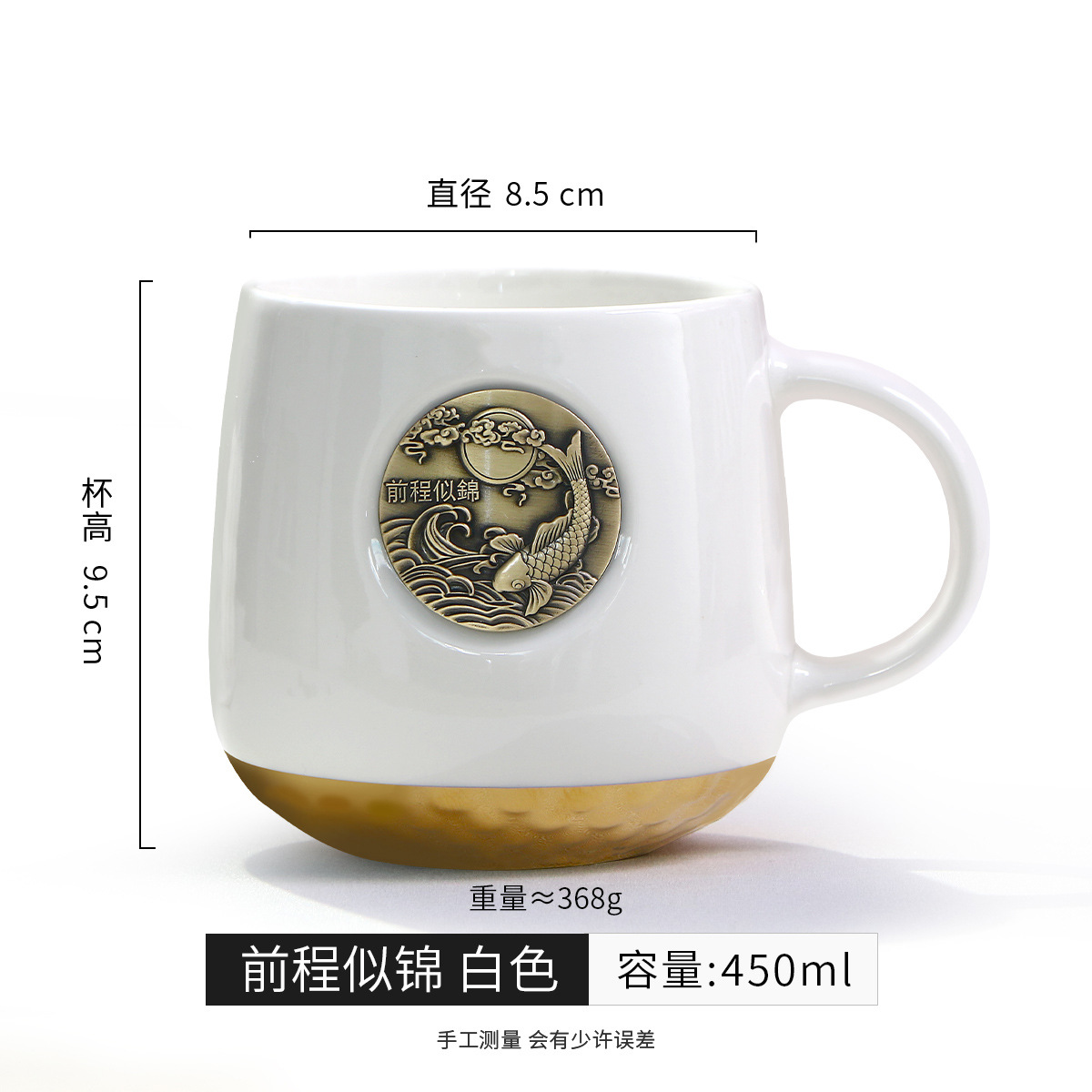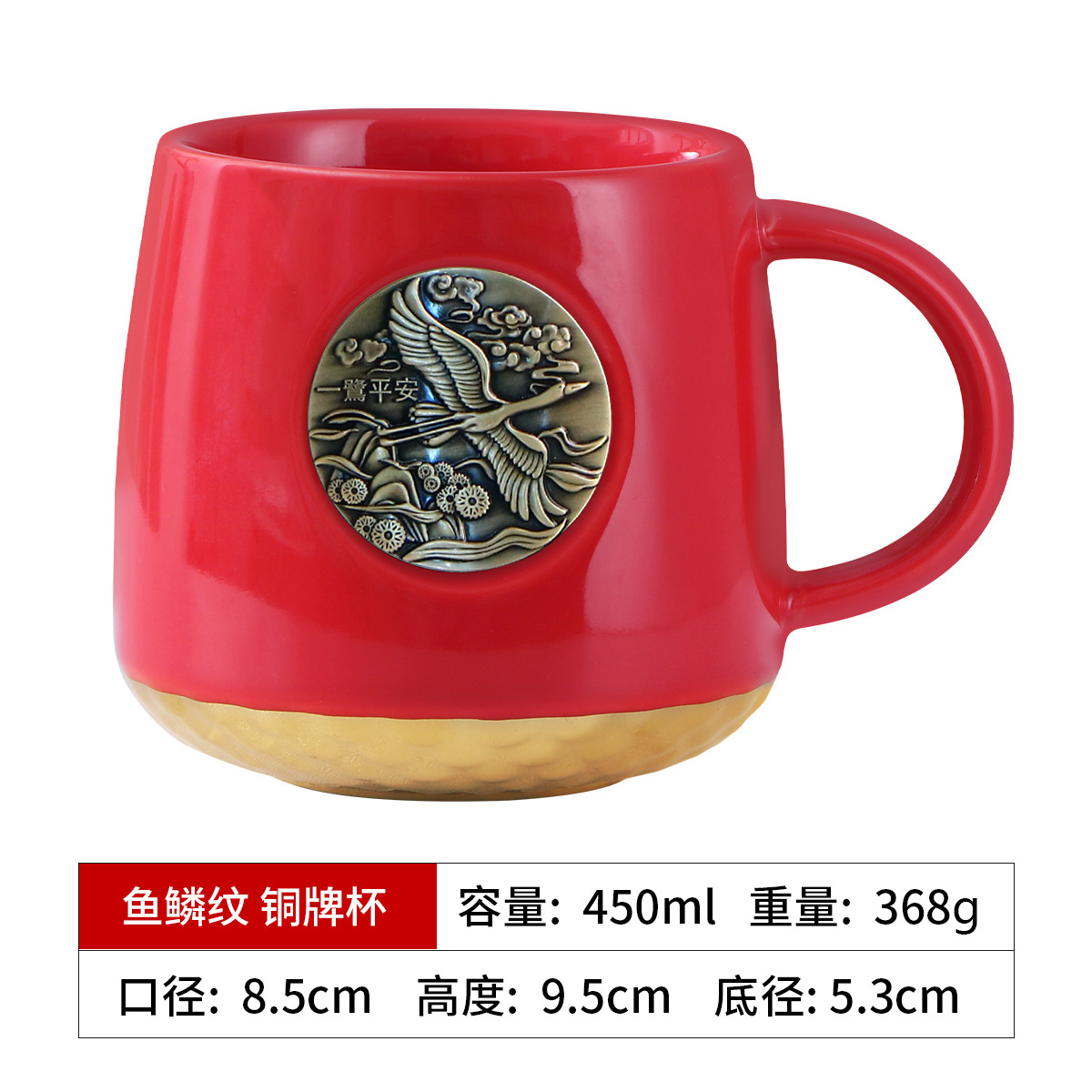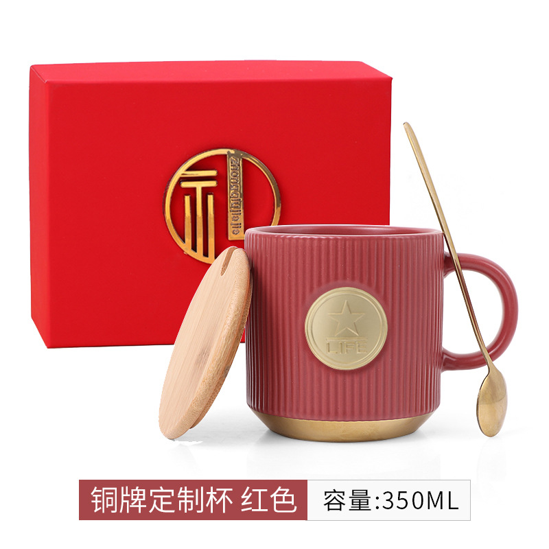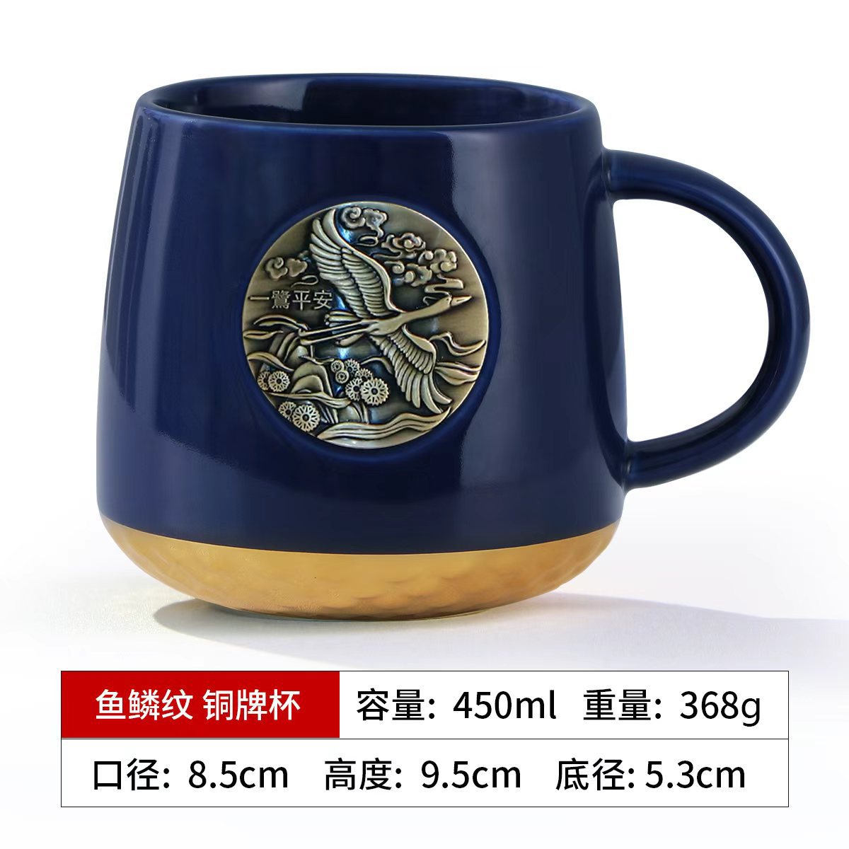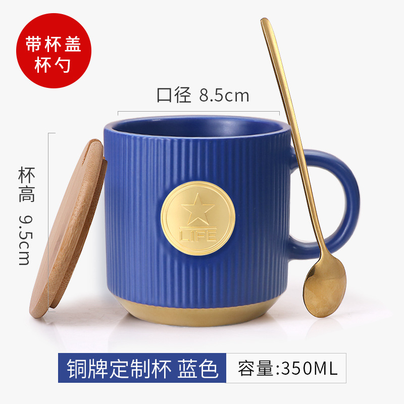 铜牌杯定制LOGO酒店杯子礼品定做广告陶瓷杯厂家刻字马克杯订制