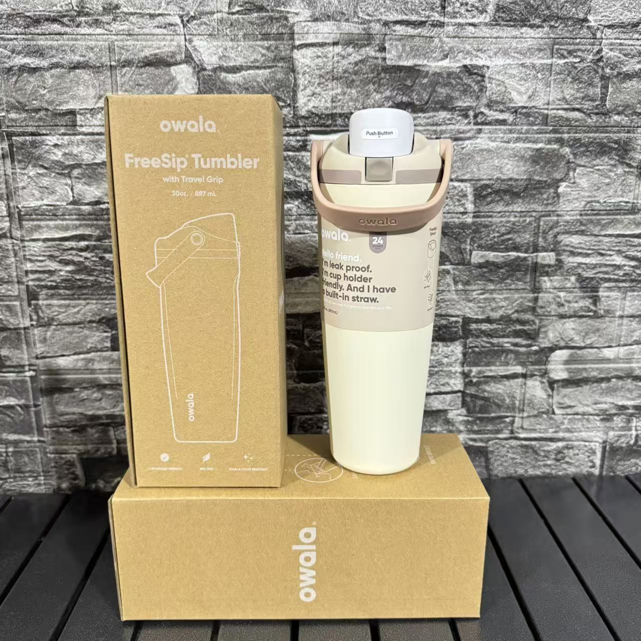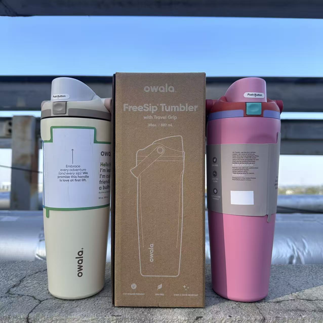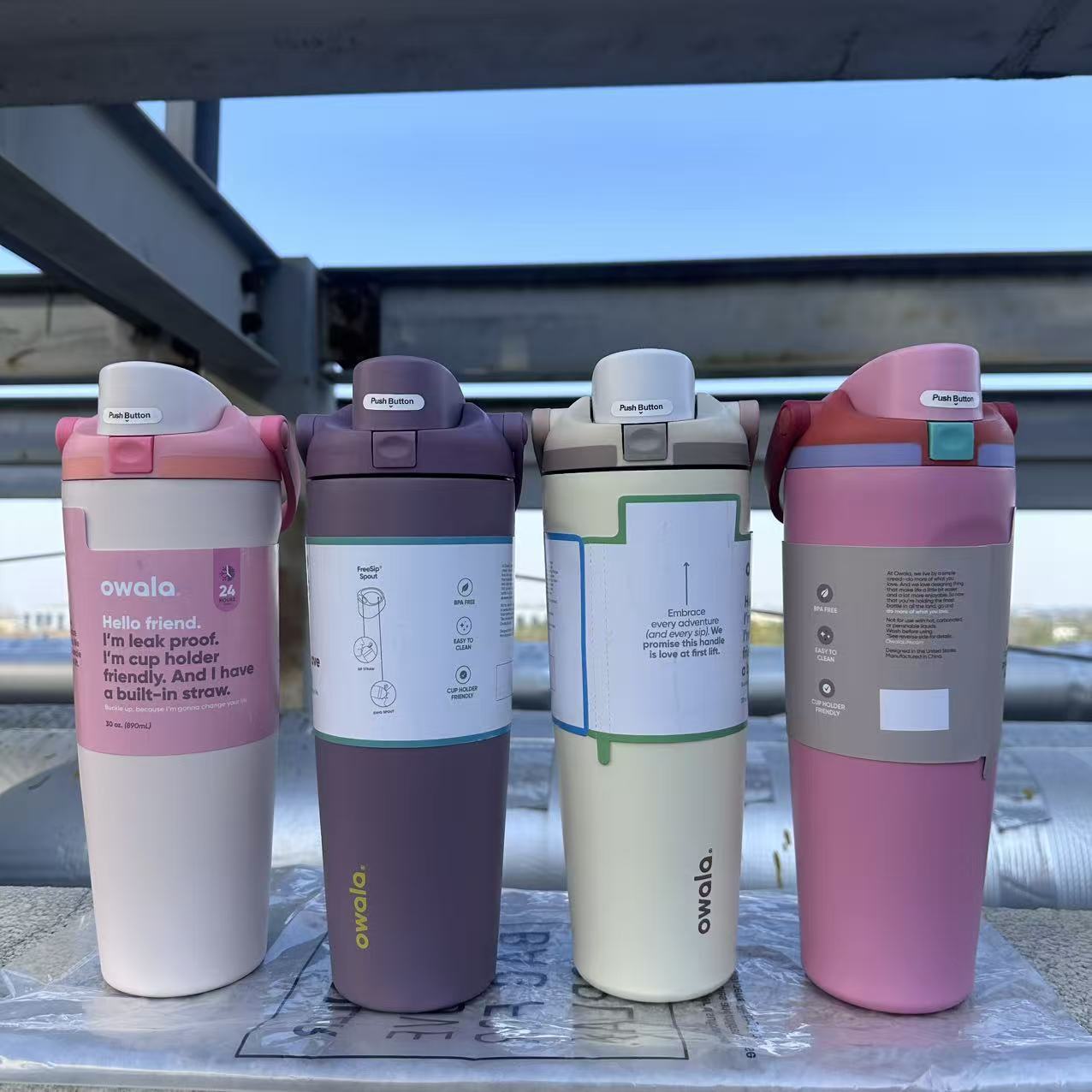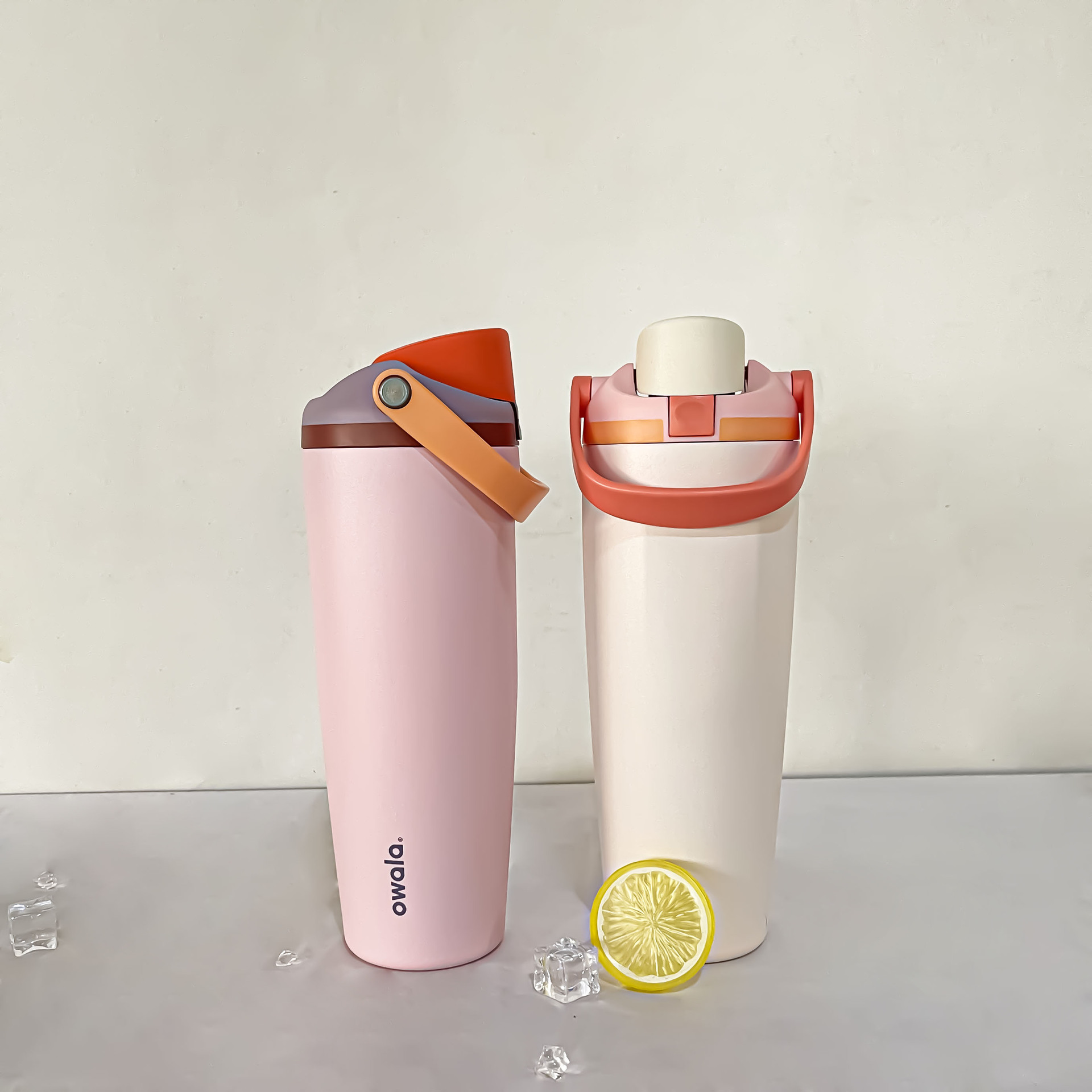 跨境Owala同款手提不锈钢保温水壶304真空双层便携双饮弹跳车载杯