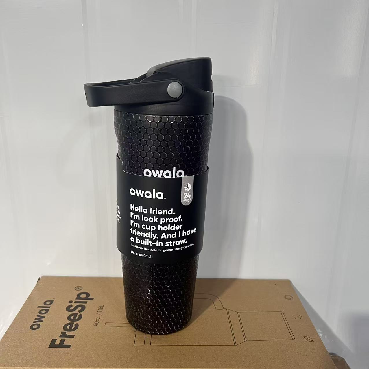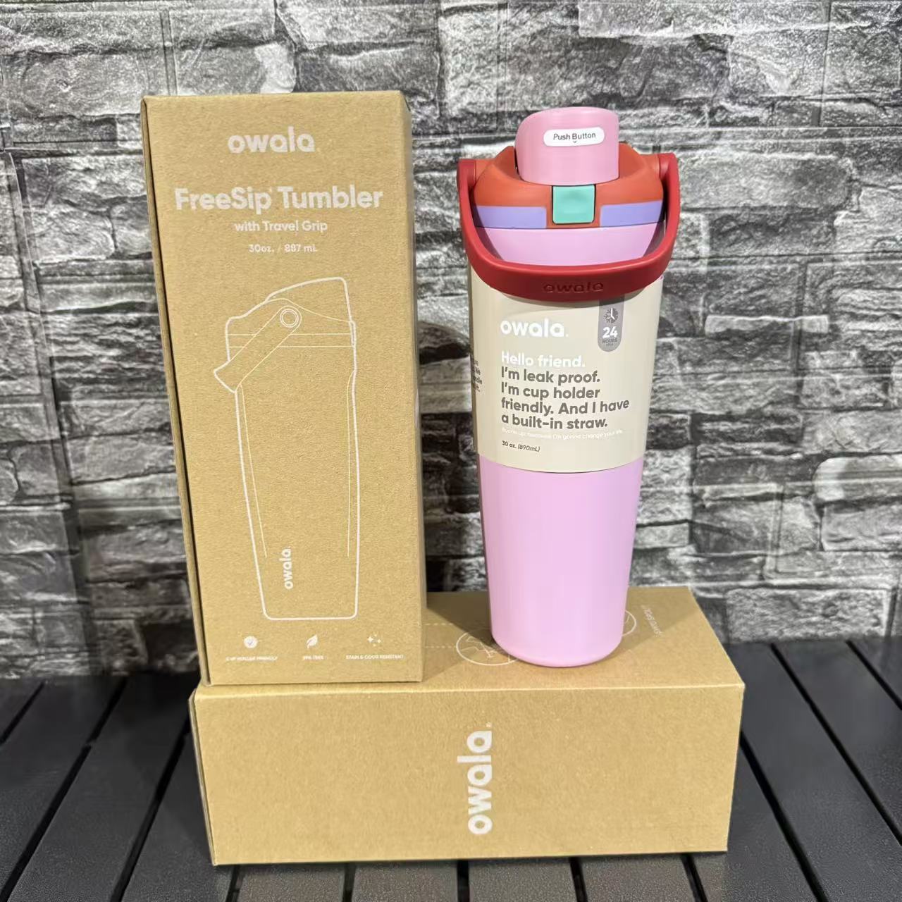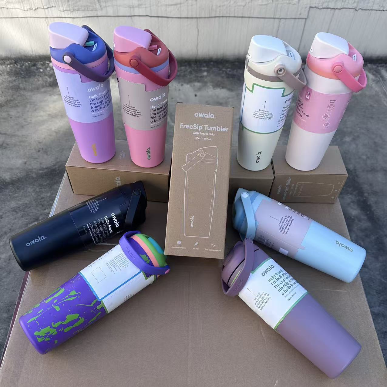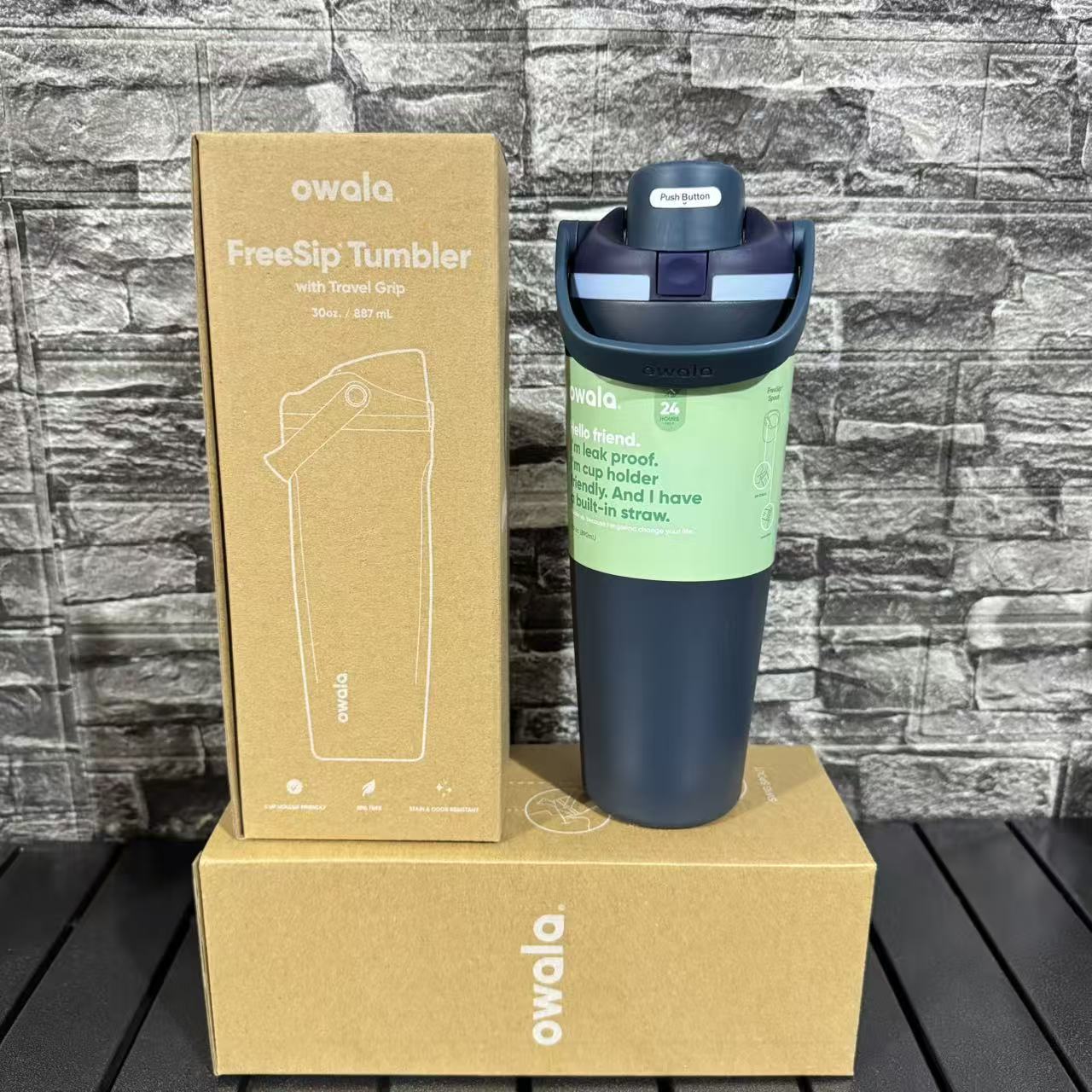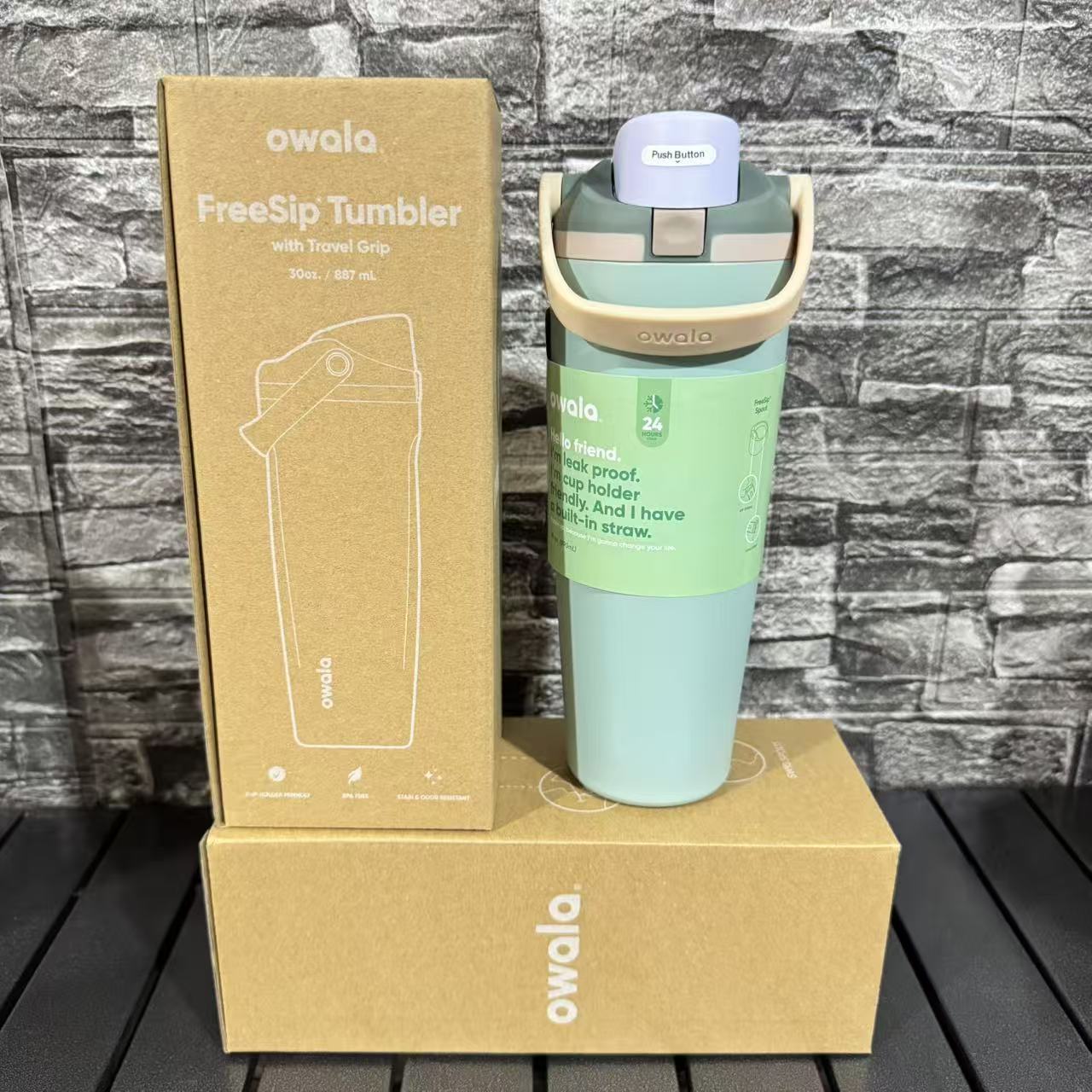 跨境Owala同款手提不锈钢保温水壶304真空双层便携双饮弹跳车载杯