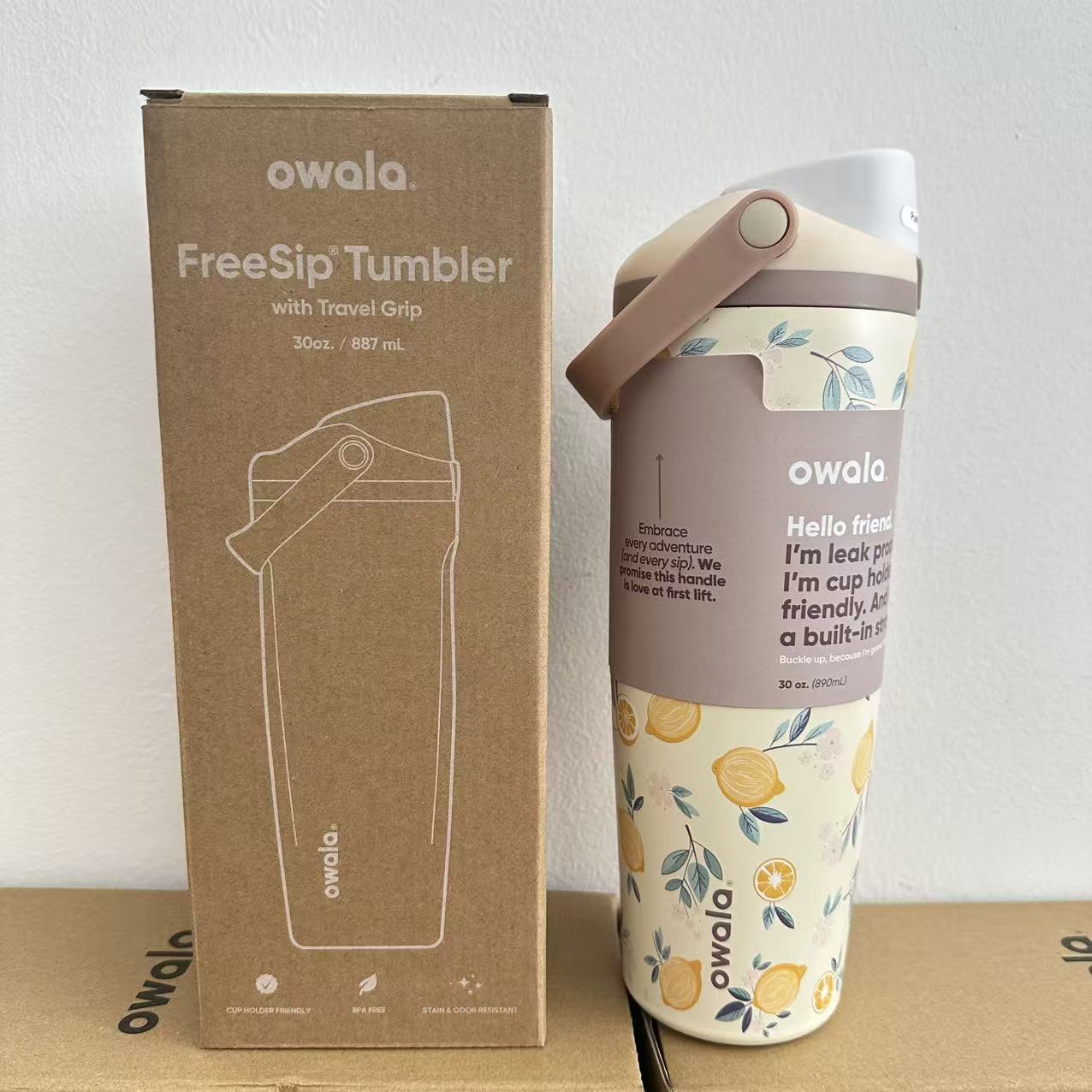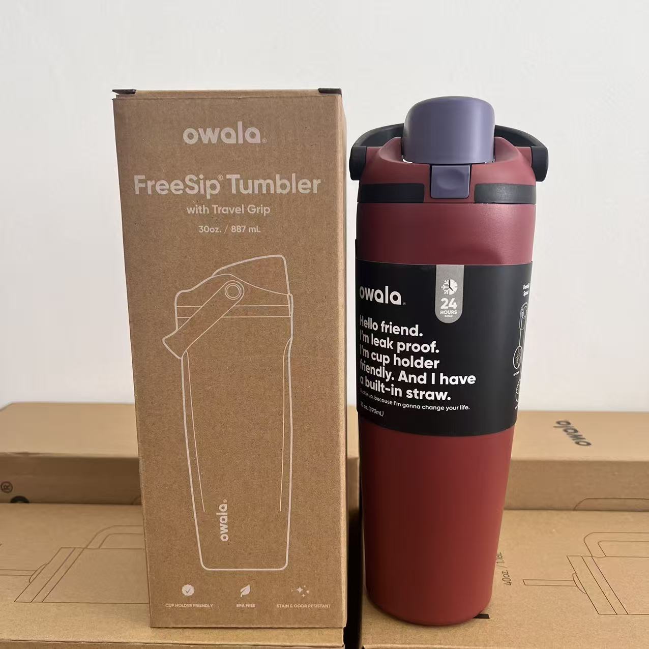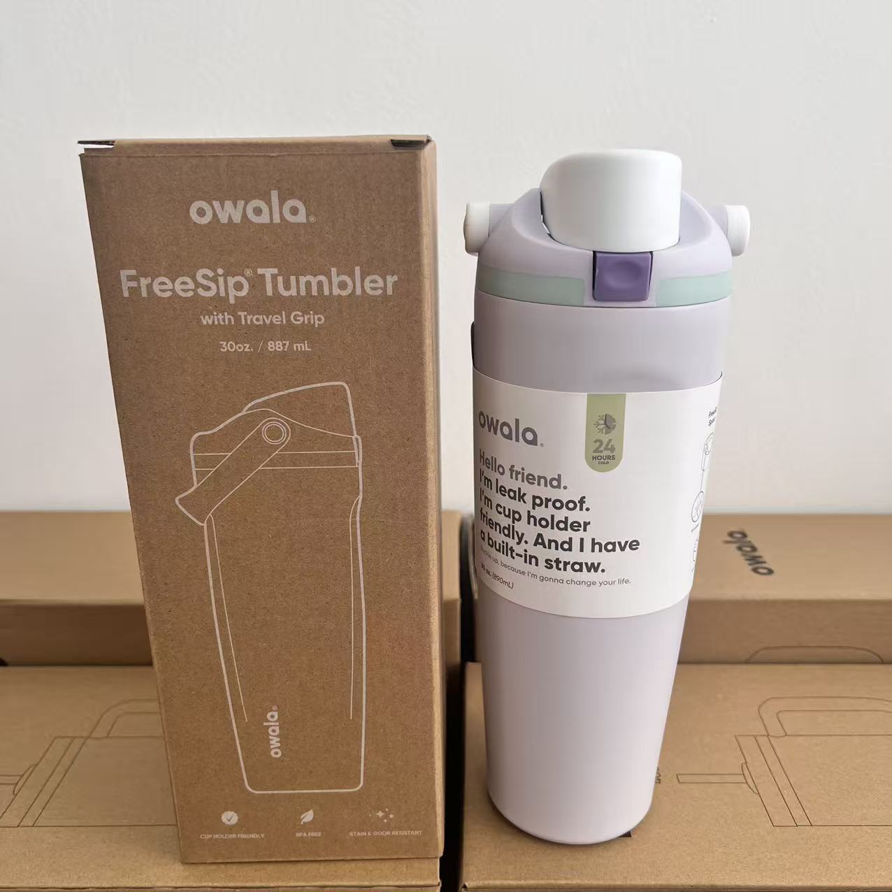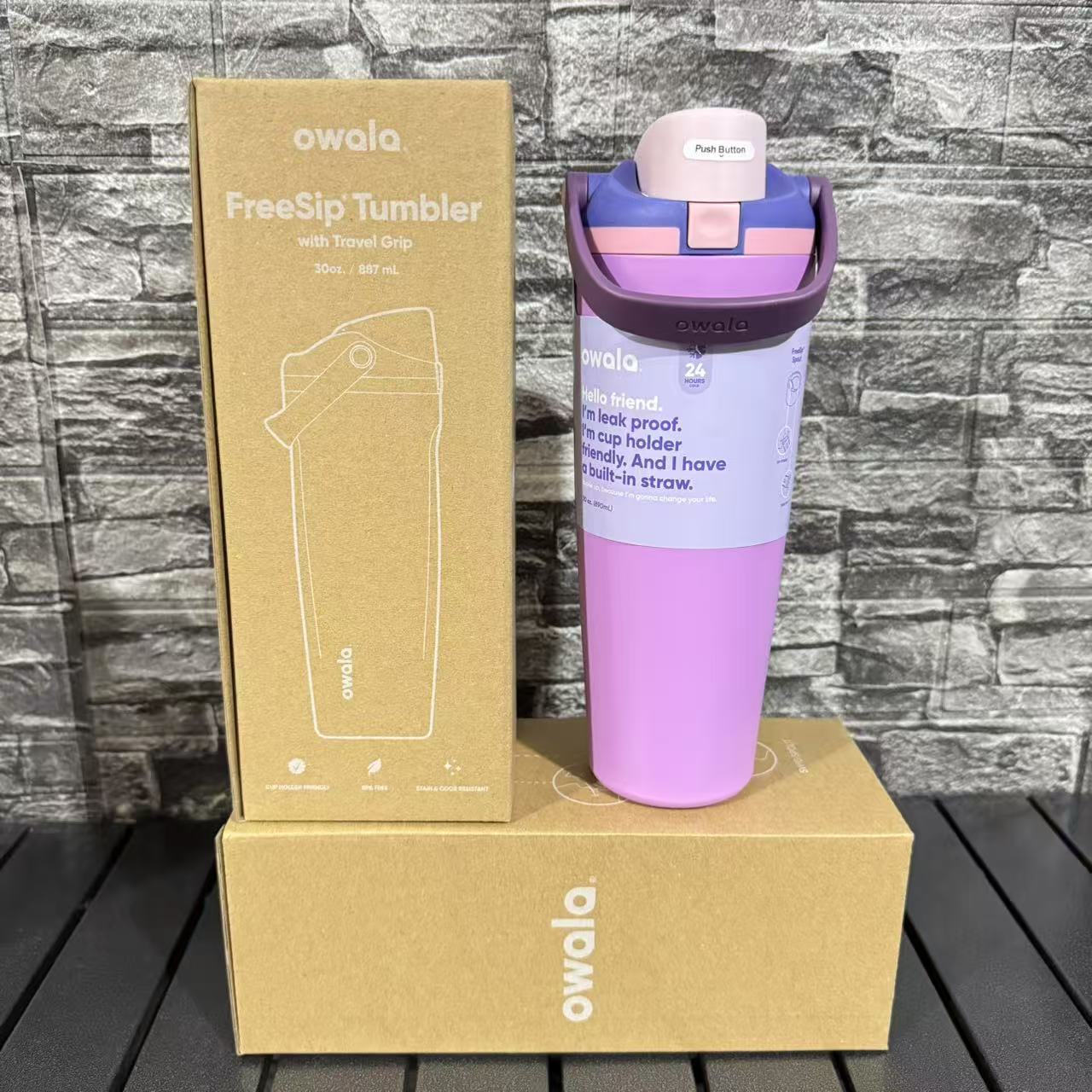 跨境Owala同款手提不锈钢保温水壶304真空双层便携双饮弹跳车载杯