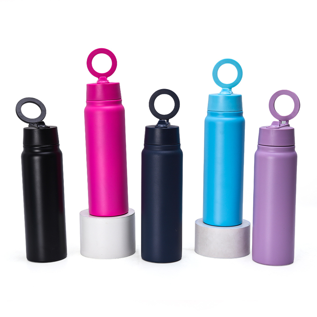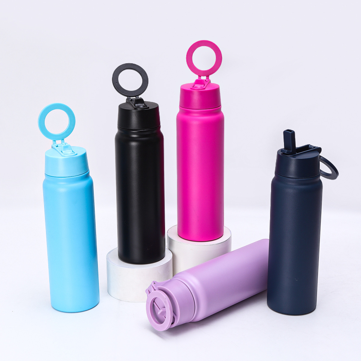 跨境磁吸盖手机支架太空壶304不锈钢保温杯户外登山骑行运动水壶
