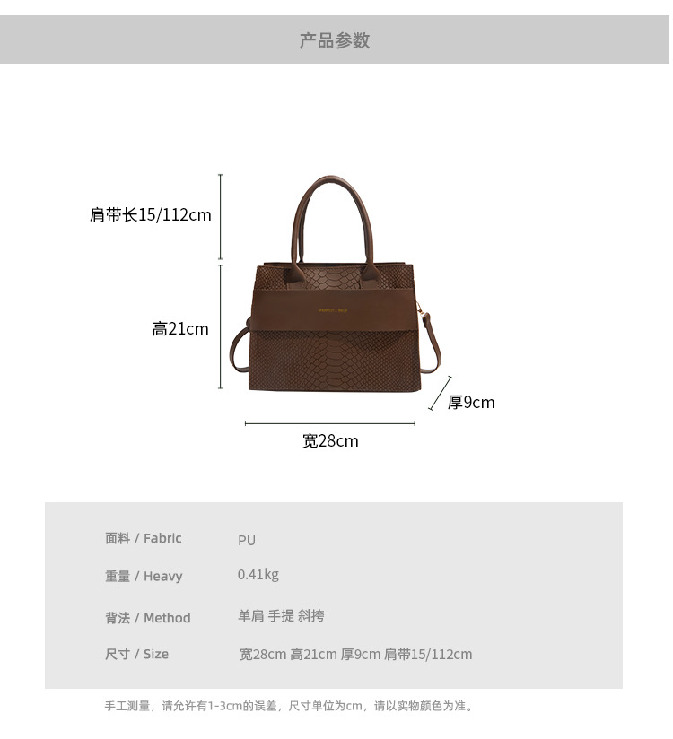 2026春夏新款女士手提包欧美时尚包鳄鱼纹气质通勤百搭单肩斜挎包
