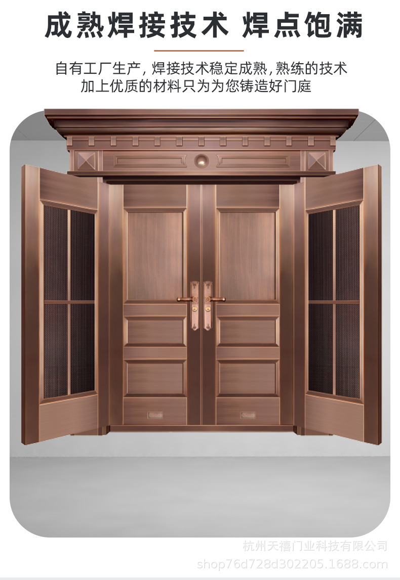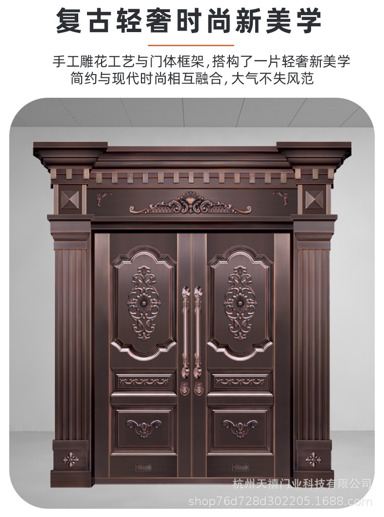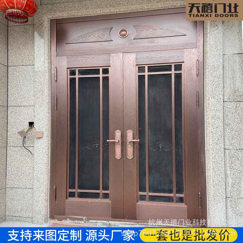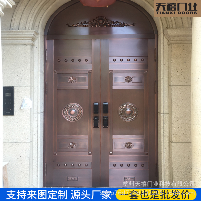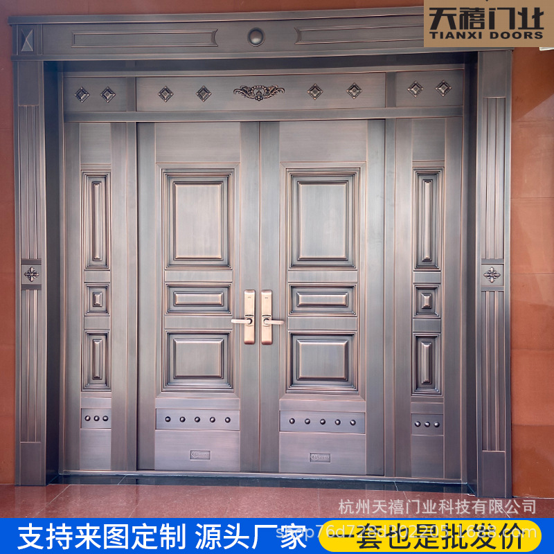 铜门别墅大门双开门乡村庭院门农村自建房大门不锈钢仿铜门进户门