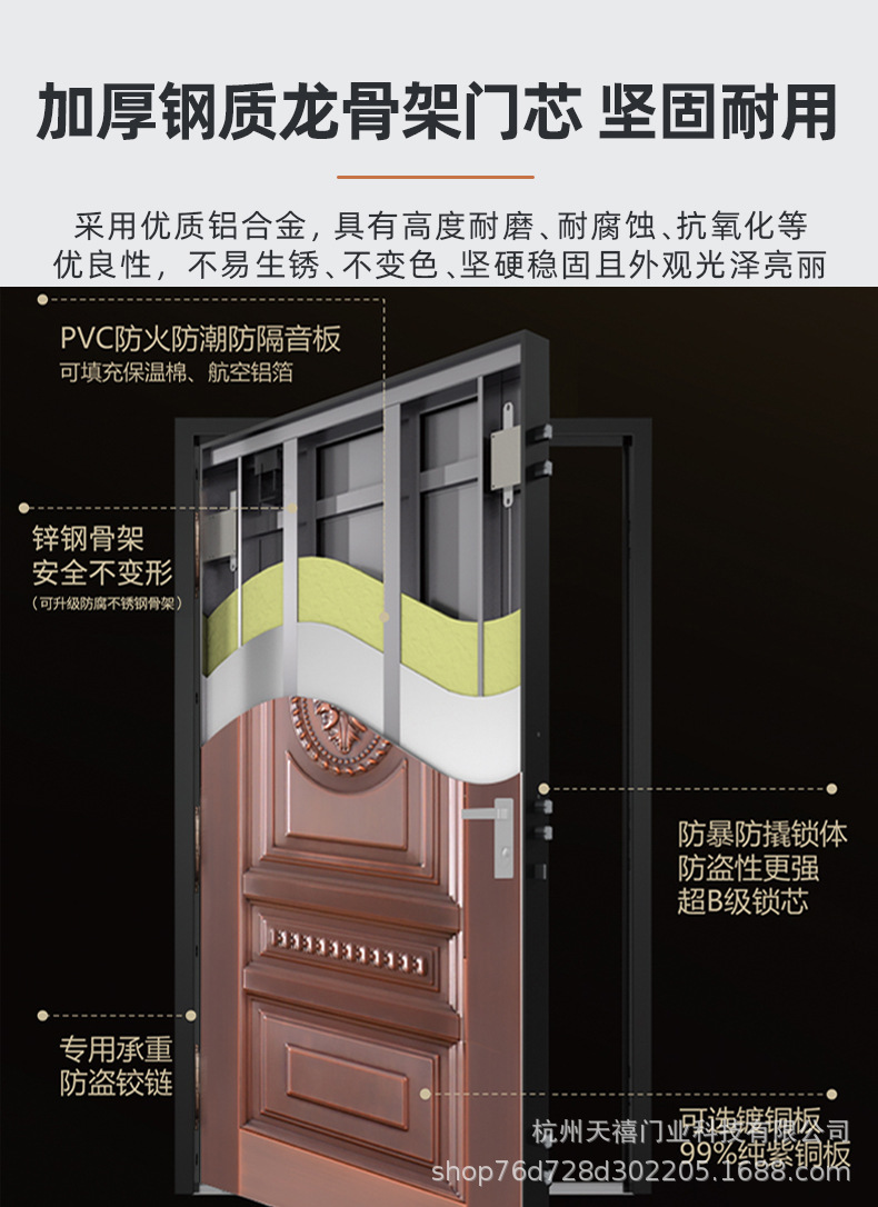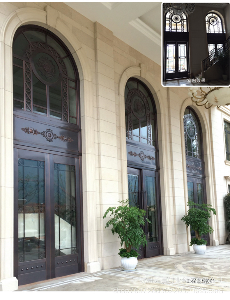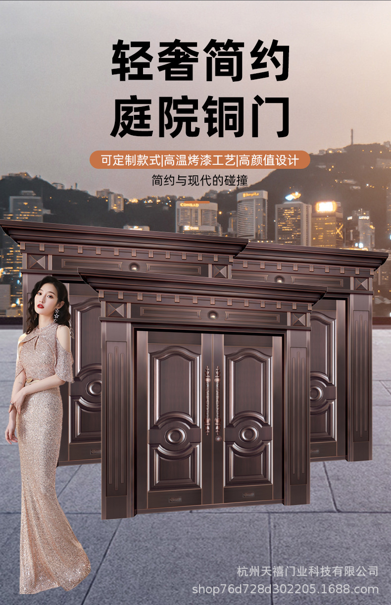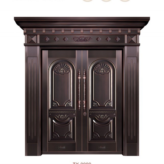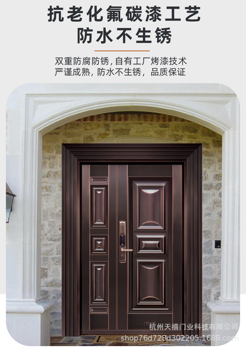 铜门别墅大门双开门乡村庭院门农村自建房大门不锈钢仿铜门进户门