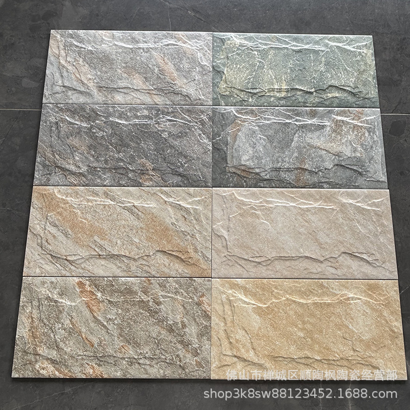 仿文化石瓷砖别墅自建房200x400蘑菇石凹凸外墙砖室外围墙仿石砖