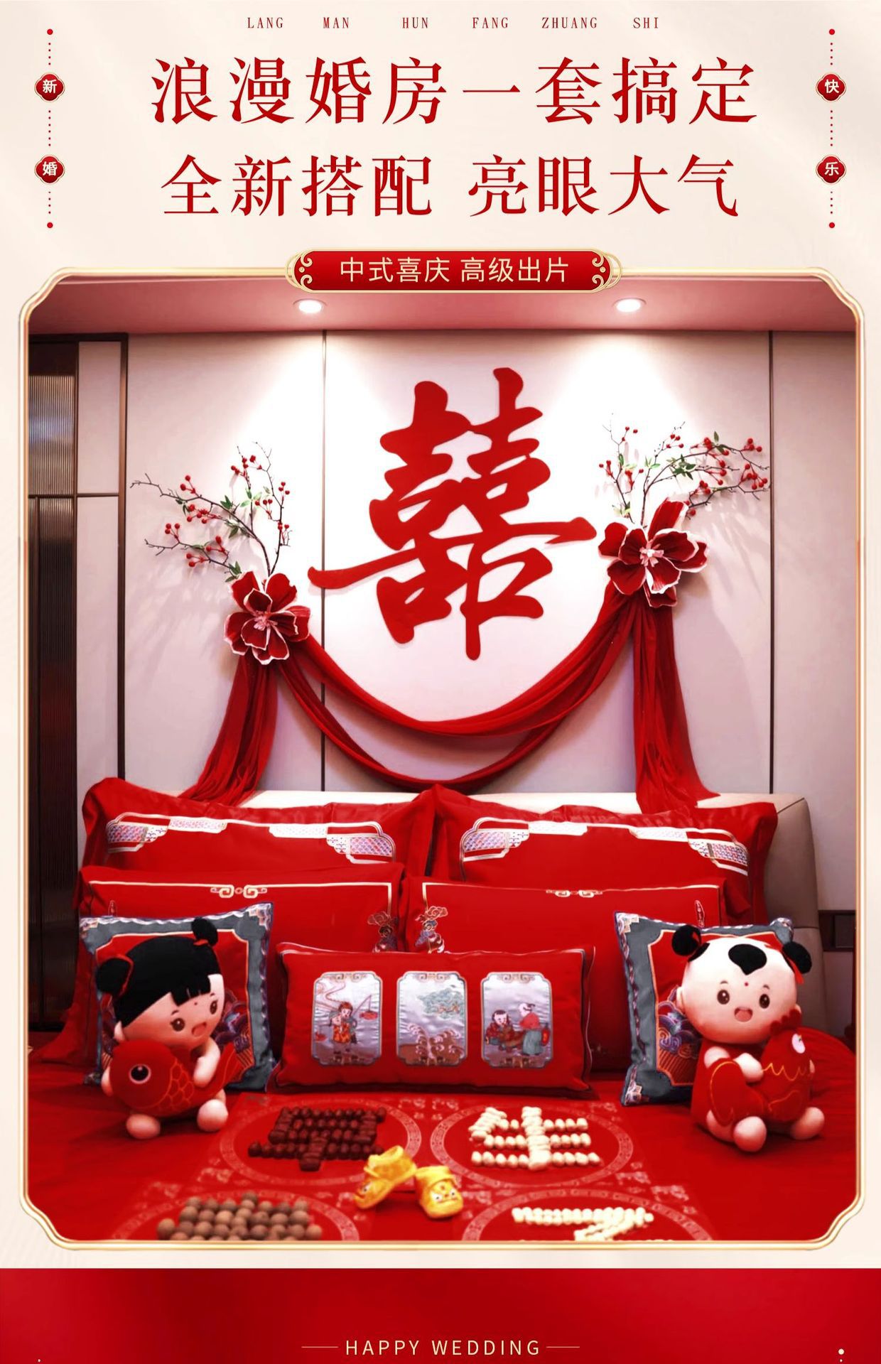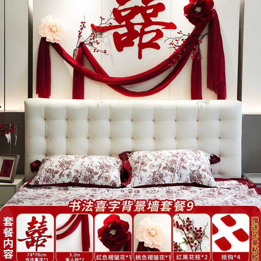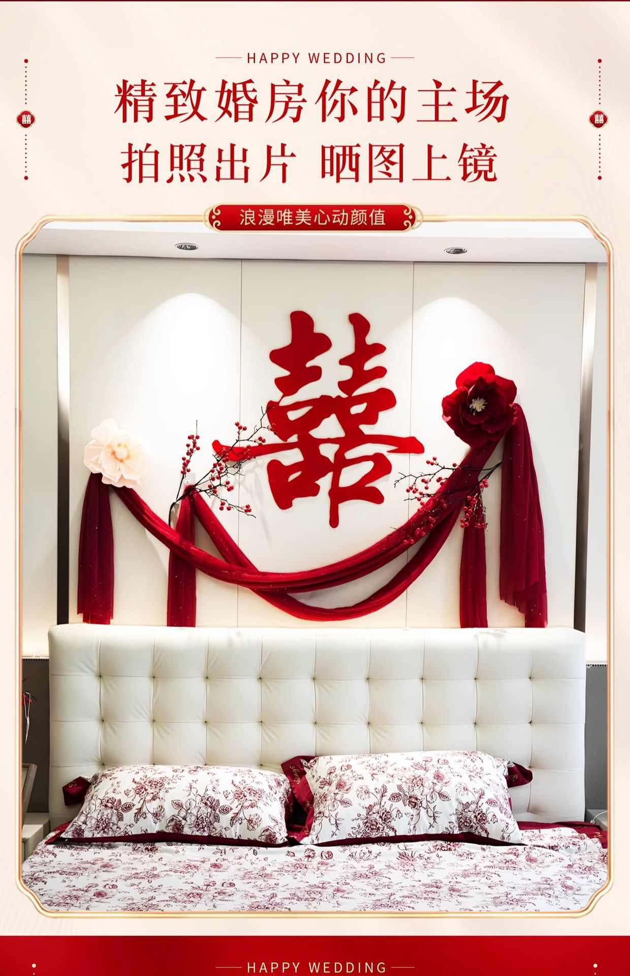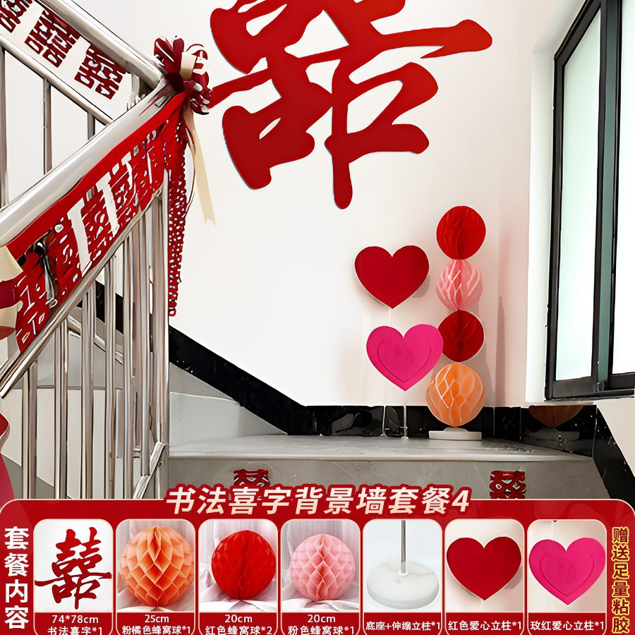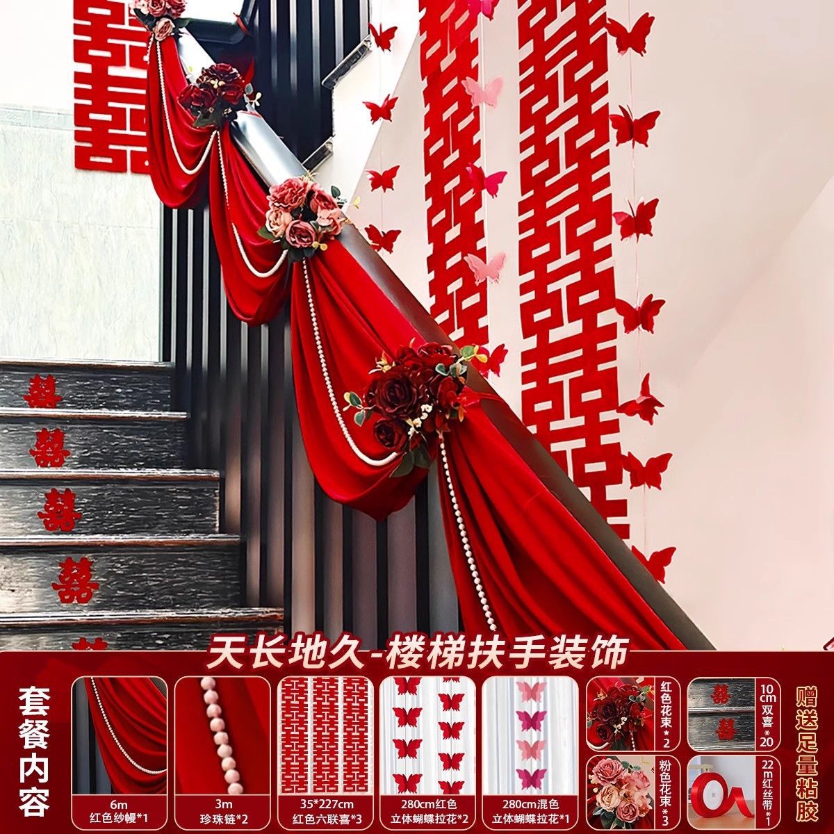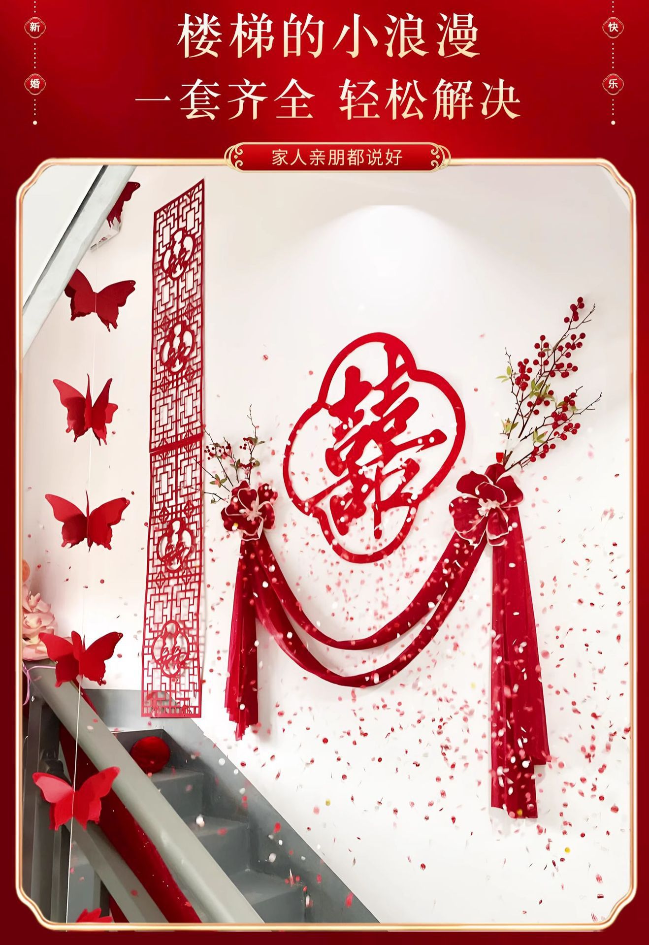 农村自建房结婚装饰楼梯墙面男女方婚房布置卧室床头套装高级感
