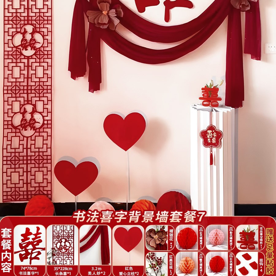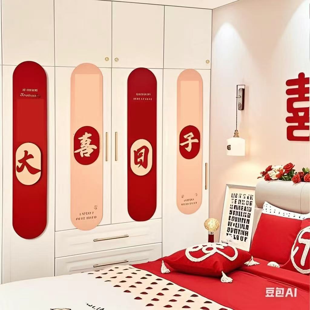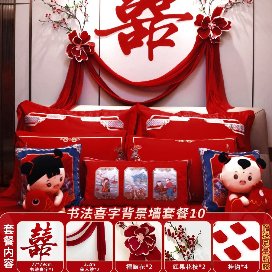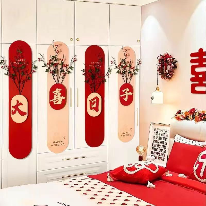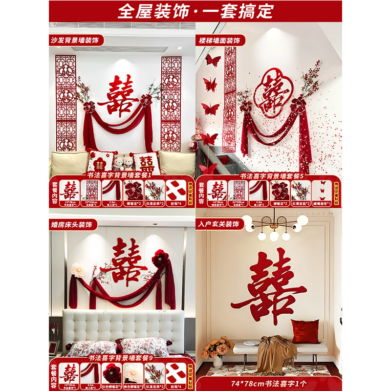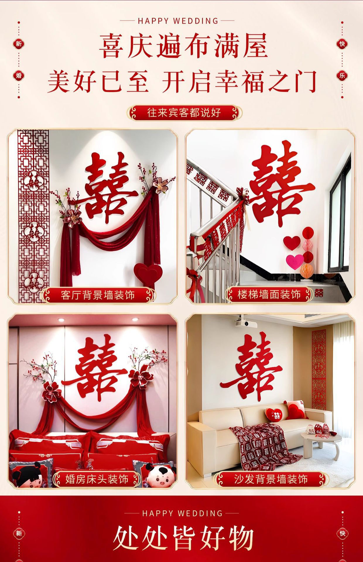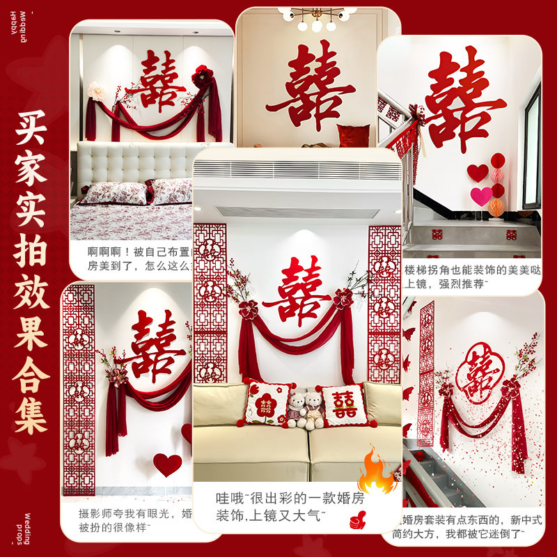 农村自建房结婚装饰楼梯墙面男女方婚房布置卧室床头套装高级感