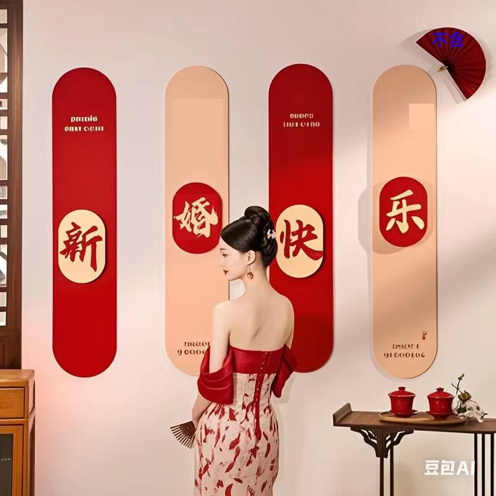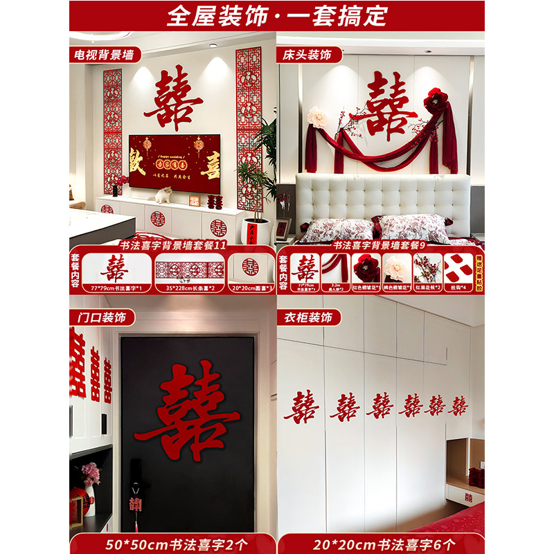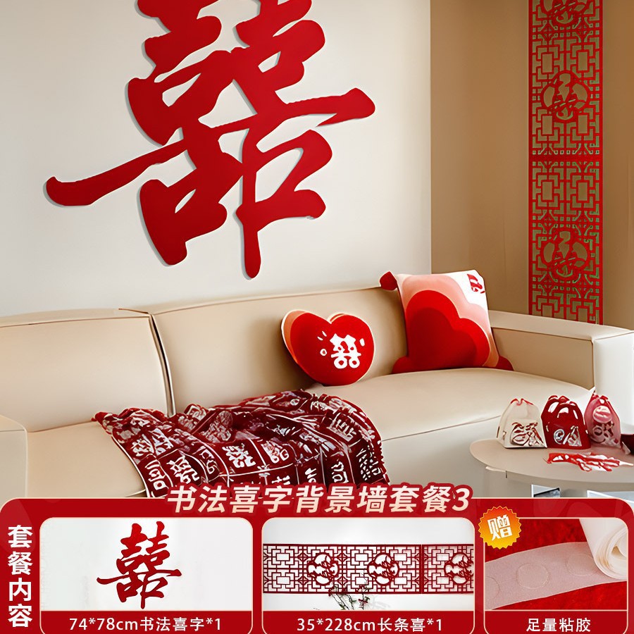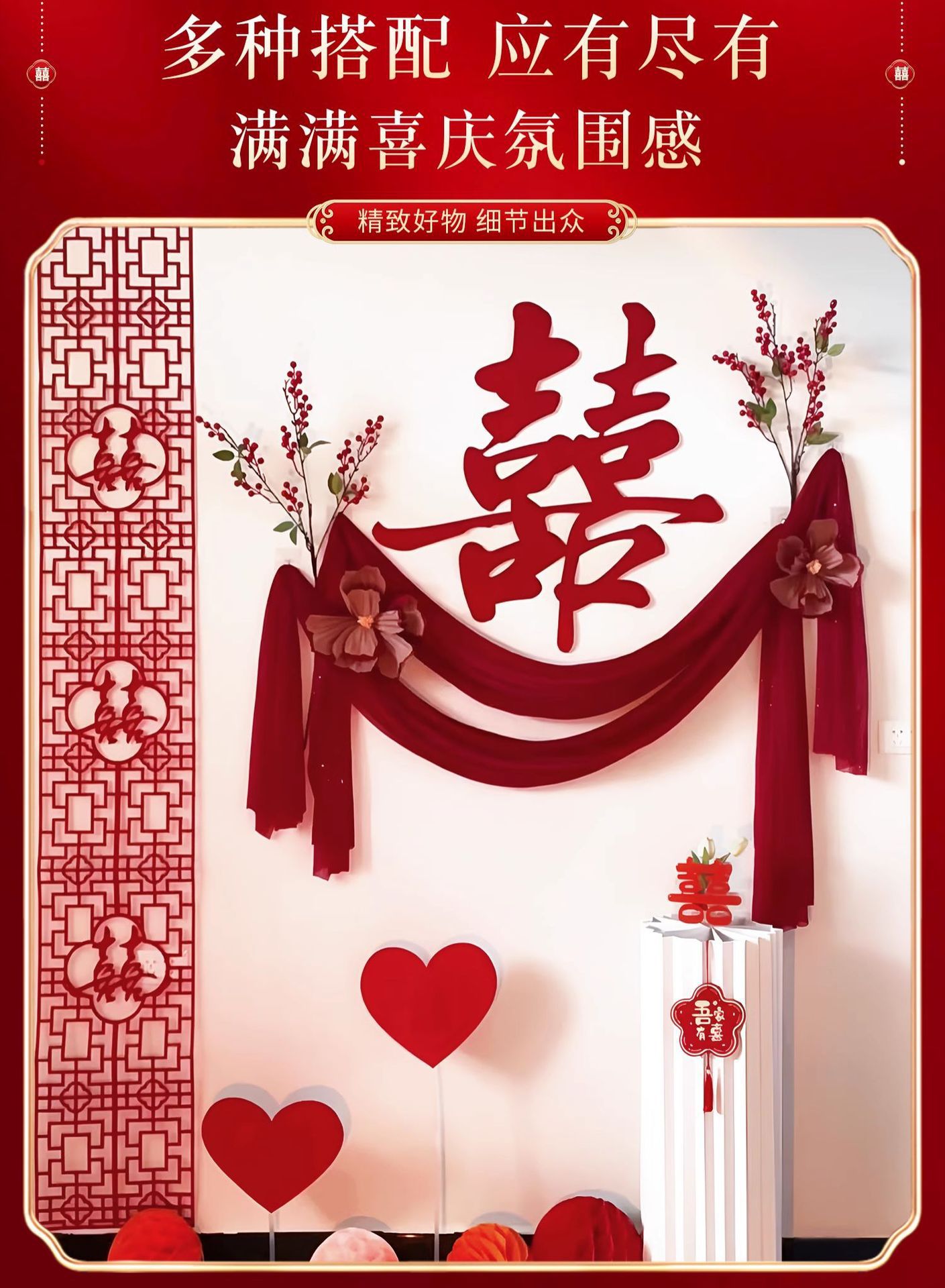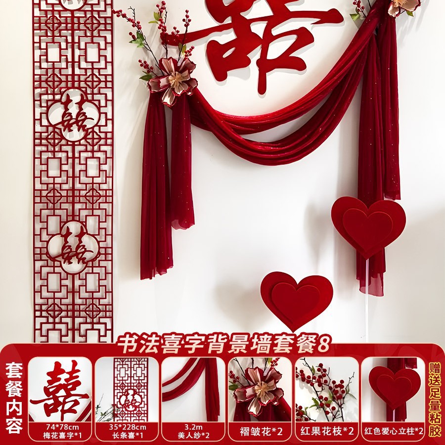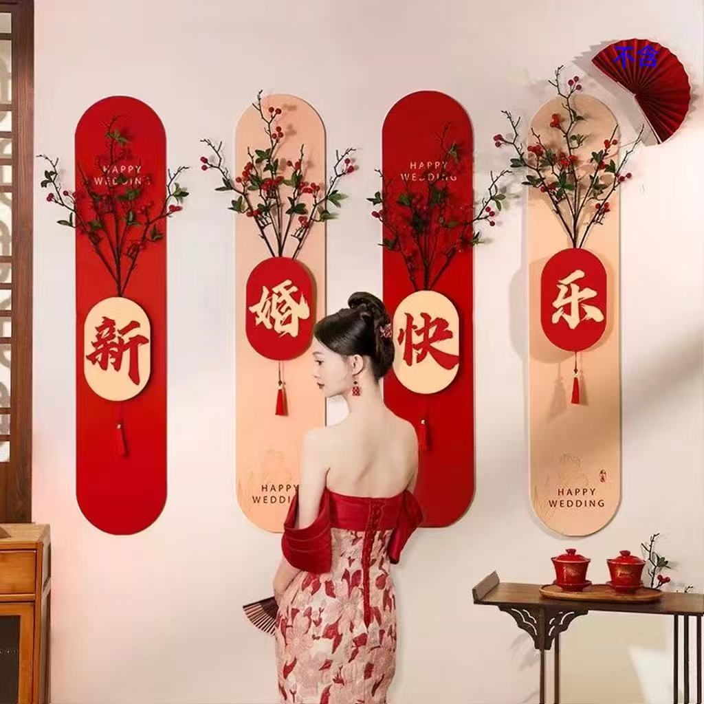 农村自建房结婚装饰楼梯墙面男女方婚房布置卧室床头套装高级感