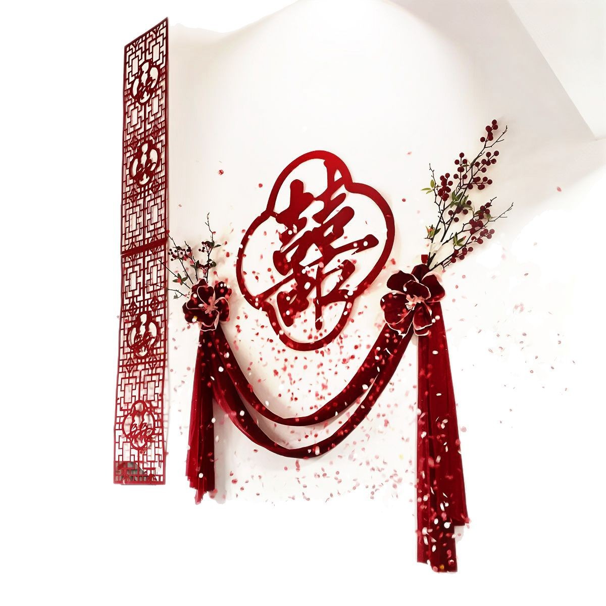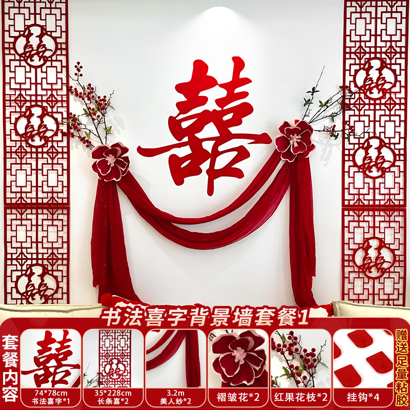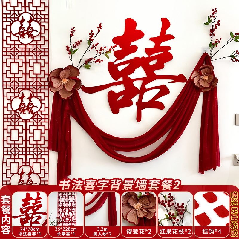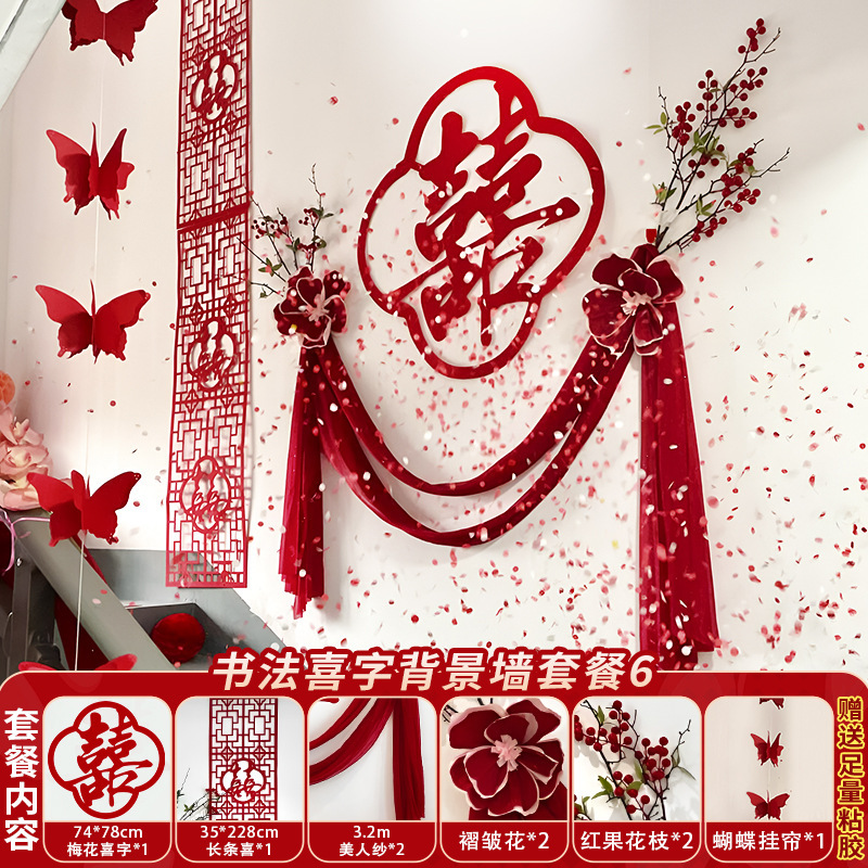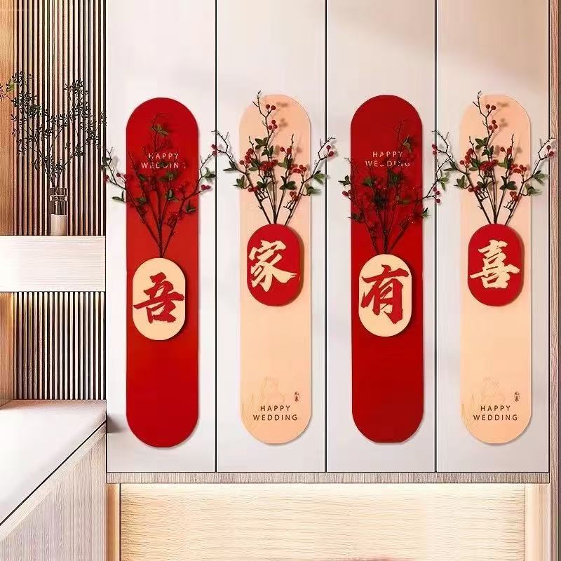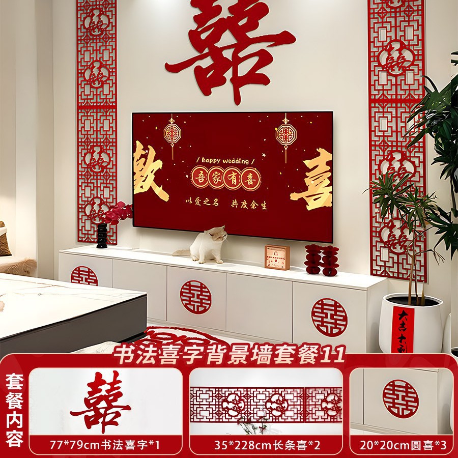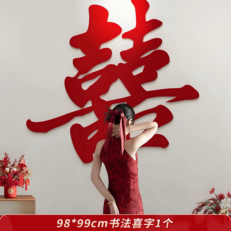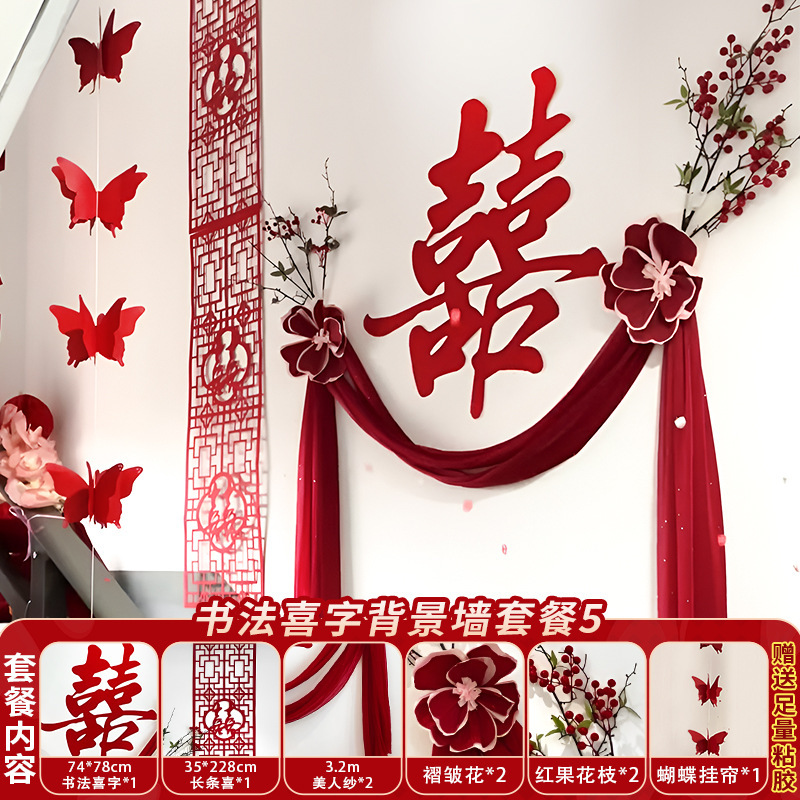 农村自建房结婚装饰楼梯墙面男女方婚房布置卧室床头套装高级感