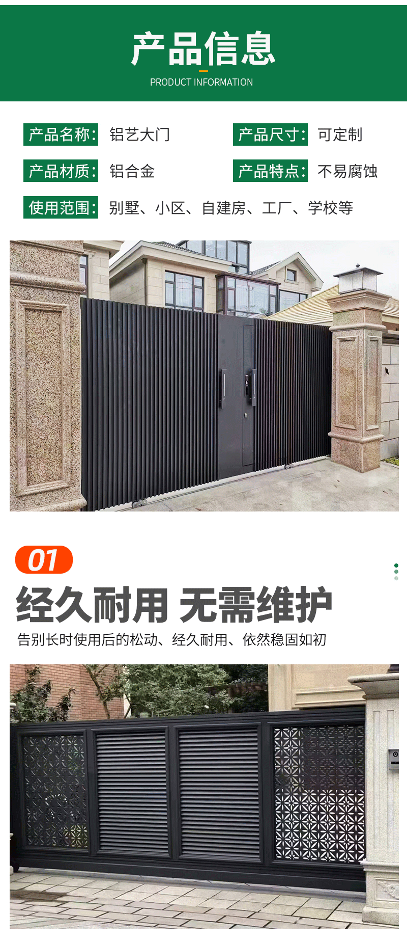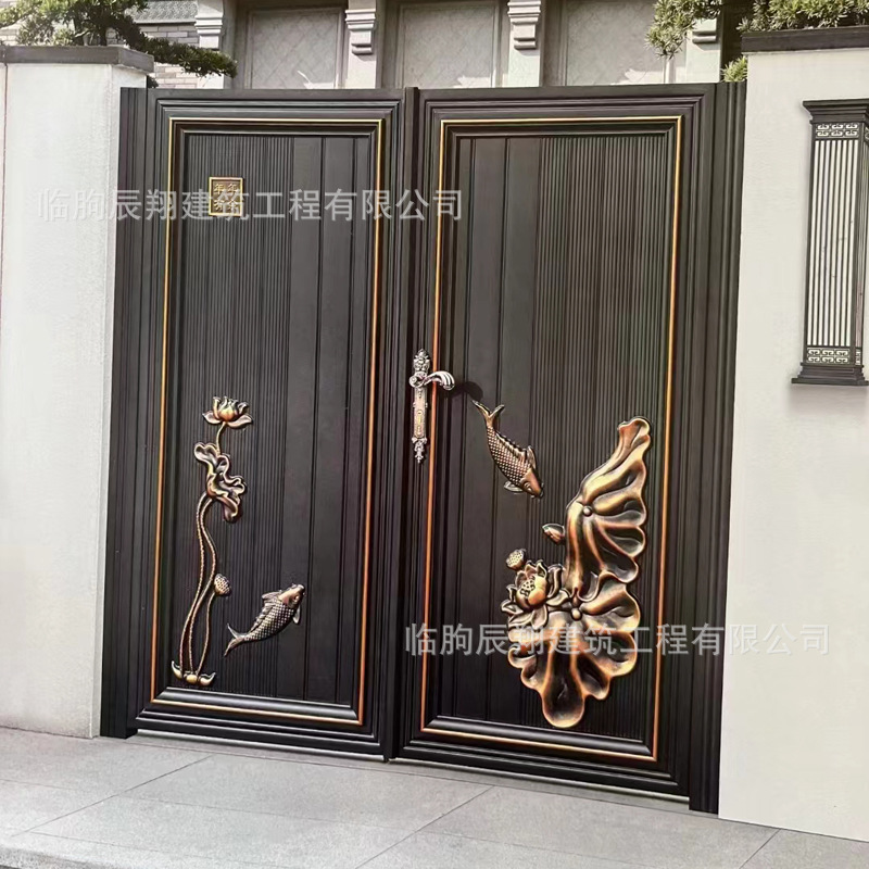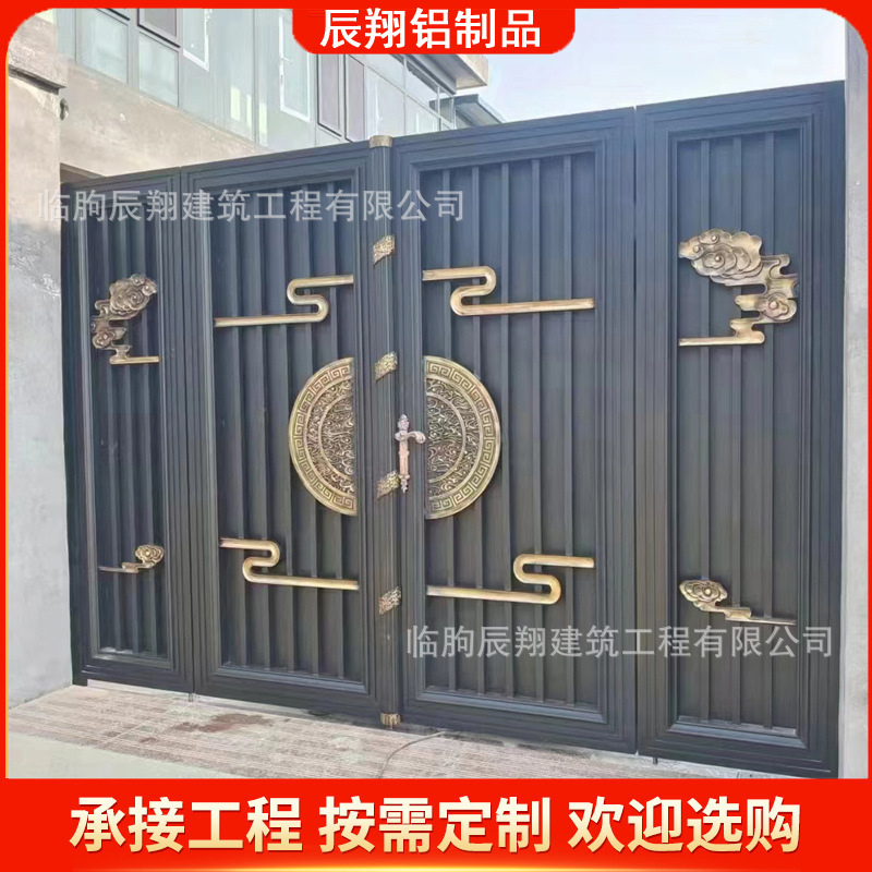铝艺大门乡村庭院双开门别墅电动庭院门中式铝合金农村自建房大门