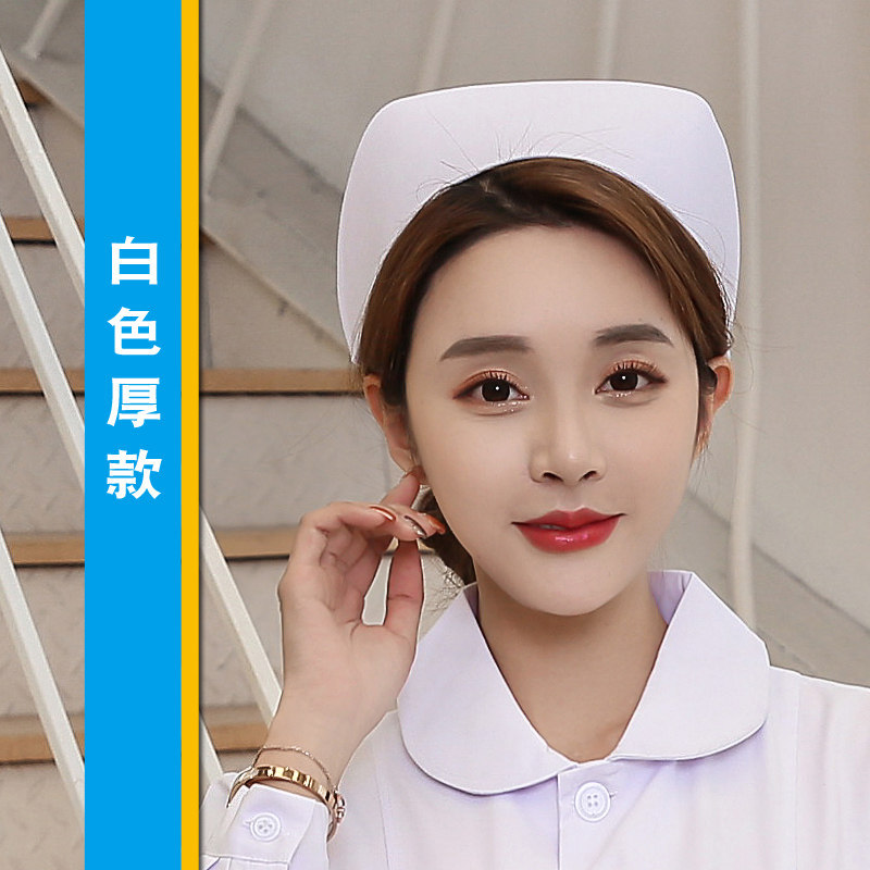厂家批发护士帽女白色燕尾帽粉色浅蓝色加厚医生帽实习护士长帽