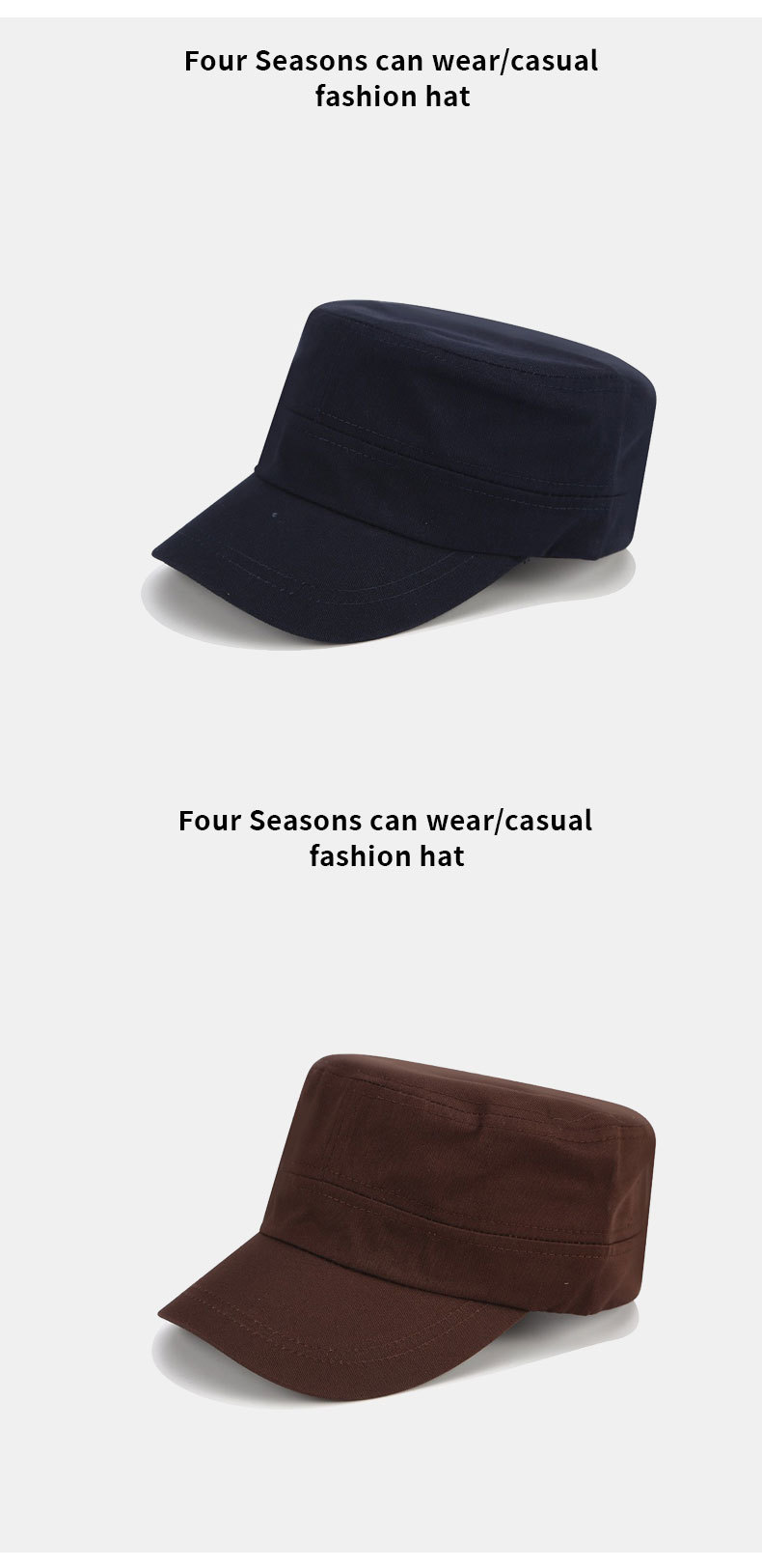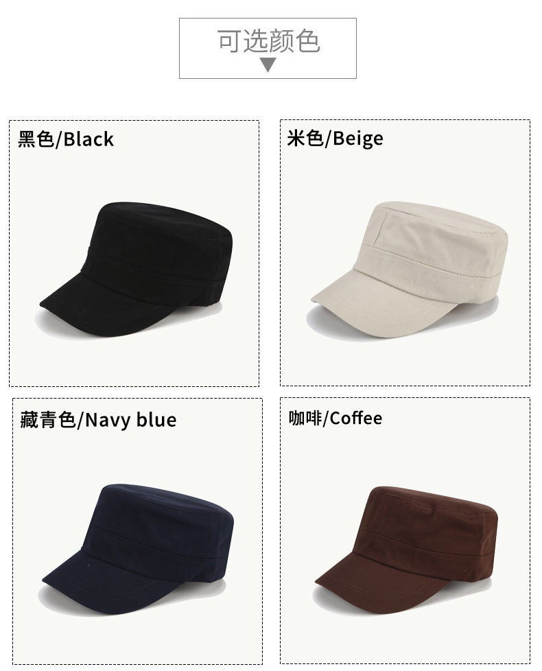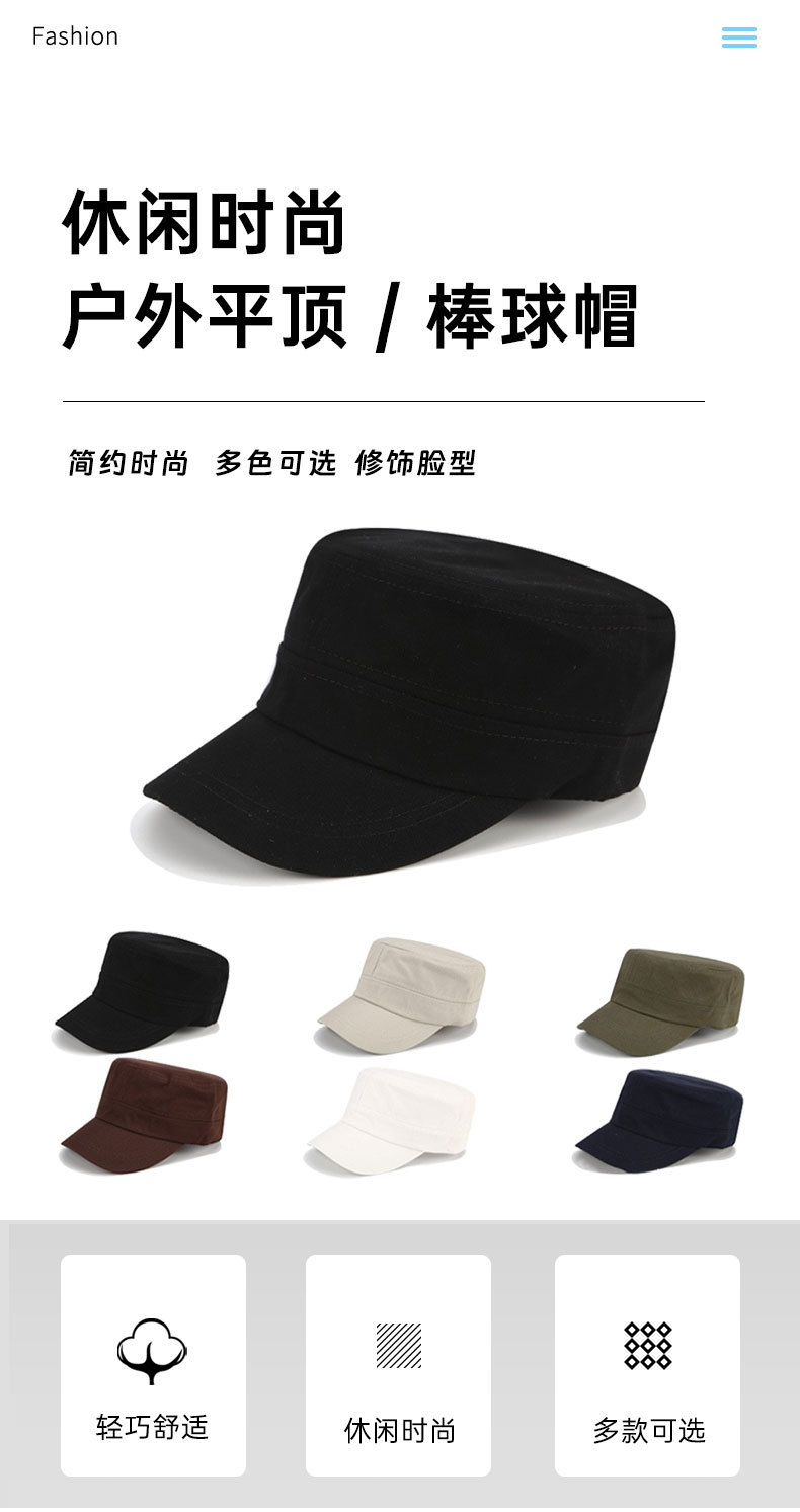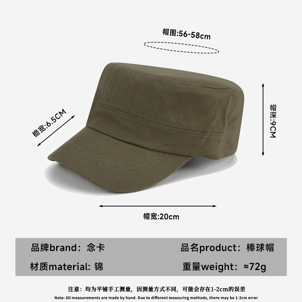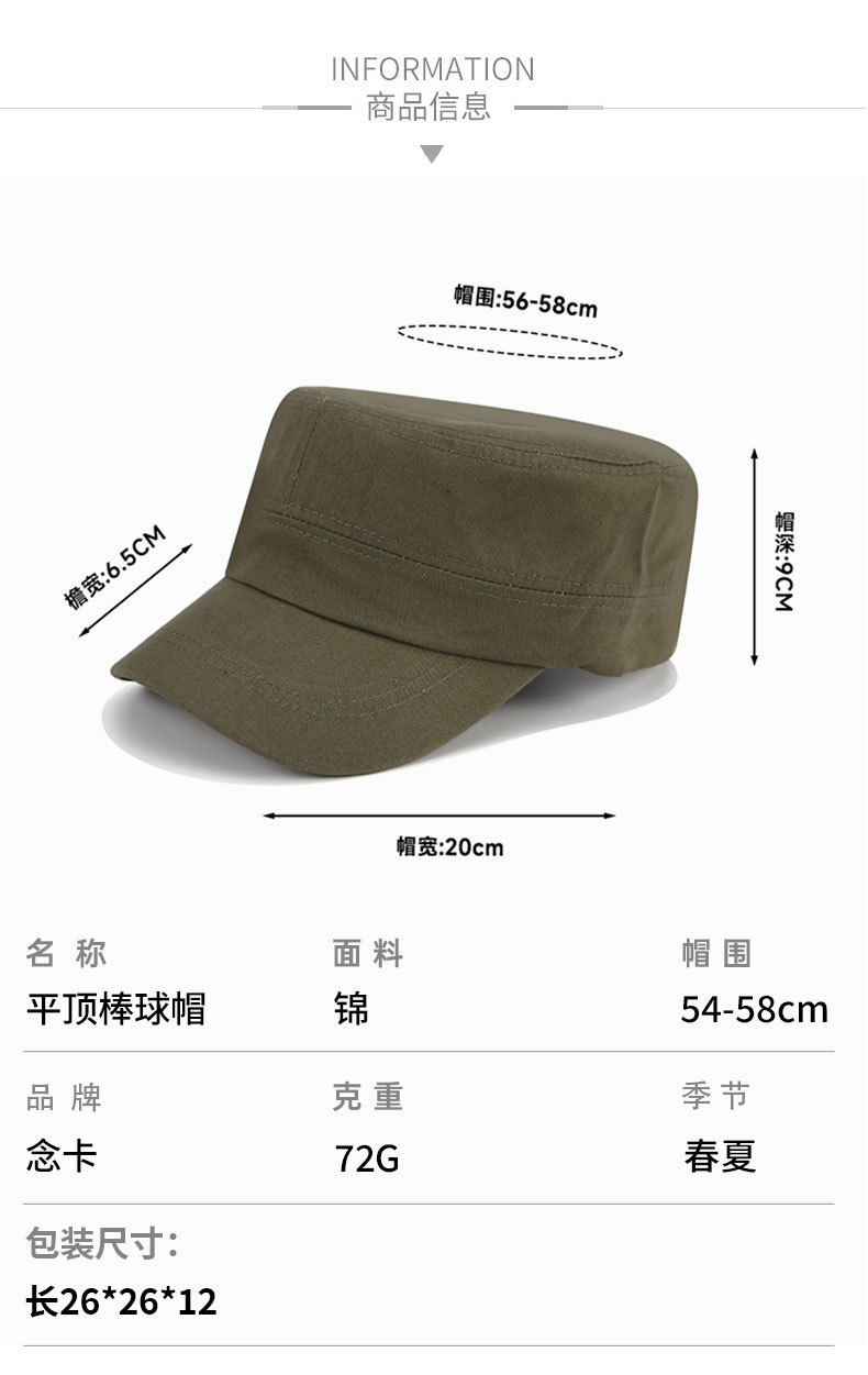 帽子女时尚夏天经典款平顶帽男士简约单色军帽子批发户外鸭舌帽男