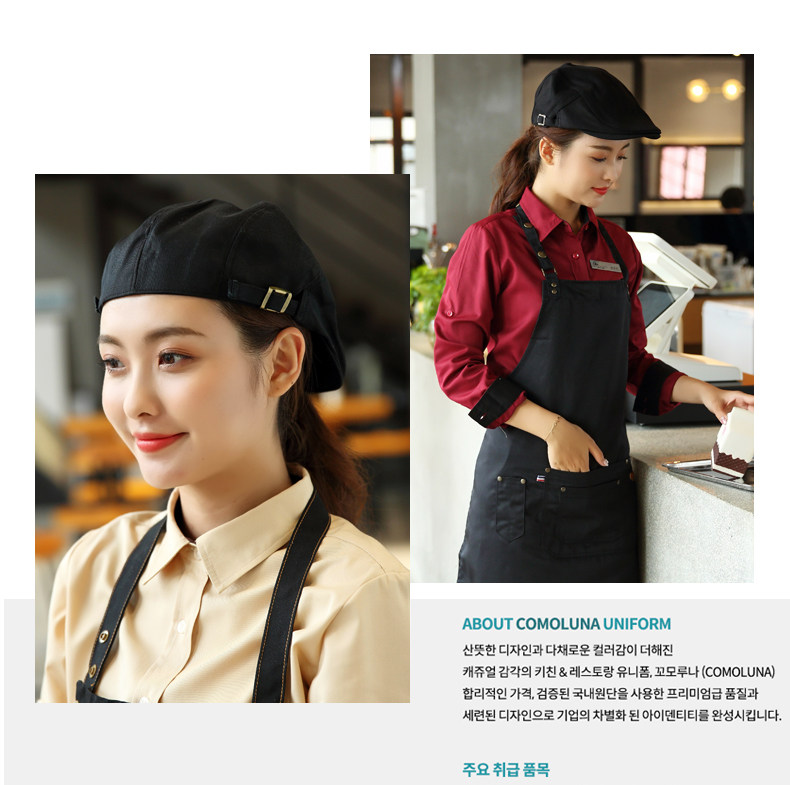 咖啡厅西餐服务员工作帽广告帽调节贝雷帽男女前进帽团队定制logo