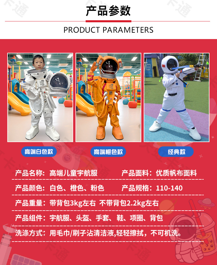仿真宇航员太空服航空服儿童宇航员卡通人偶服装舞台表演婚庆道具