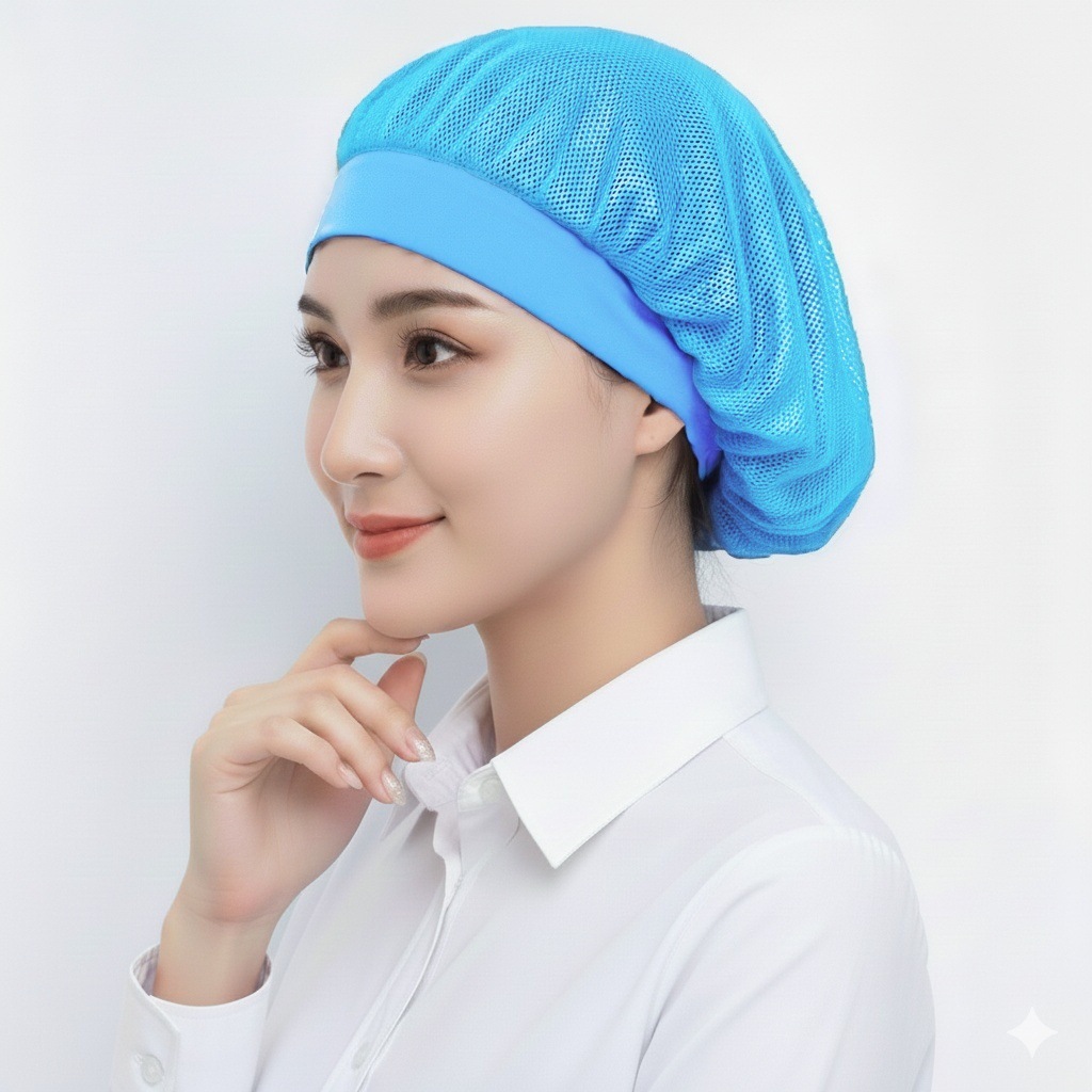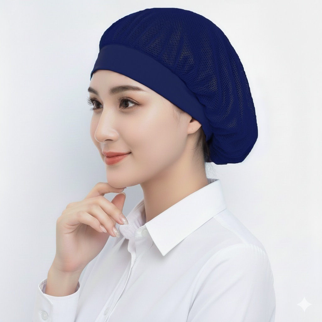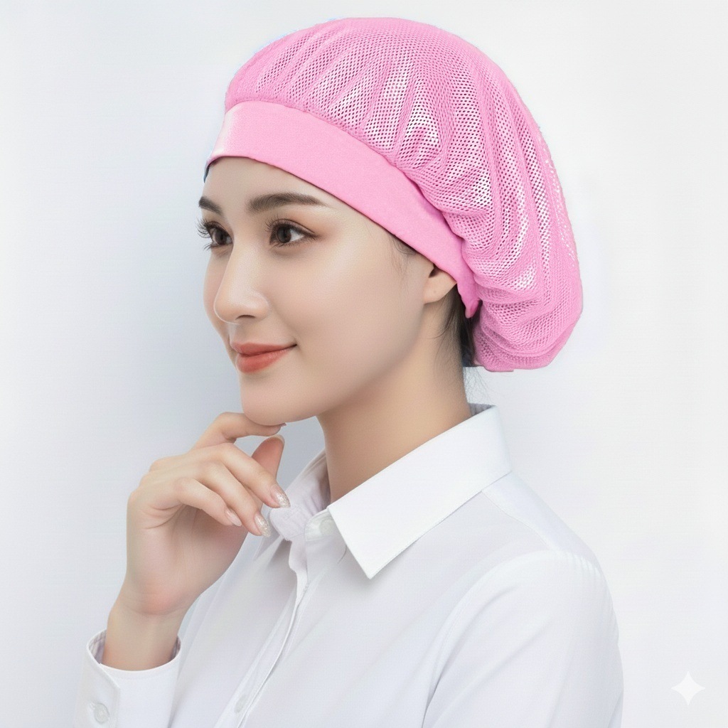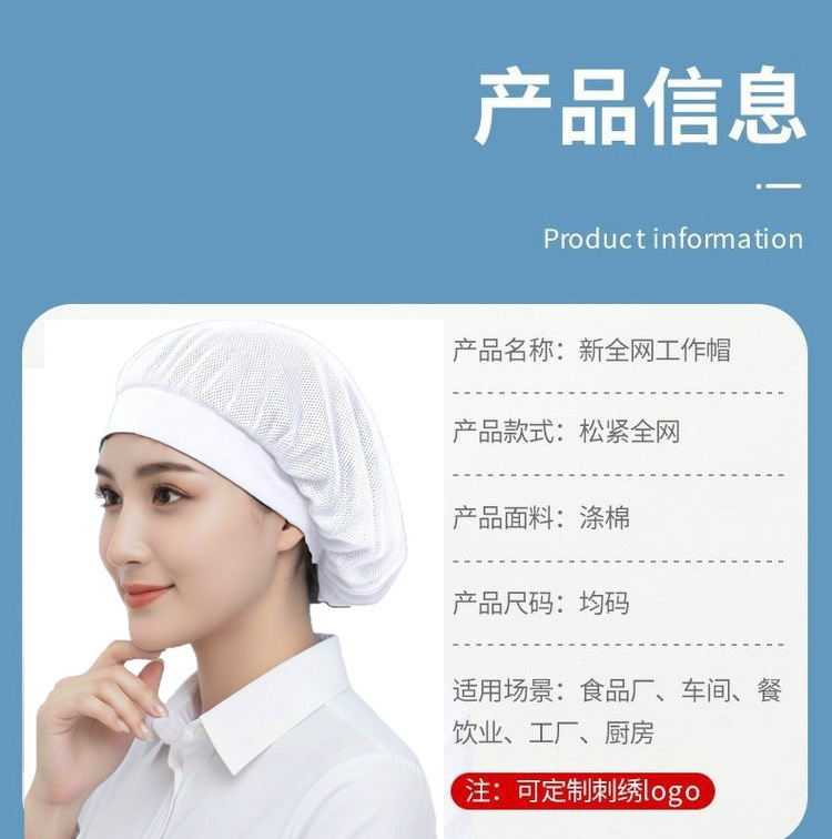 亚马逊跨境食堂餐厅透气网格防尘帽工厂车间工作帽子厨房防烟厨师