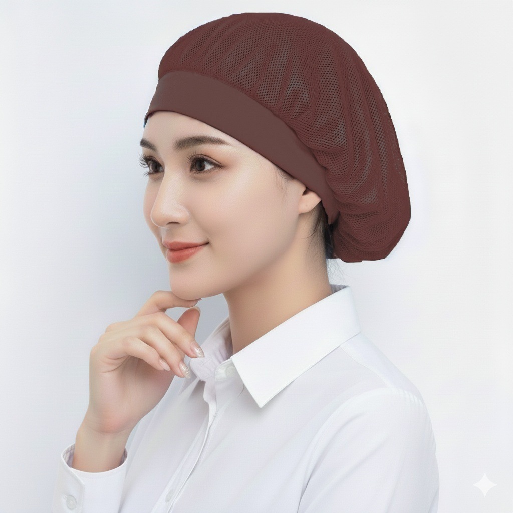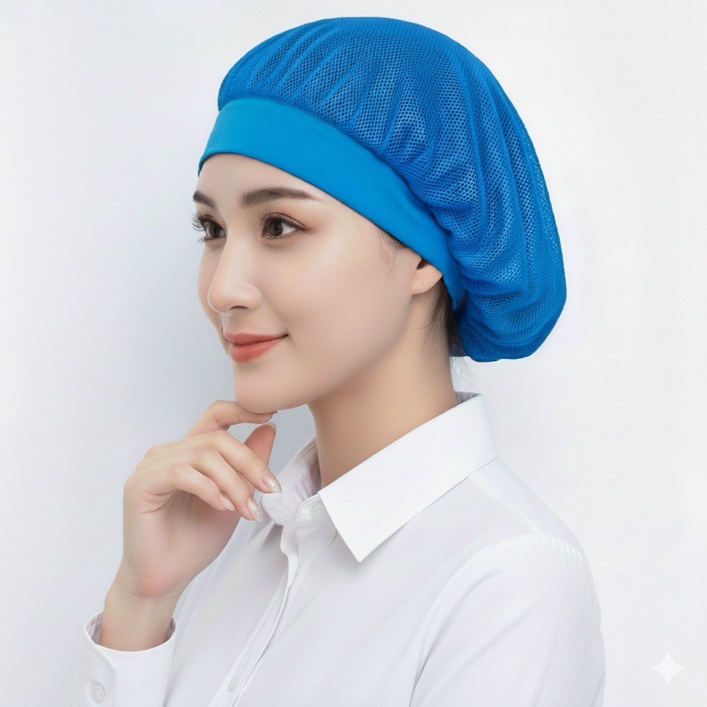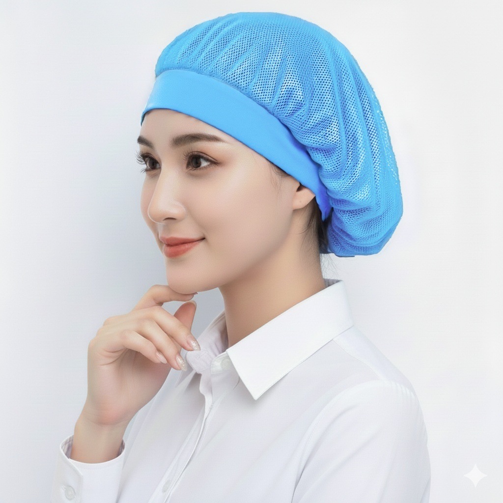 亚马逊跨境食堂餐厅透气网格防尘帽工厂车间工作帽子厨房防烟厨师