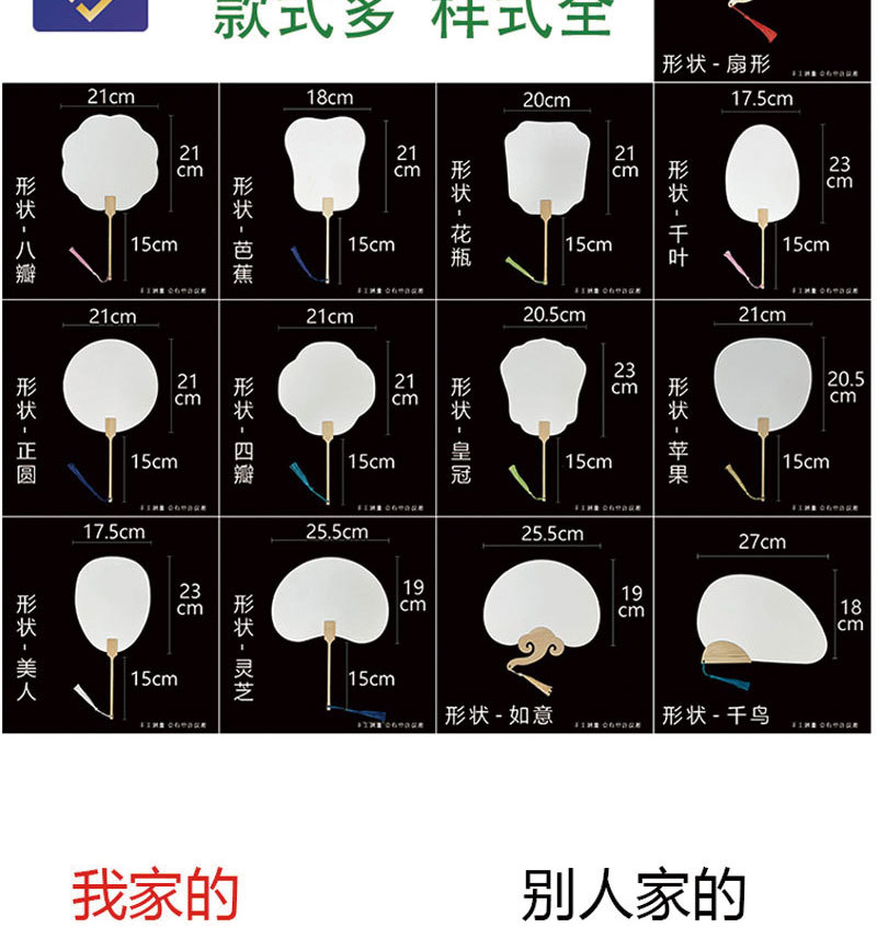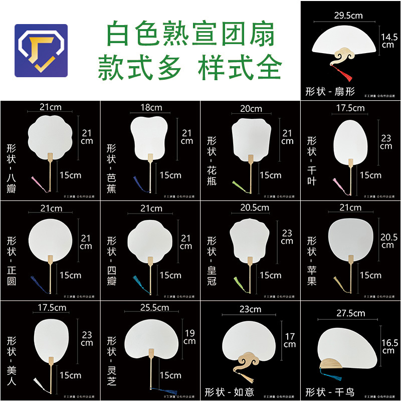 熟宣绘画空白扇子漆扇diy 手工古风文字书画纸空白团扇双面扇子