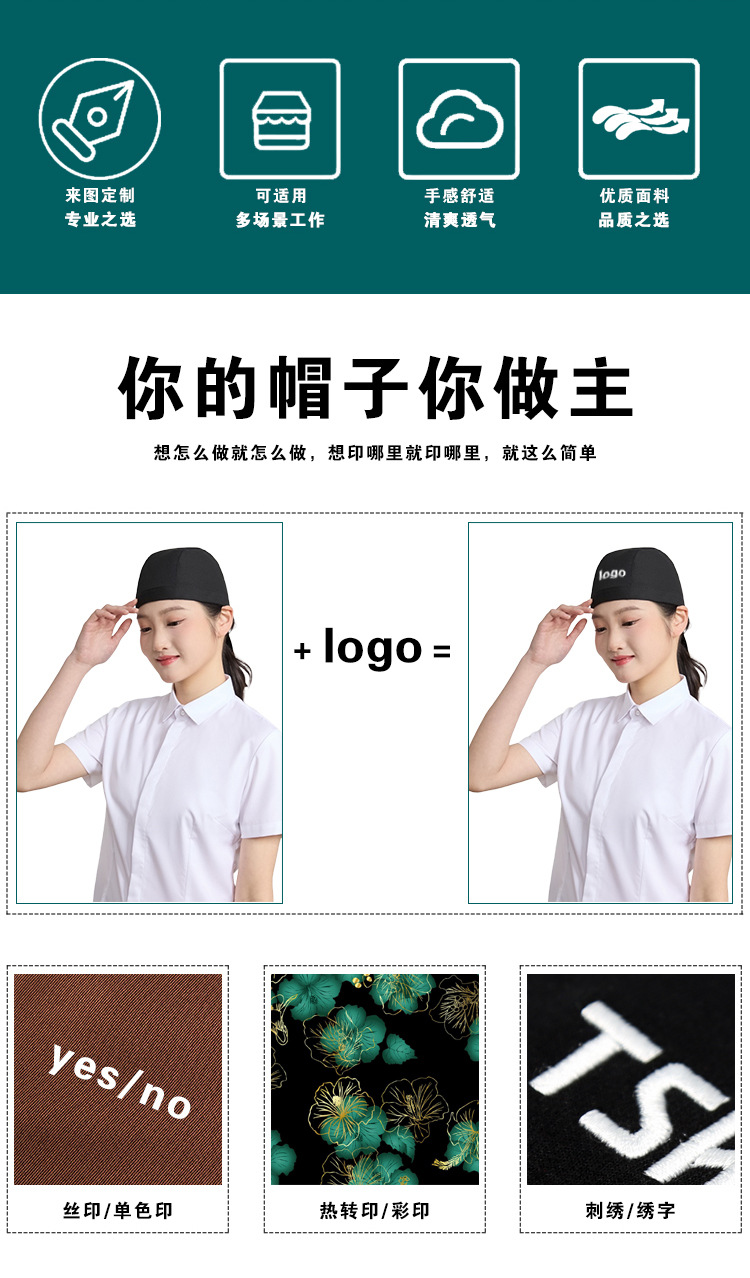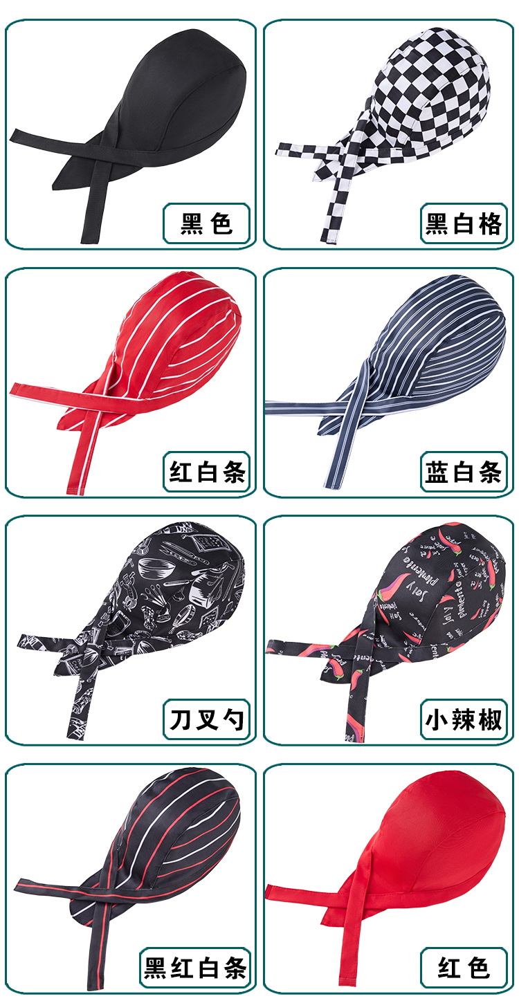 海盗帽厨师工作帽酒店餐厅包头帽厨房工作帽男女服务员帽子厨师帽