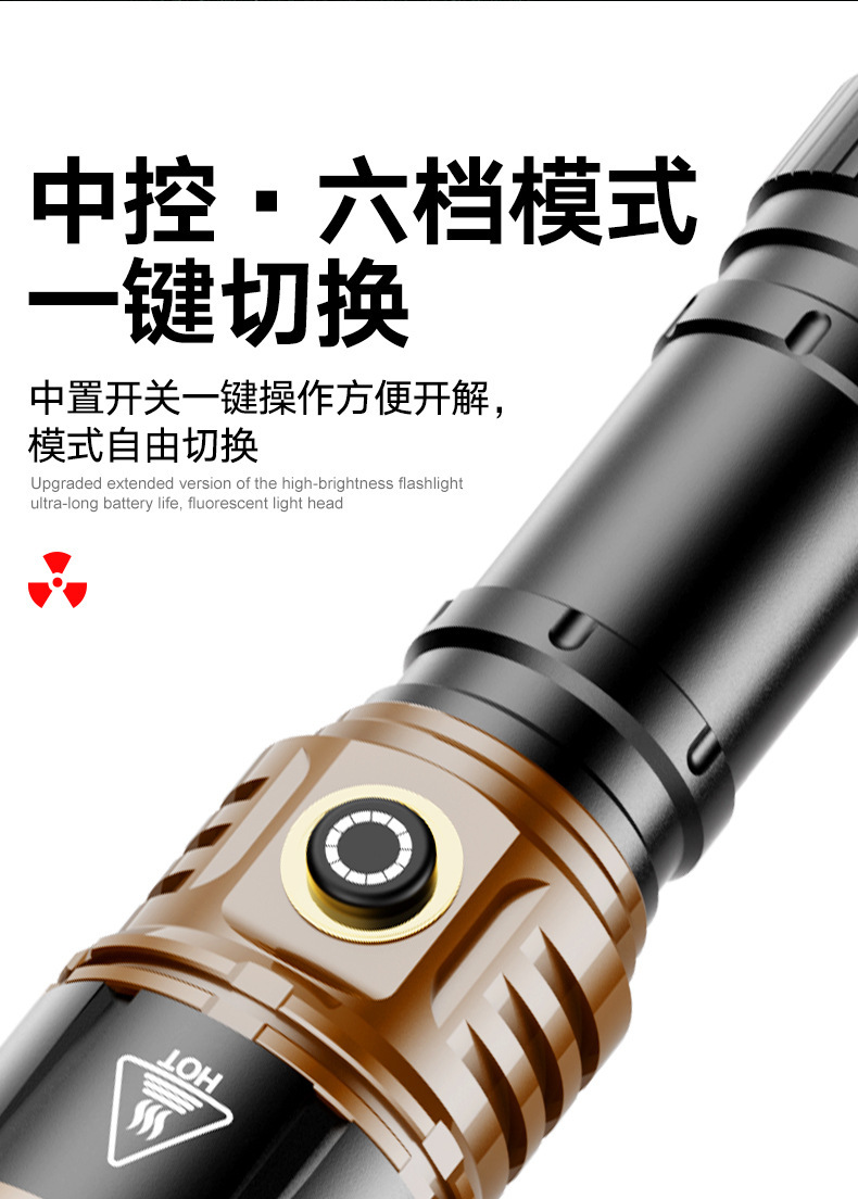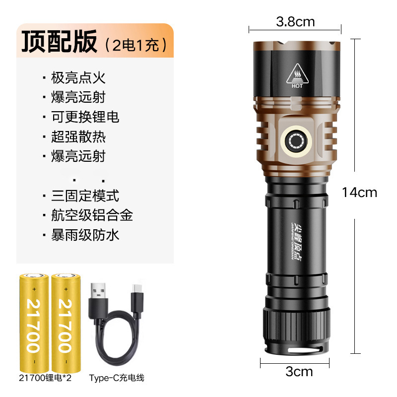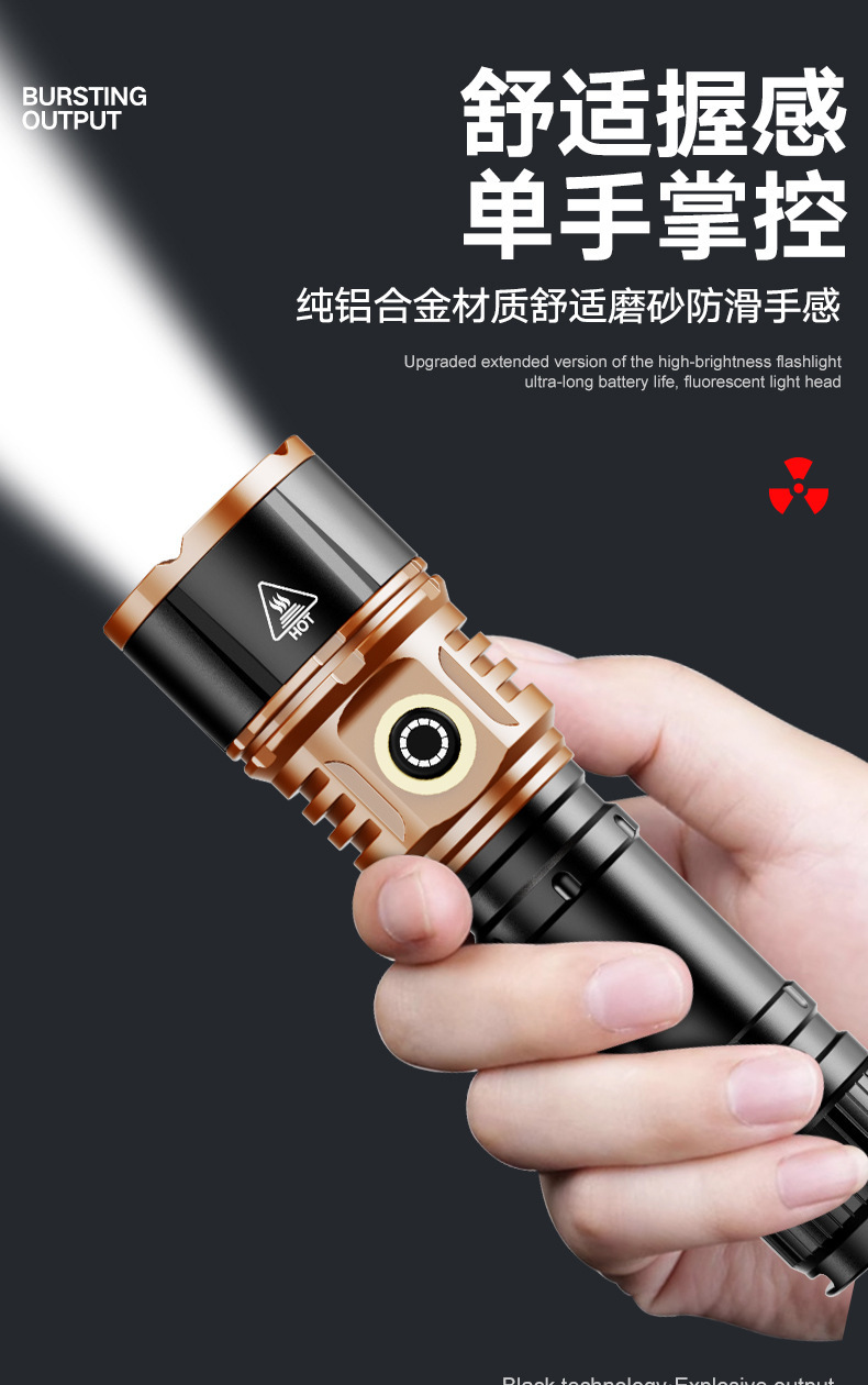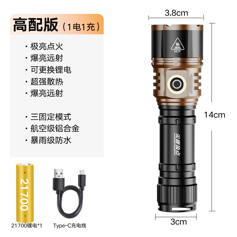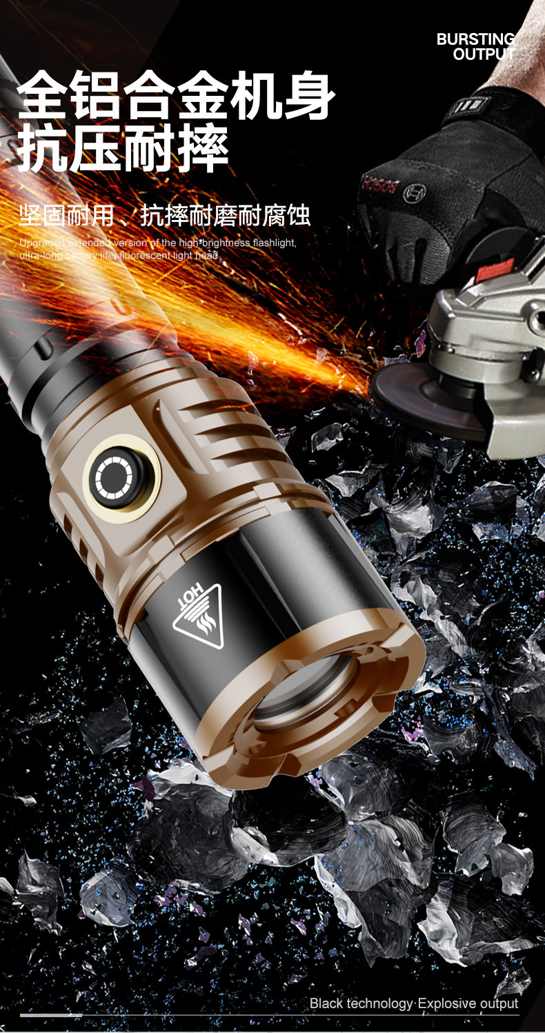 TEMU美区爆款点火V12金色充电LED强光长续航户外防水铝合金手电筒