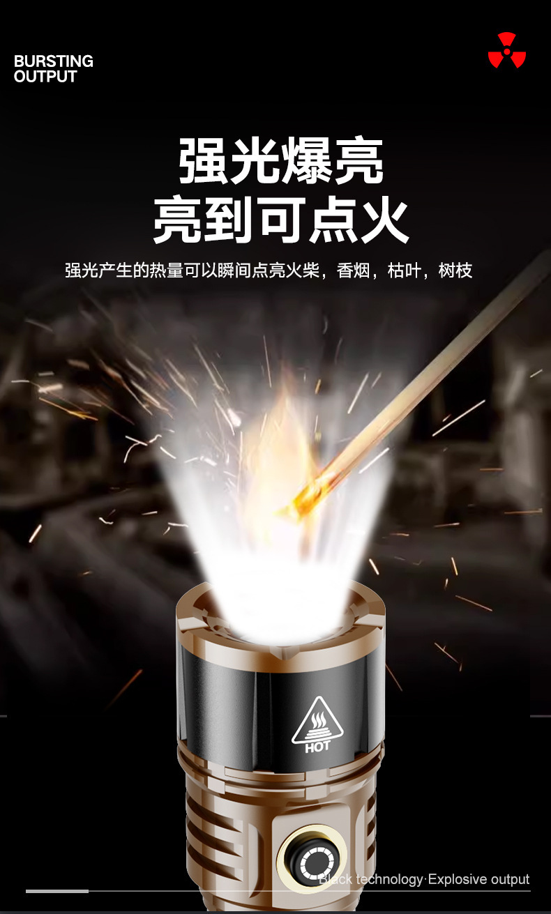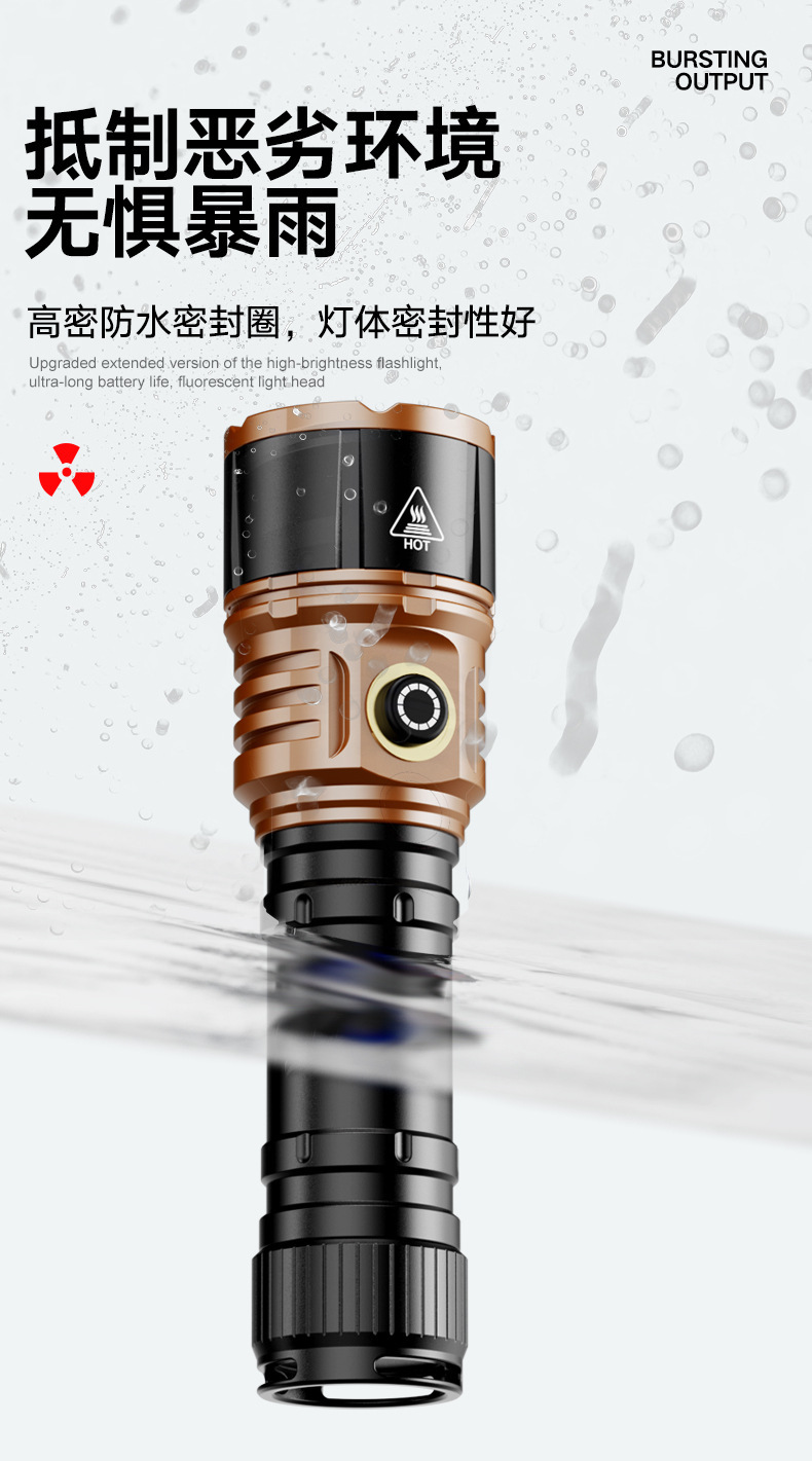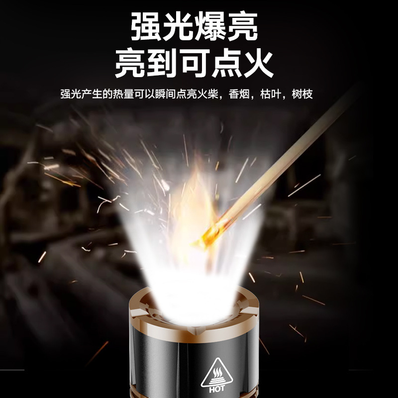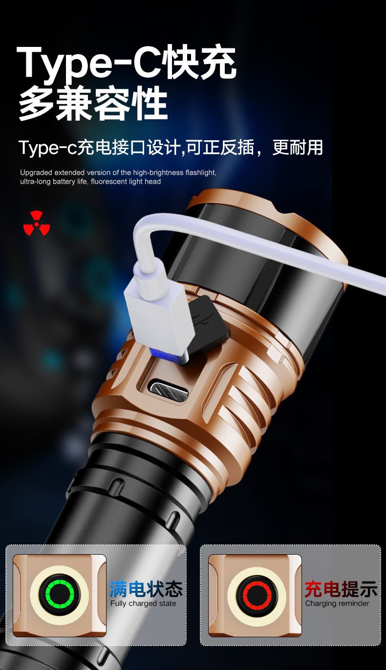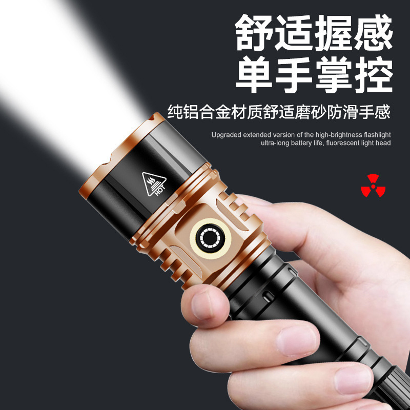 TEMU美区爆款点火V12金色充电LED强光长续航户外防水铝合金手电筒