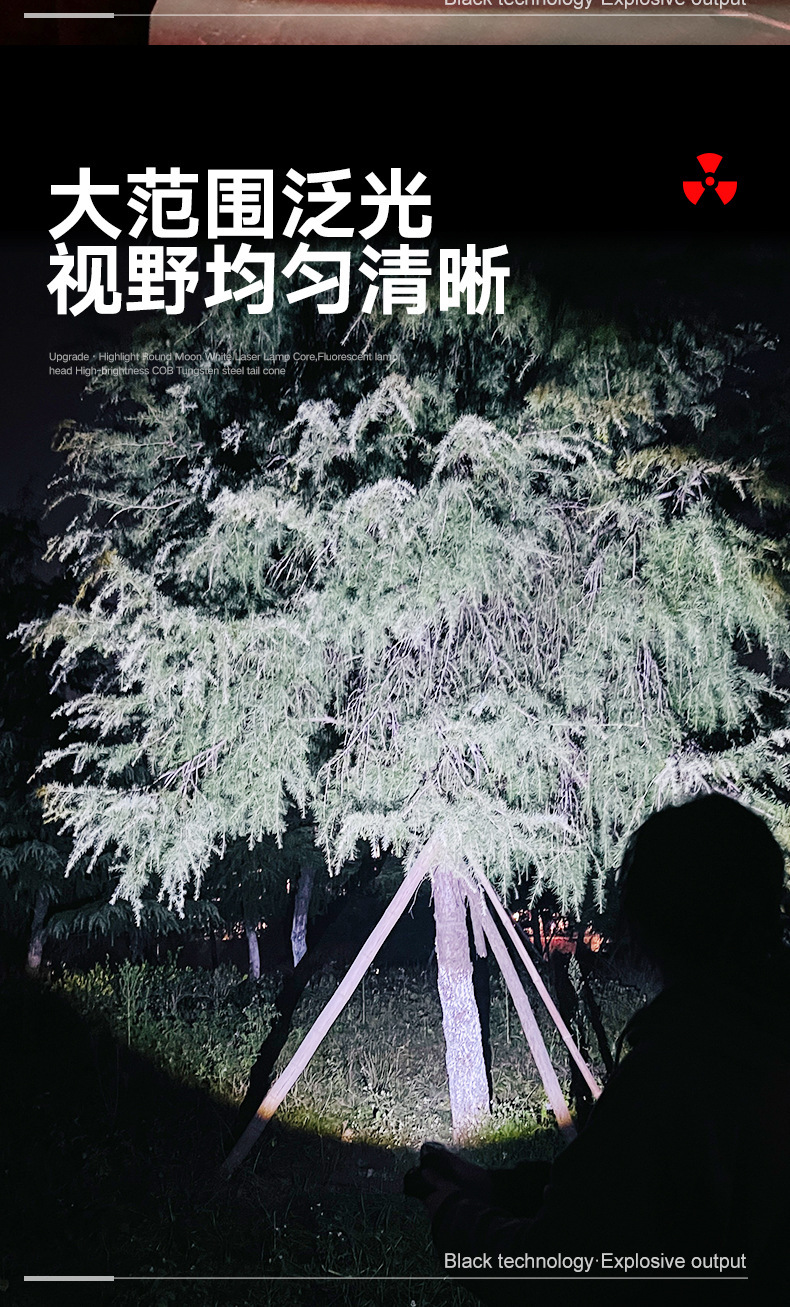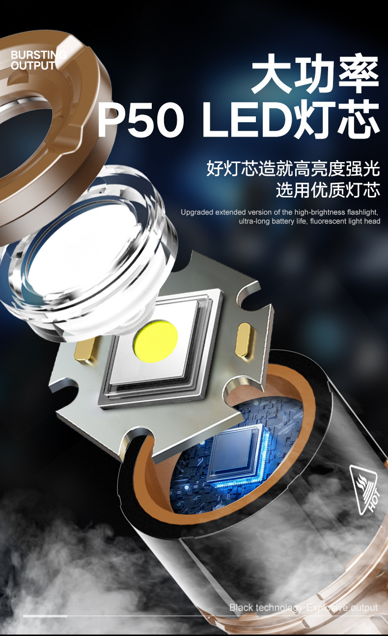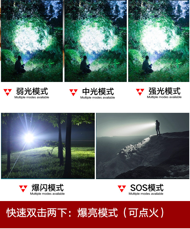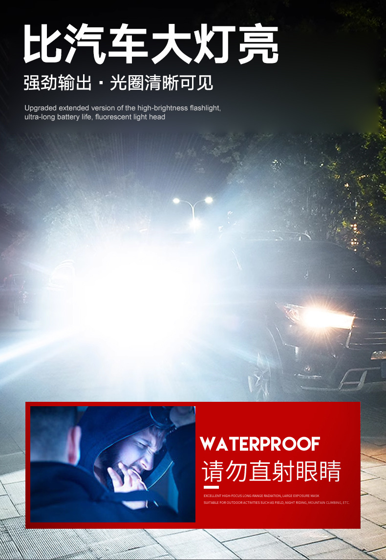TEMU美区爆款点火V12金色充电LED强光长续航户外防水铝合金手电筒