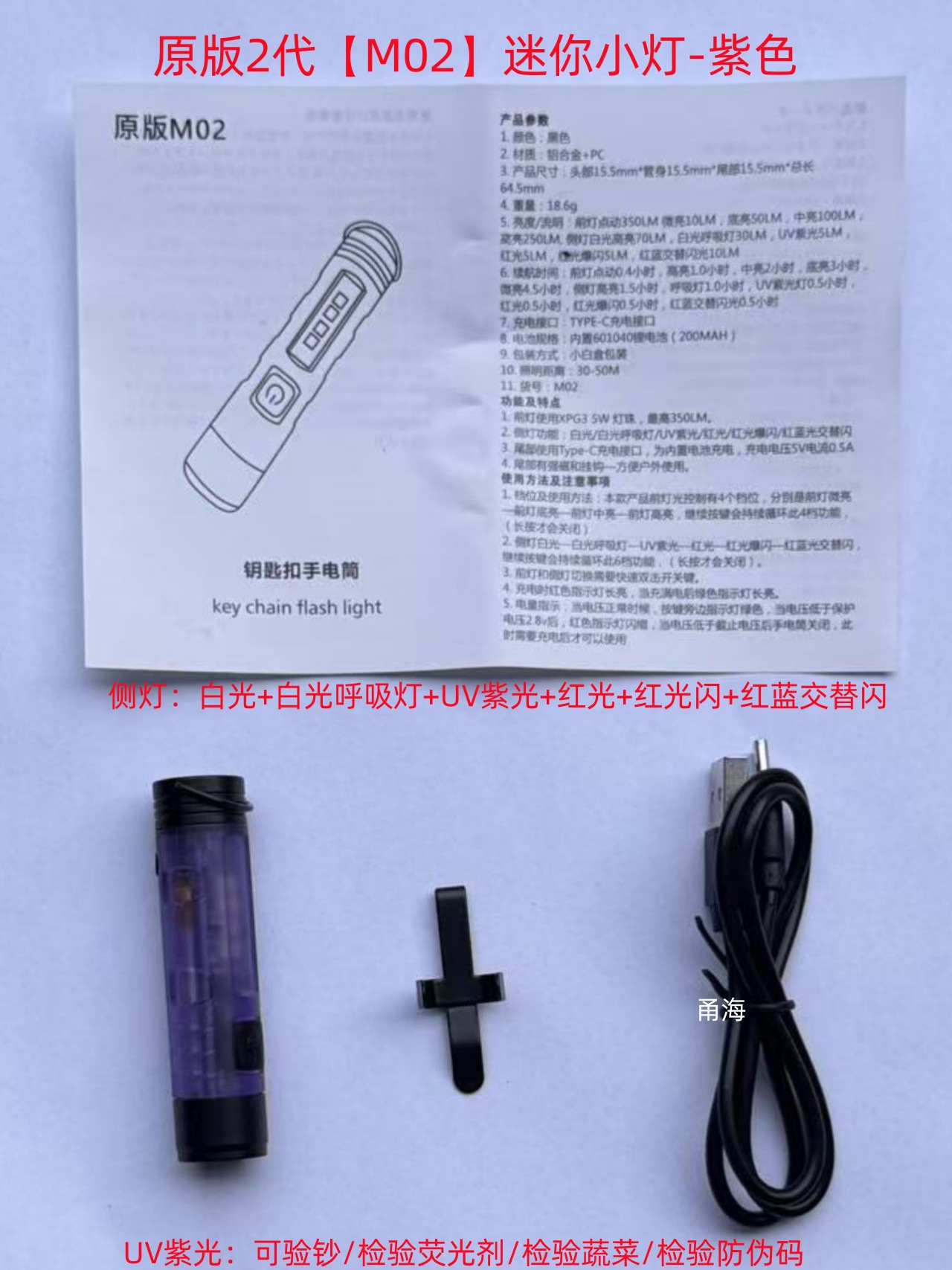 | 原版M02【2代】帝王绿【UV紫光验钞验蔬菜+红蓝警示灯】 | USD $3.07 | 985 piece available |