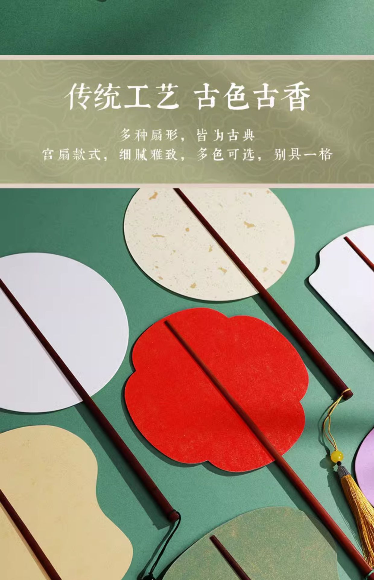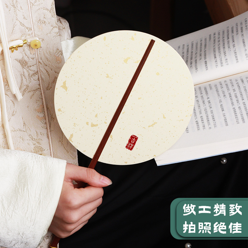空白古风扇子手写书法新中式国画国风宫廷团扇双面鎏金礼品扇批发