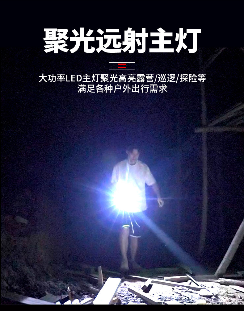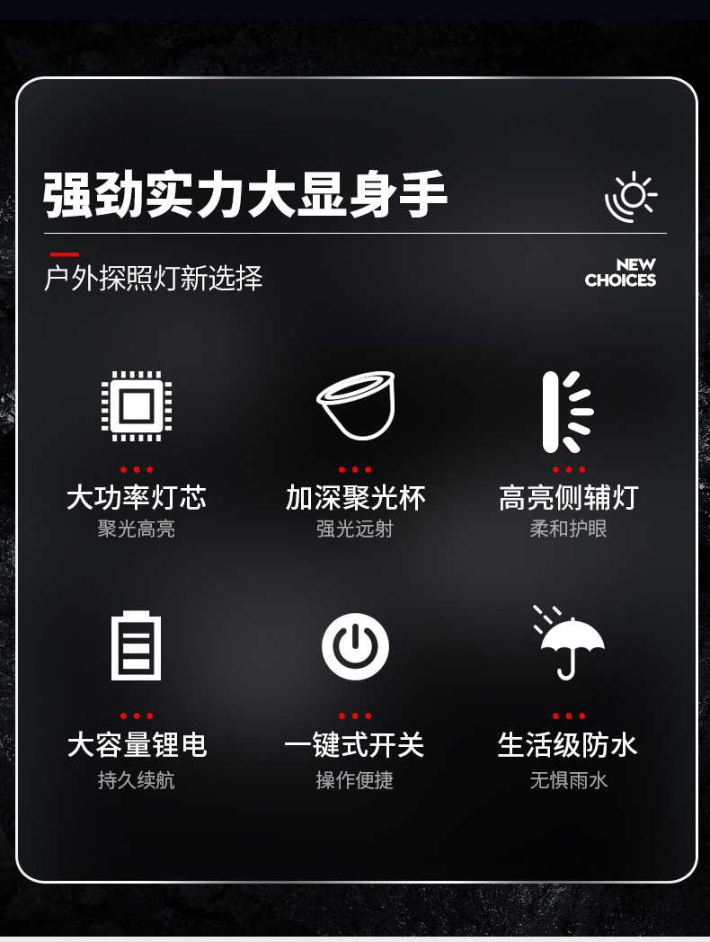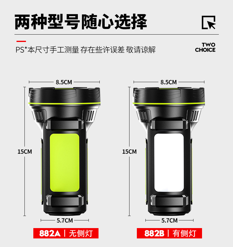 882B户外强光探照灯带侧灯LED大功率长续航家用手握式手电筒定制