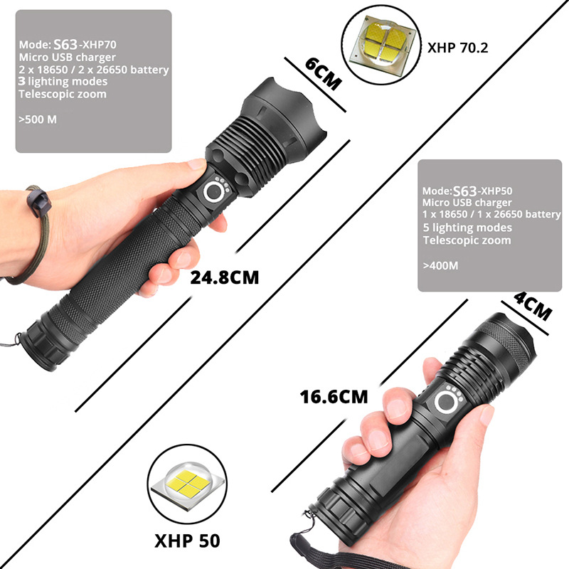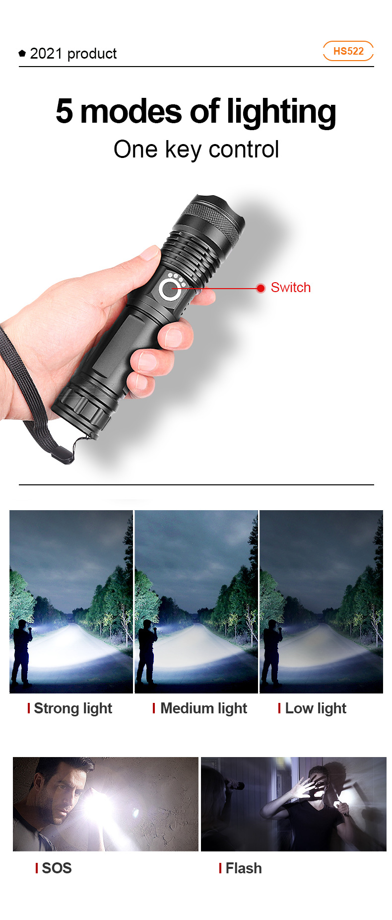 跨境强光手电筒P50大功率户外远射灯多功能超长续航便携应急手电