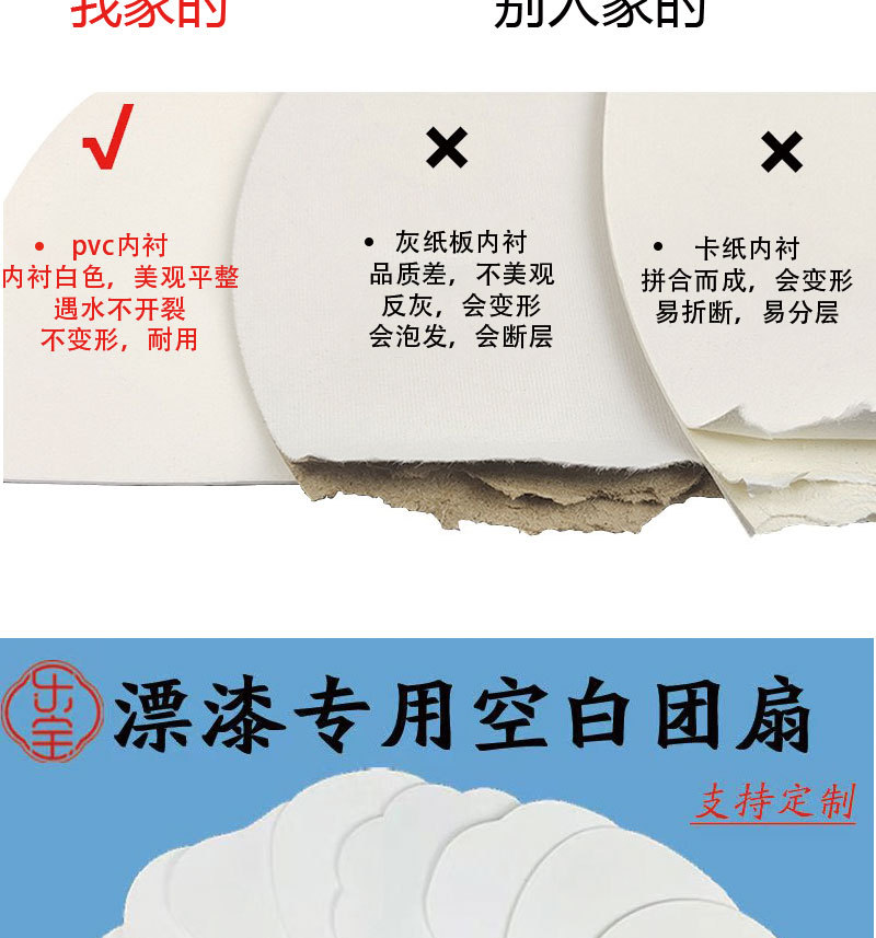 漆扇专用扇子diy漂漆材料包古风文字文创团扇带字团扇空白大漆扇