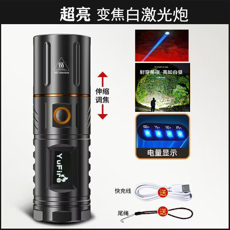 T40强光手电筒充电远射户外长续航5000超亮白激光LED灯大功率批发