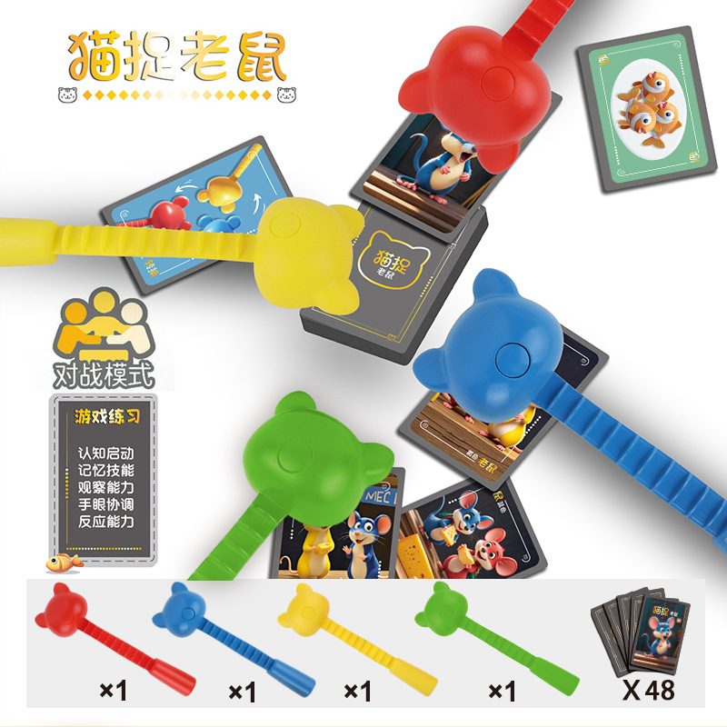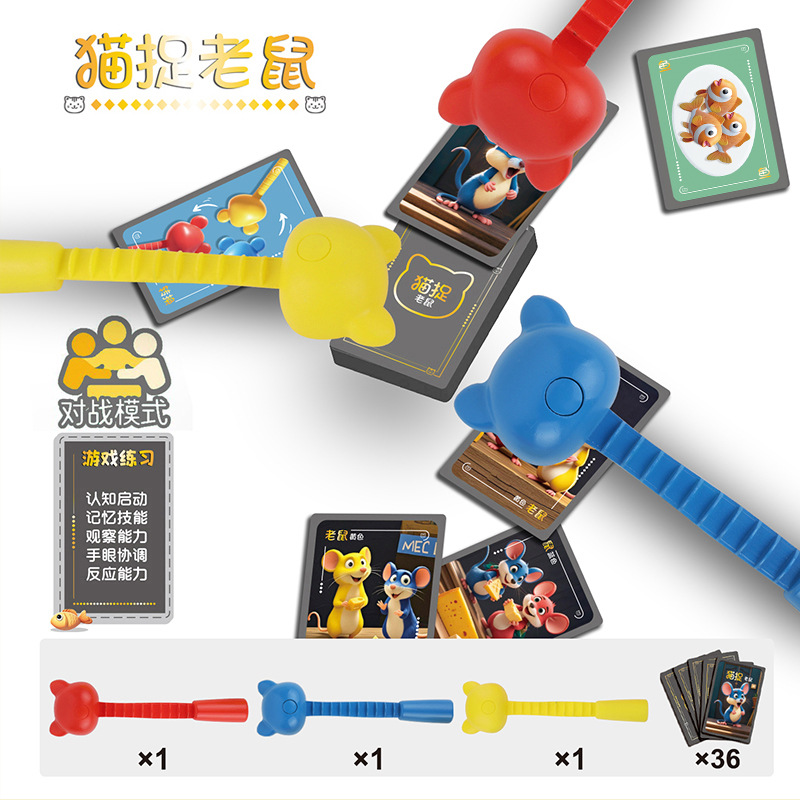 猫抓老鼠儿童三人对战早教反应力比拼游戏专注力训练益智桌游亲子