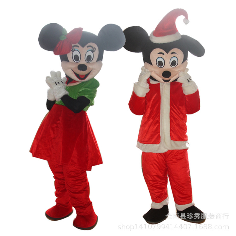 圣诞米奇米妮行走卡通人偶服装可爱表演道具动漫人物玩偶服米老鼠