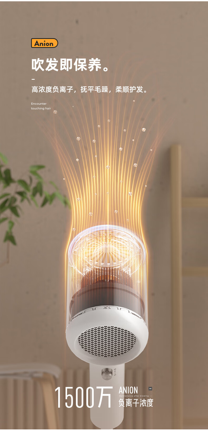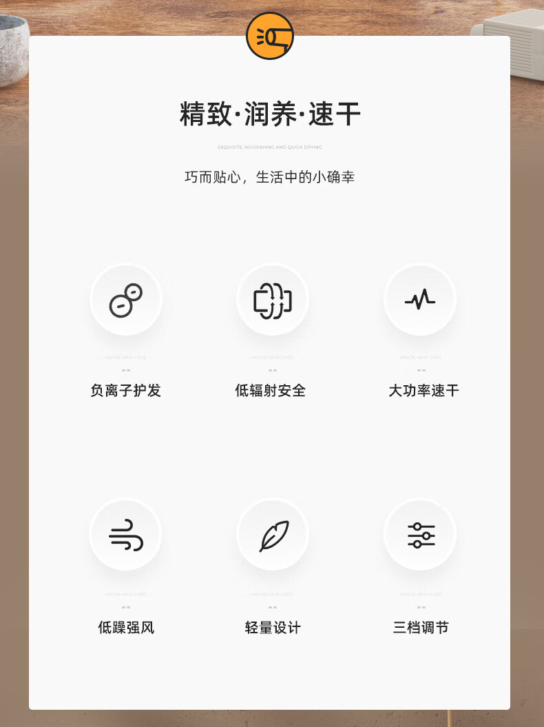 电吹风负离子家用宿舍不伤发吹风机大风力便携速干降噪护发冷热风
