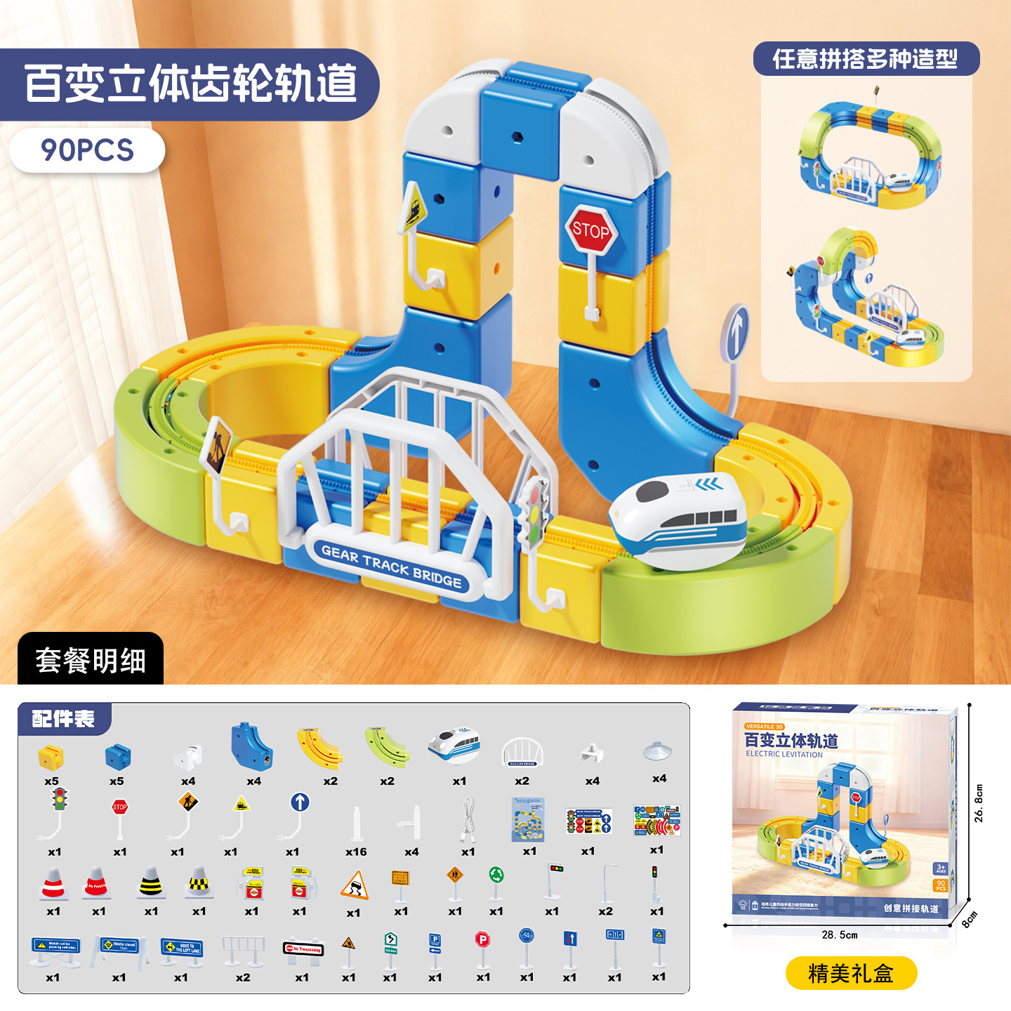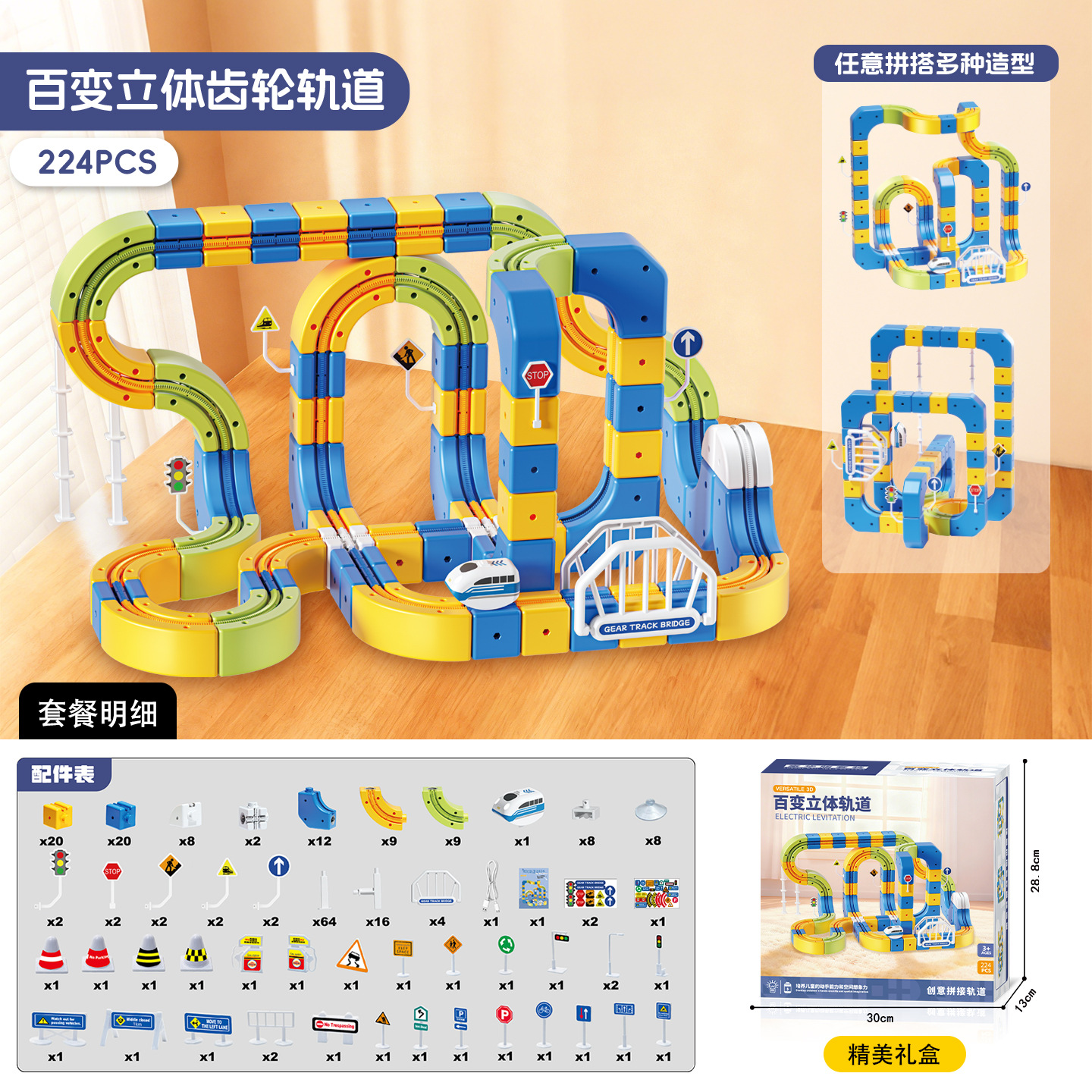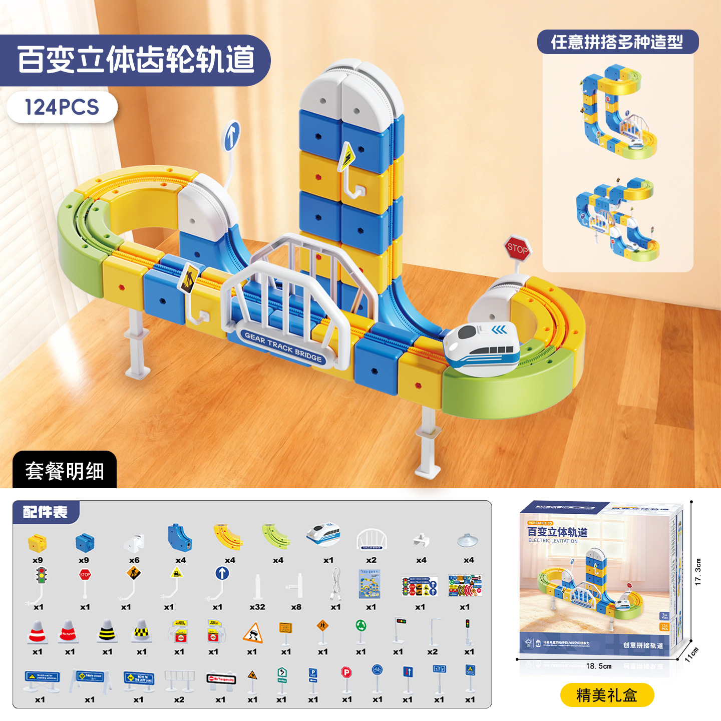 百变磁力悬浮轨道车反重力高铁儿童电动齿轮轨道玩具拼搭积木礼品