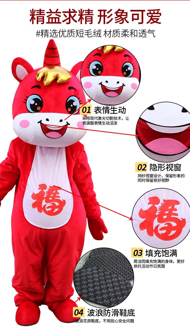 马卡通人偶服装马年吉祥物人穿行走年会活动演出道具财神爷玩偶服