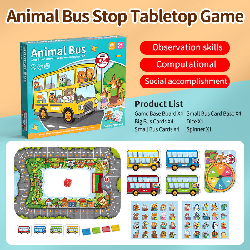 动物巴士站台计算能力培养亲子互动益智桌面游戏启蒙早教进阶拼图