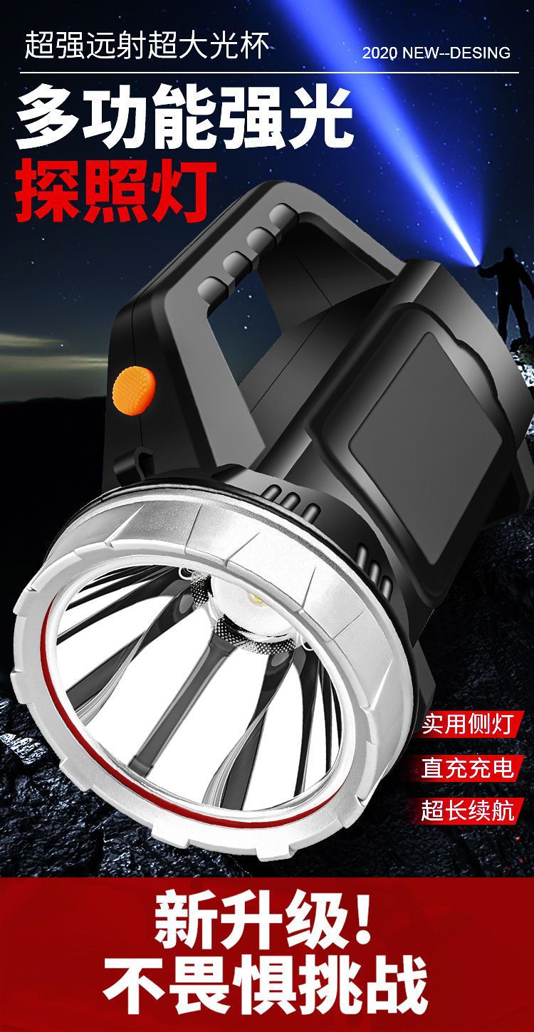 户外特种兵家用大容量超长手电筒强光充电探照灯超亮续航远射手提