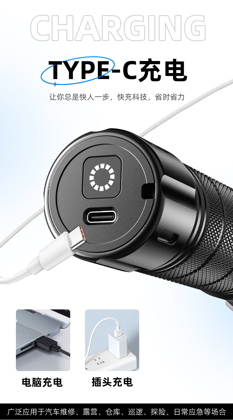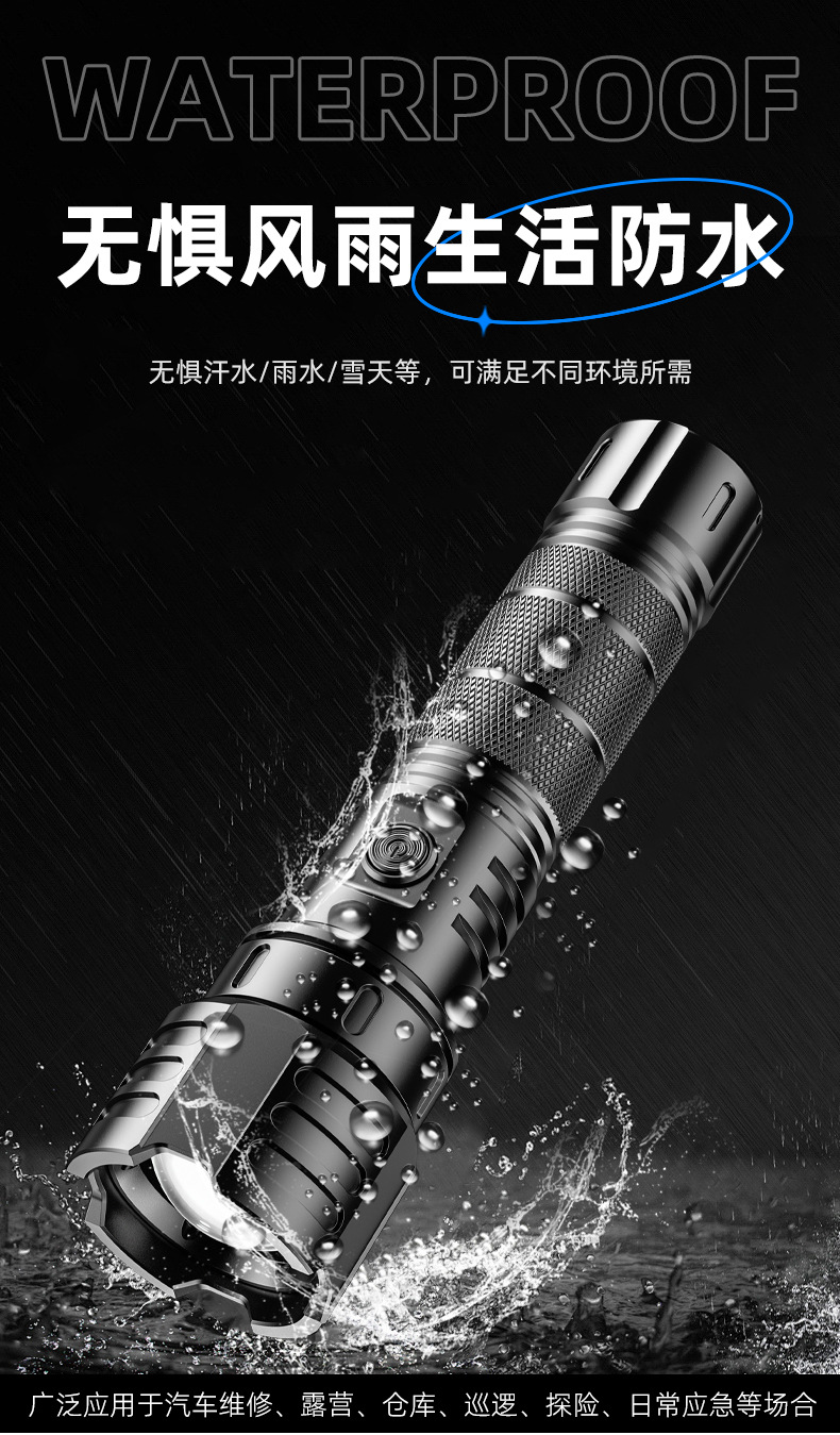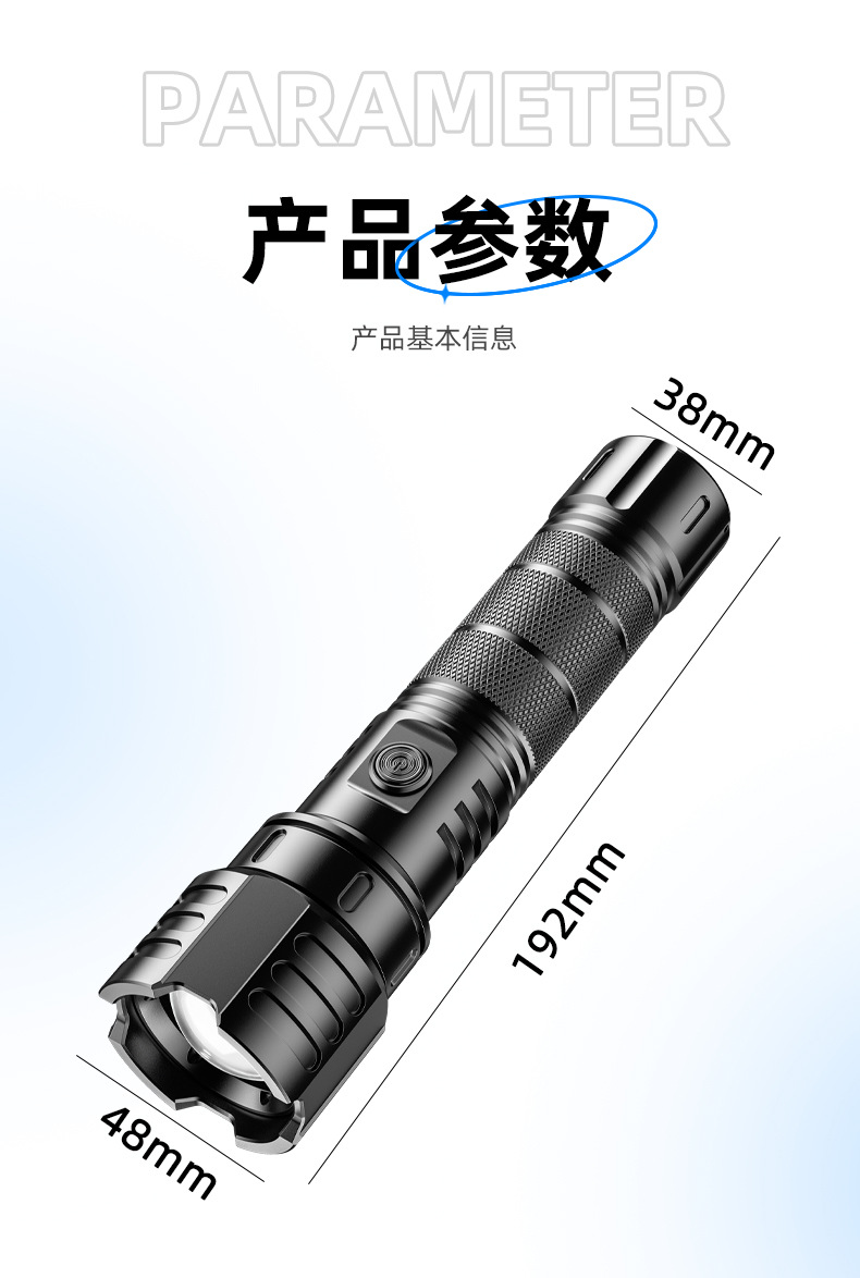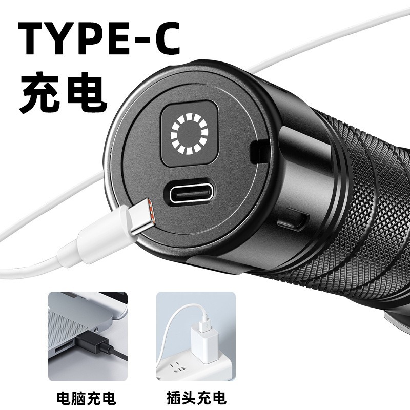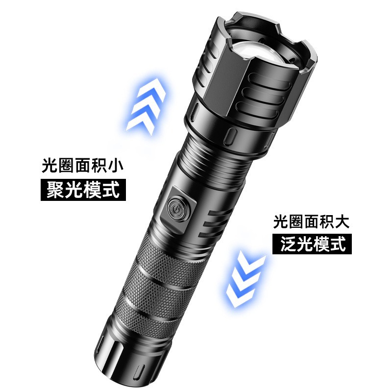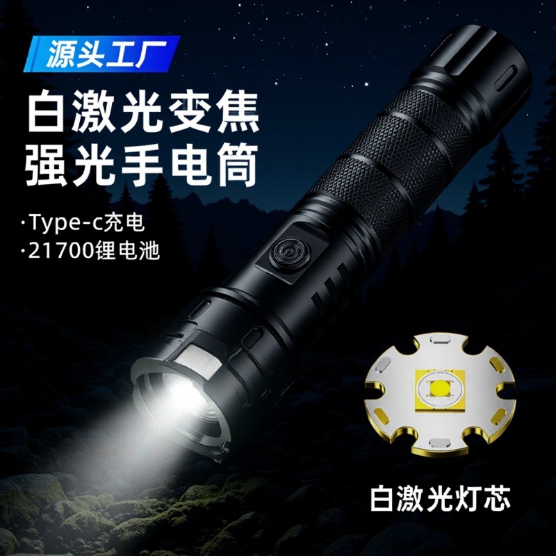 新款白激光手电筒户外长续航可充电变焦远射小钢炮铝合金手电筒